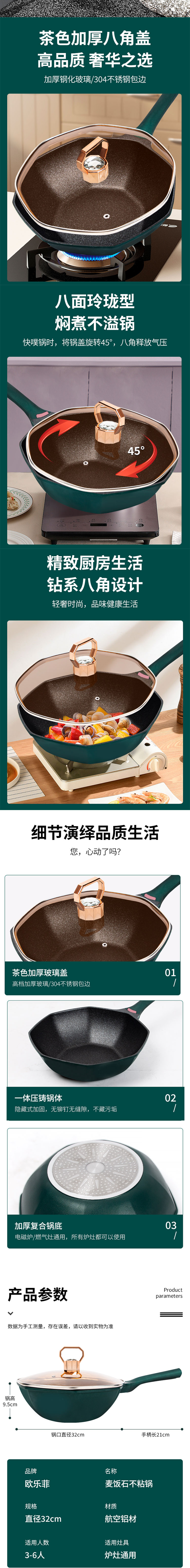 【官方正品保证】欧乐菲巴宝克升级款钻石八角锅炒锅30cm(OLOBJ-30A1)