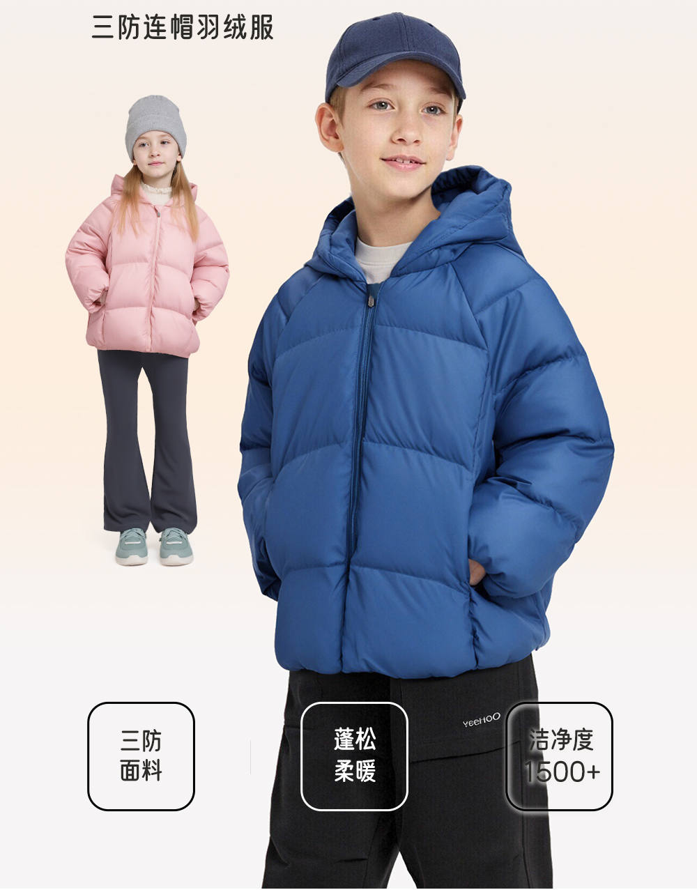 英氏【三防科技】儿童羽绒服外套男童女童连帽冬季保暖防风防寒外穿户外新款