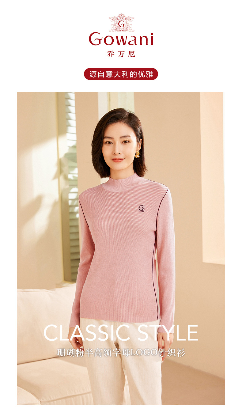 乔万尼秋新品针织衫简约气质半高领羊毛衫ET3M751