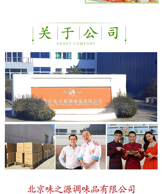 北京味之源调味品有限公司成立于2000年,是一家集研发、生产、销售为一体的现代化专业食品配料企业,是国内知名食品配料行业生产企业之一。公司坐落于美丽的首都-北京,注册资本1058万元,拥有占地2万平米