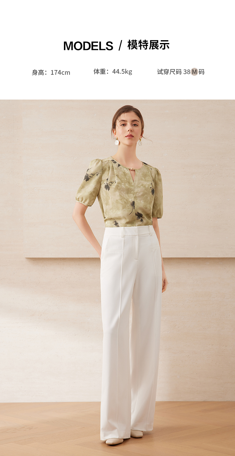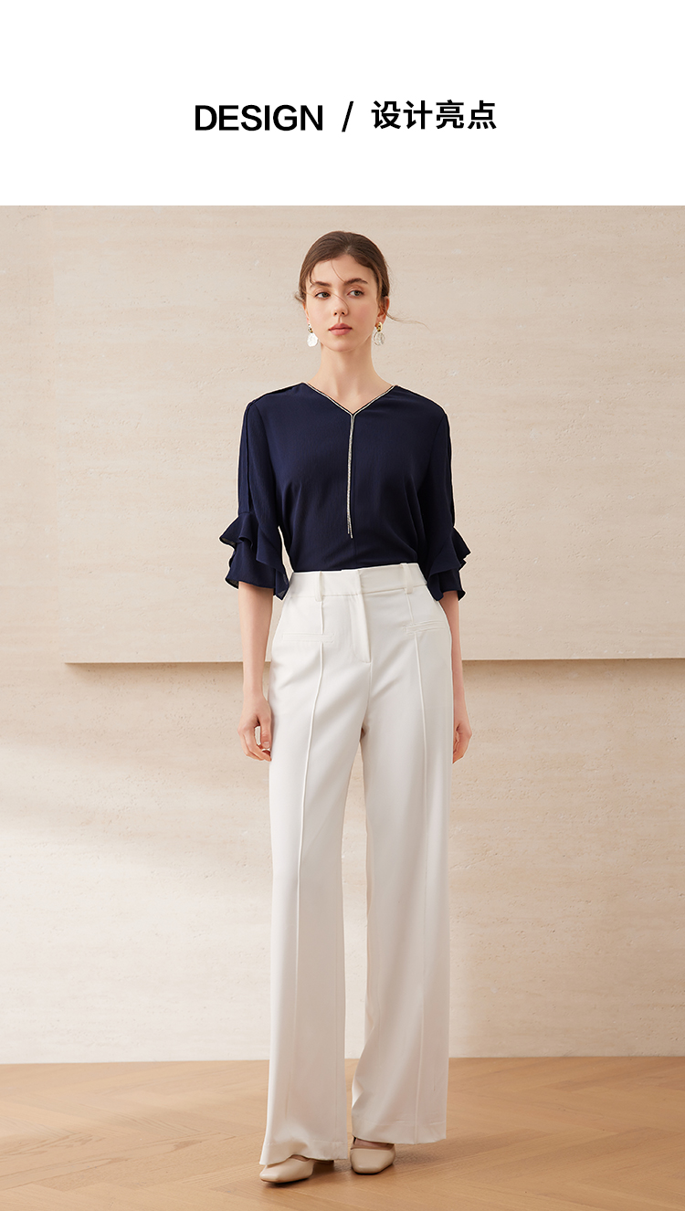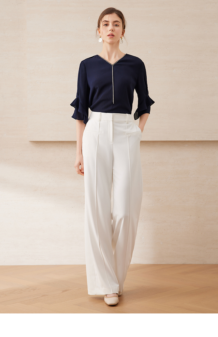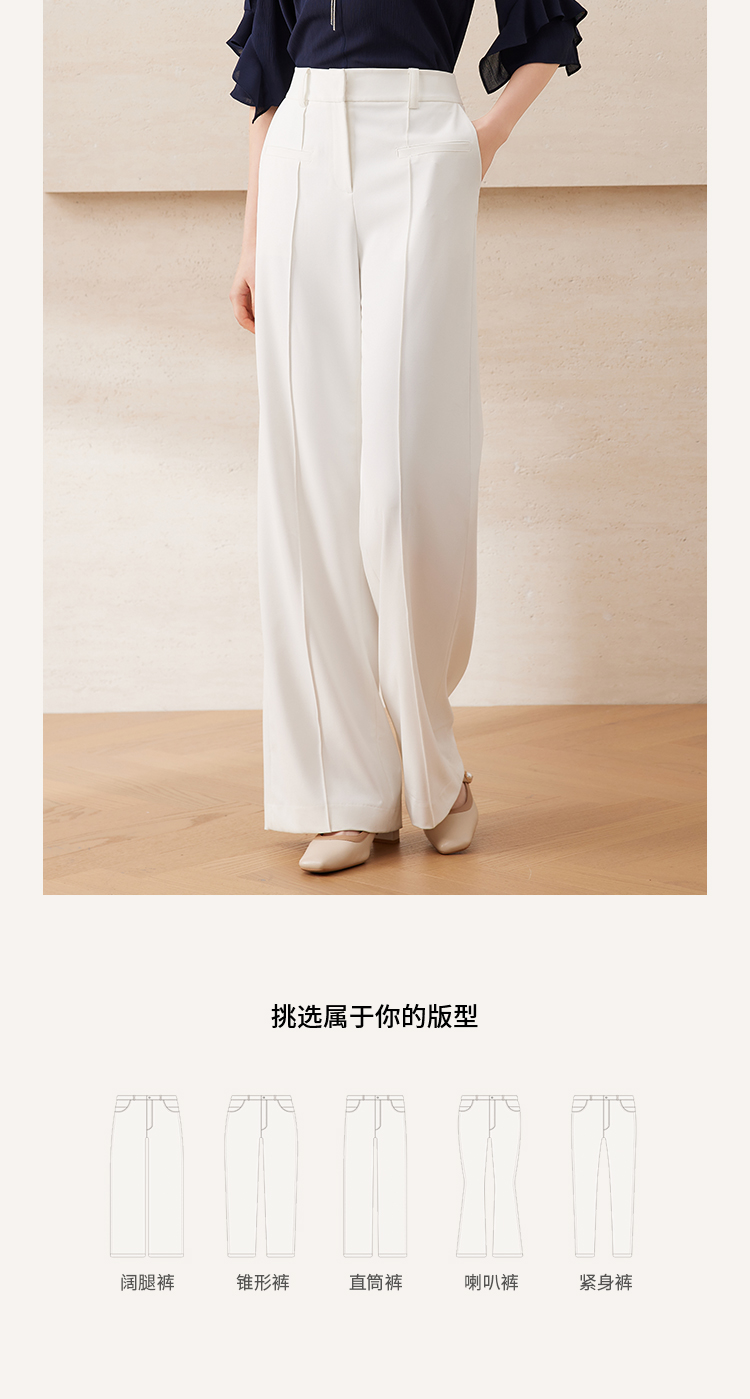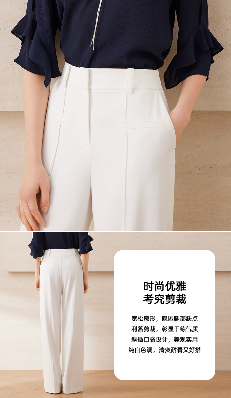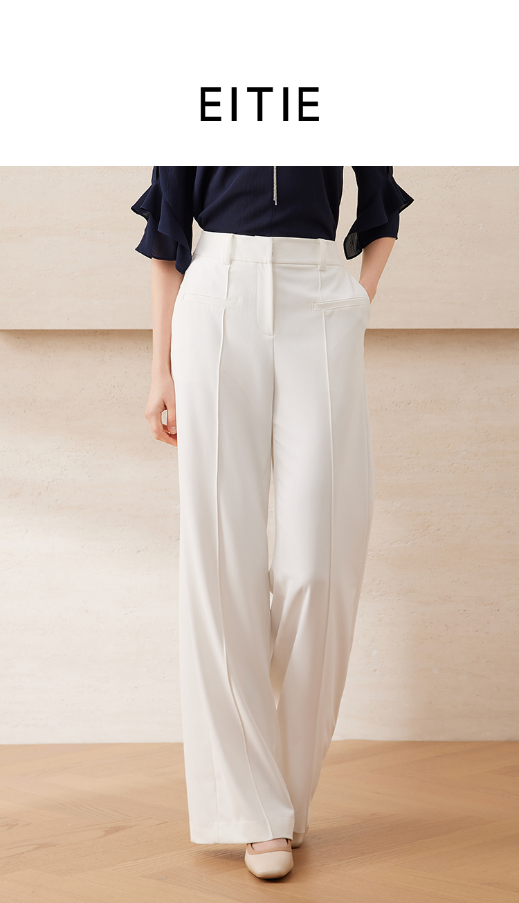 【白色高腰垂坠直筒阔腿裤】EITIE爱特爱通勤显瘦2025夏季新款B2505608