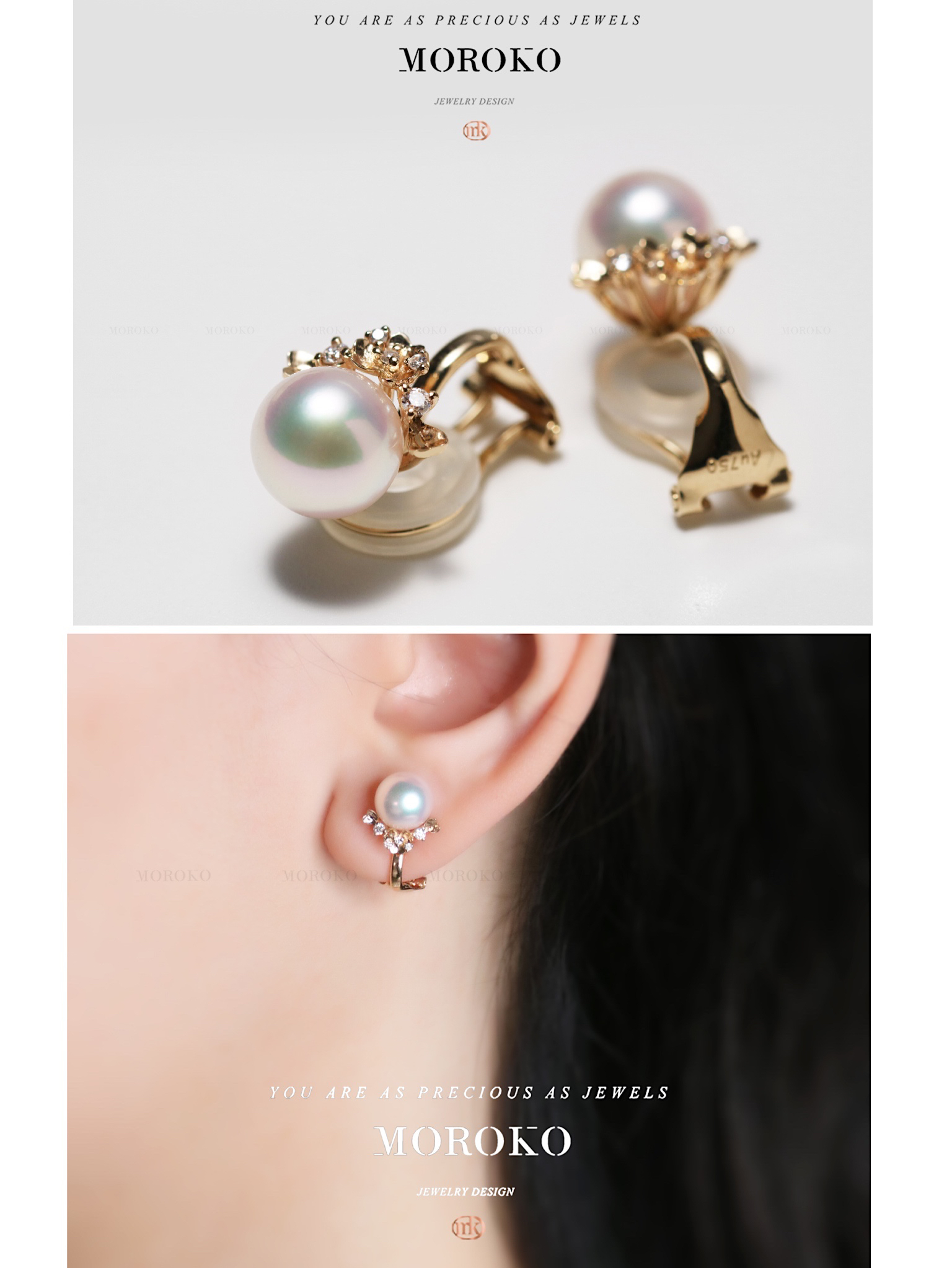 𝐌𝐎𝐑𝐎𝐊𝐎原创设计,华丽属性的灵动款,搭配存在感略强的7.5mm珍珠,工作日佩戴优雅精致的女人味。偏华丽一丢丢的日常款珍珠耳钉,