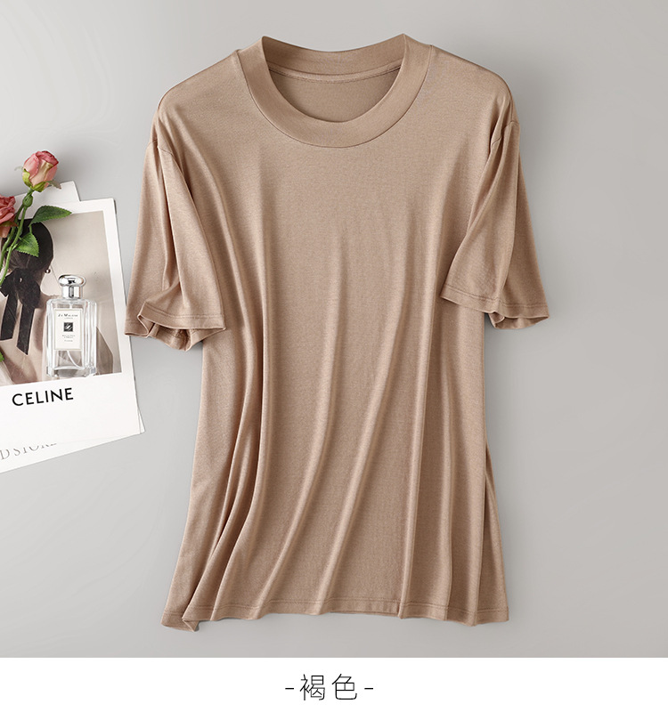 丁摩 100%桑蚕丝女士短袖真丝圆领T恤打底衫TX-074