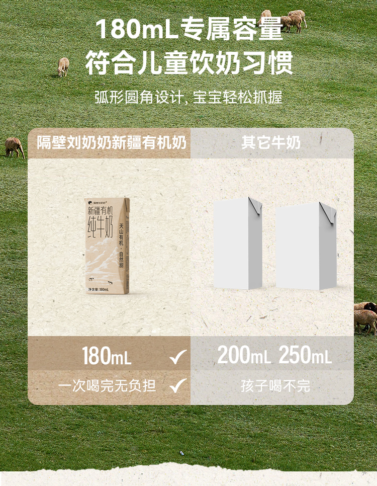 分销【秋田满满】隔壁刘奶奶重磅🔥🔥🔥新疆天山有机180ml纯牛奶🥛大容量款 源自天山有机!,自然甜,妈妈安心喝得放心!