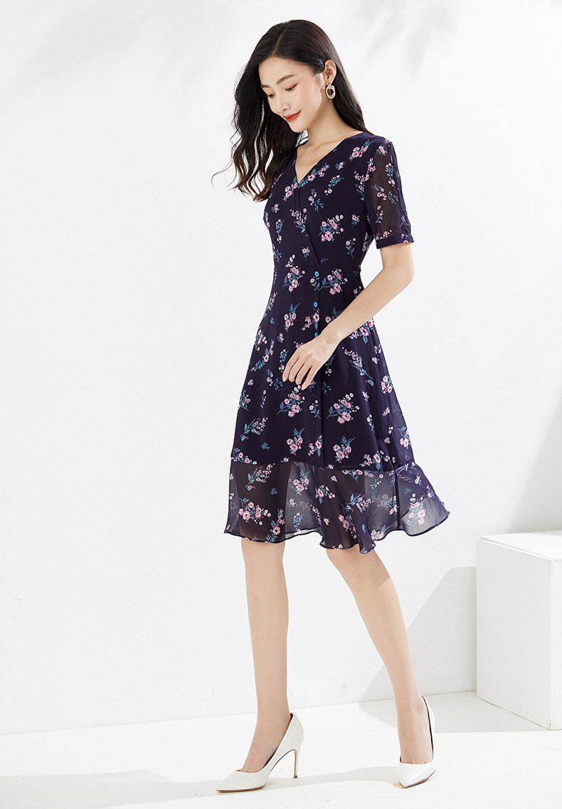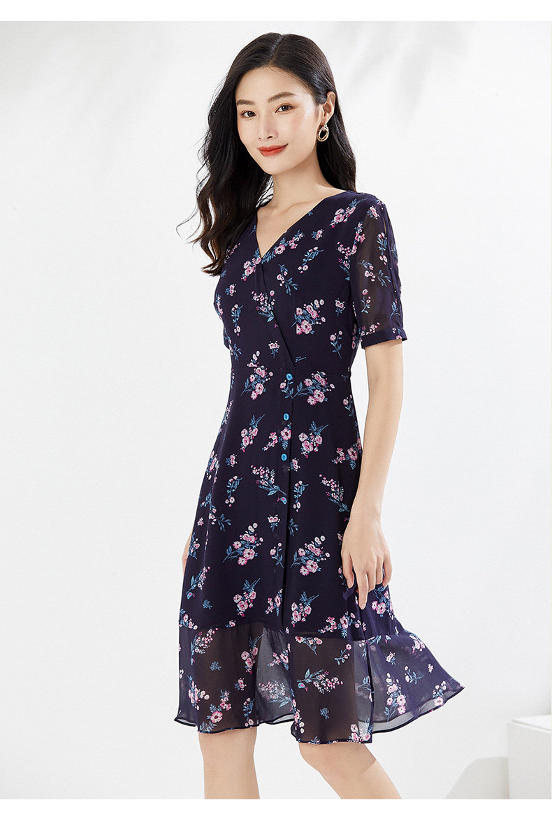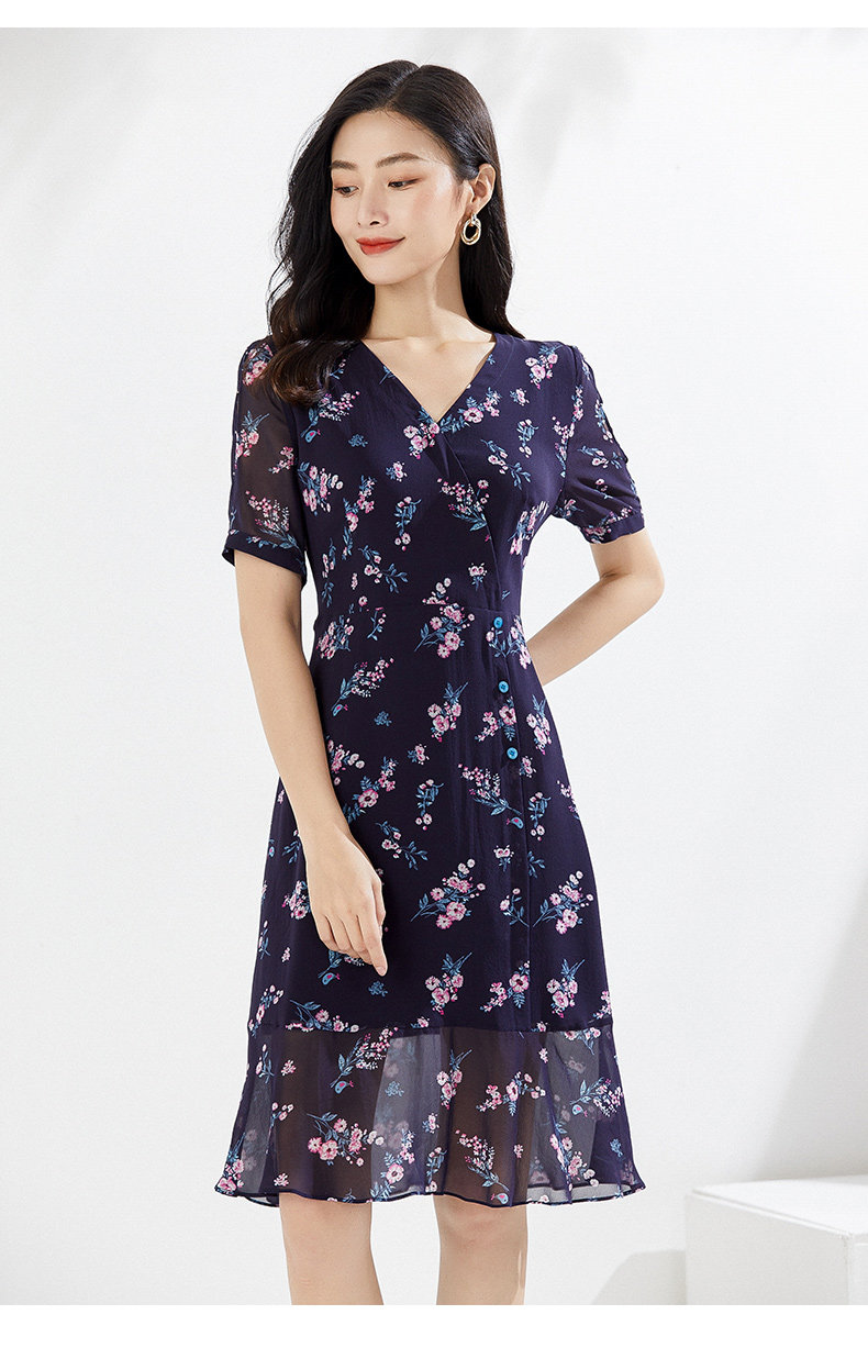 乔万尼连衣裙夏真丝桑蚕丝法式碎花EI2E770