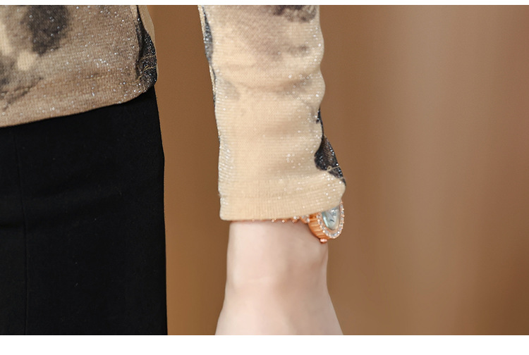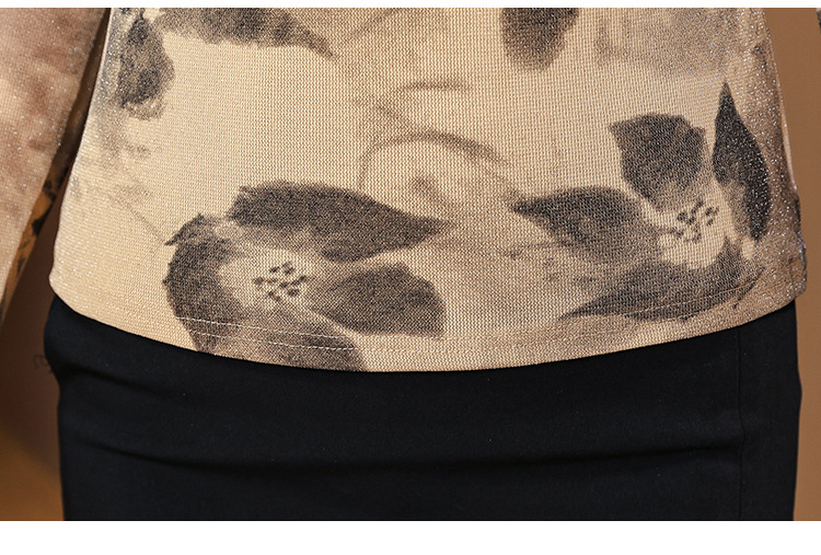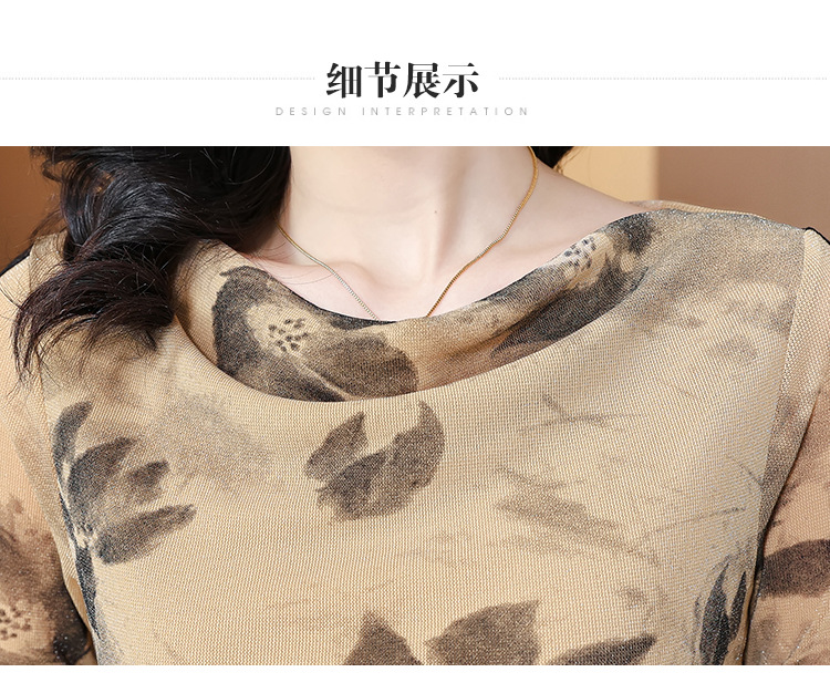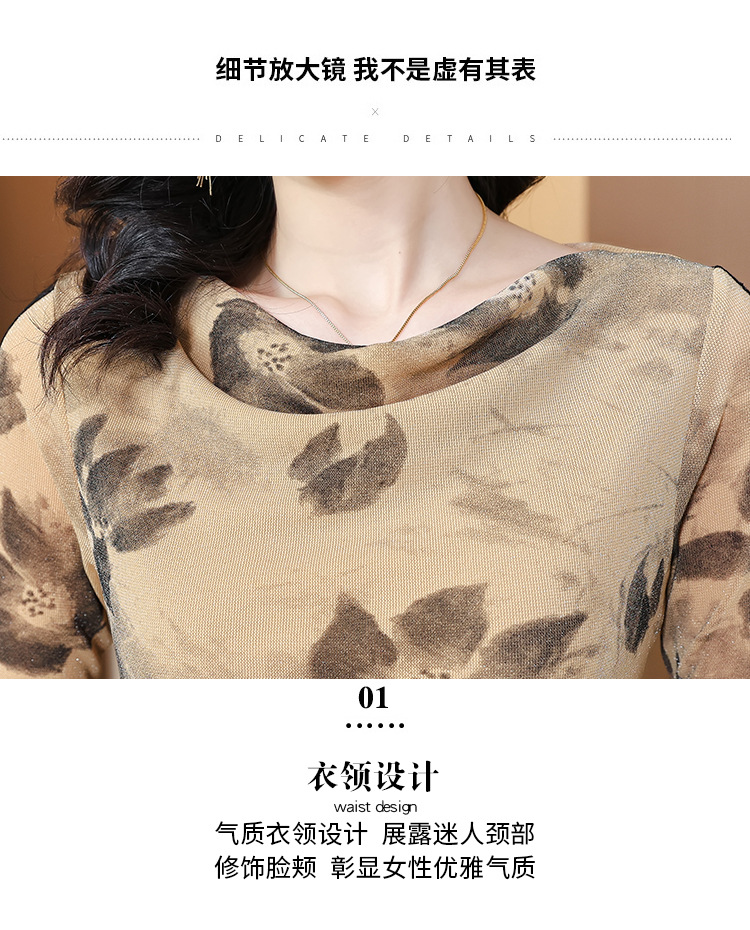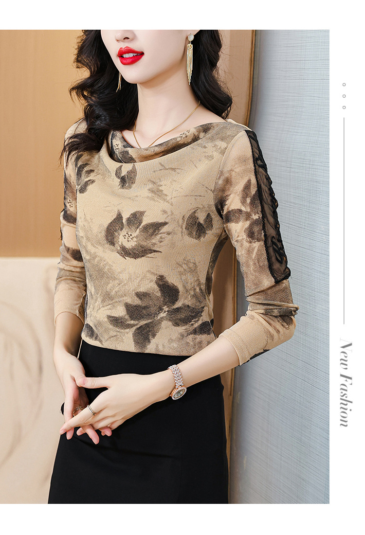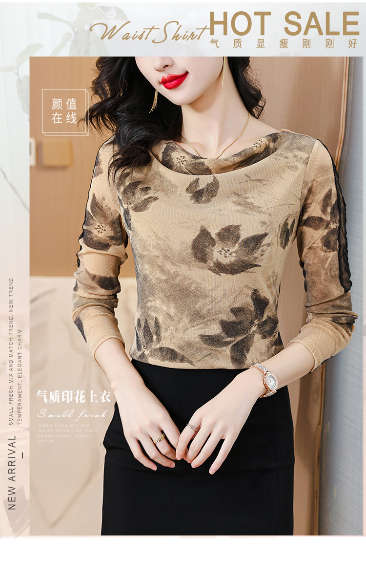 ALBB-堆堆领印花网纱打底衫女2023秋季新款气质百搭长袖T恤水墨画上衣