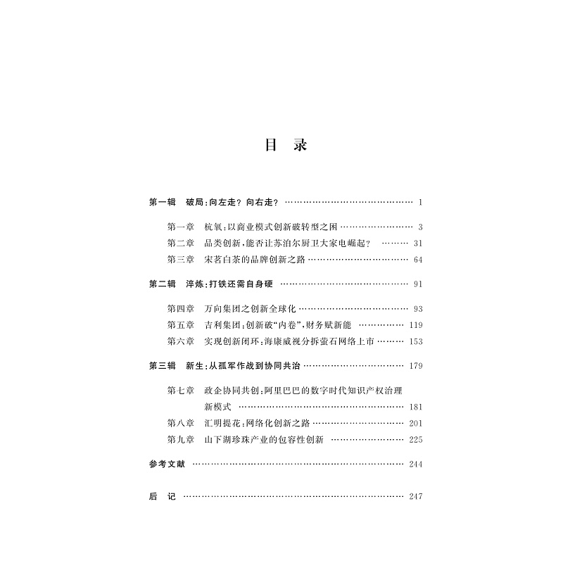 本书为浙商高质量发展丛书之一。在这个快速发展的时代,创新发展已经成为推动社会进步和经济增长的关键力量。本书以案例+理论的方式呈现,围绕“创新发展”这一领域,分别选择吉利集团、海康威视、万向集团等典型企业案例来展现浙商在高质量发展进程中的独特理念、路径和做法,并论述浙商在新发展阶段实现向“引领者”跃迁的方向和探索,以及其中光鲜亮丽的成功之道和背后许多不为人知的艰难抉择。不仅为读者提供了一个全面的创新发展视角,还激发了对未来可能性的思考。