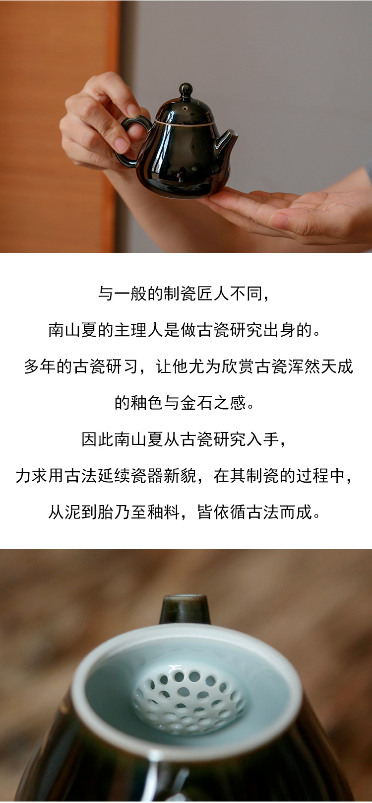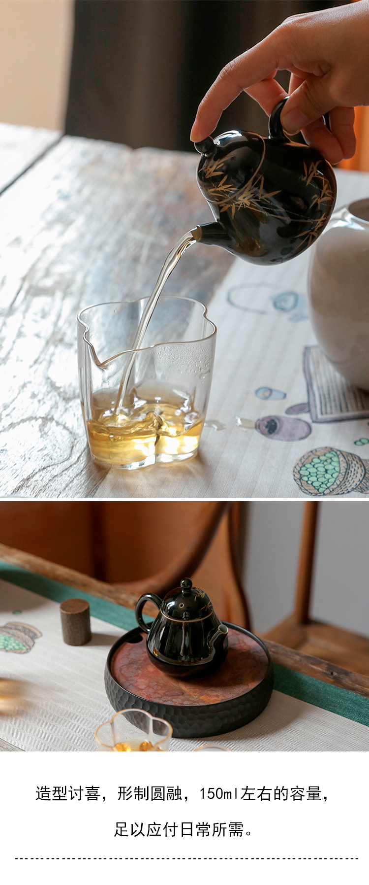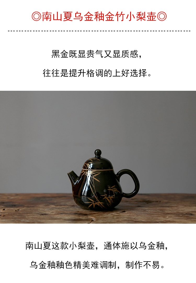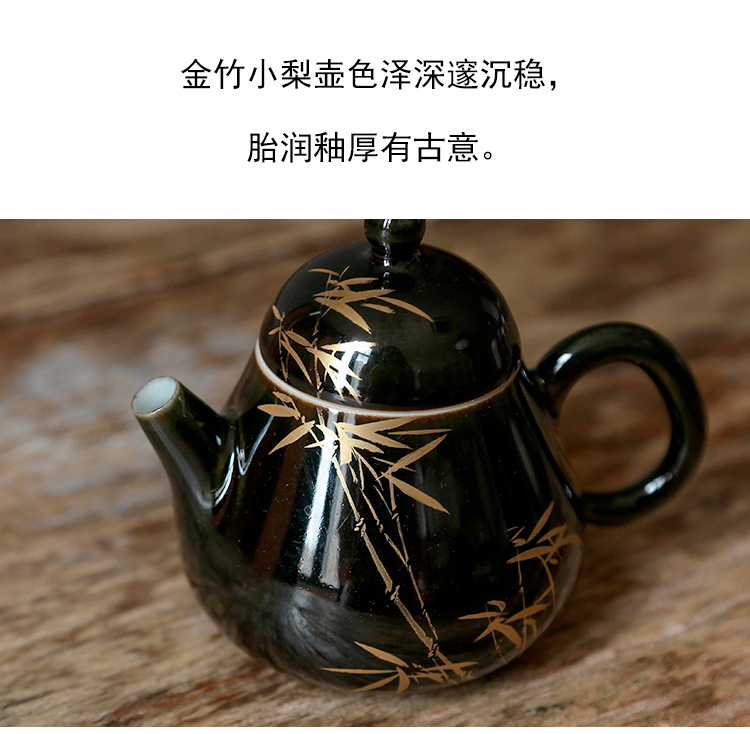 茶香记 南山夏乌金釉金竹小梨壶120ml黑金贵气景德镇陶瓷茶壶瓷壶