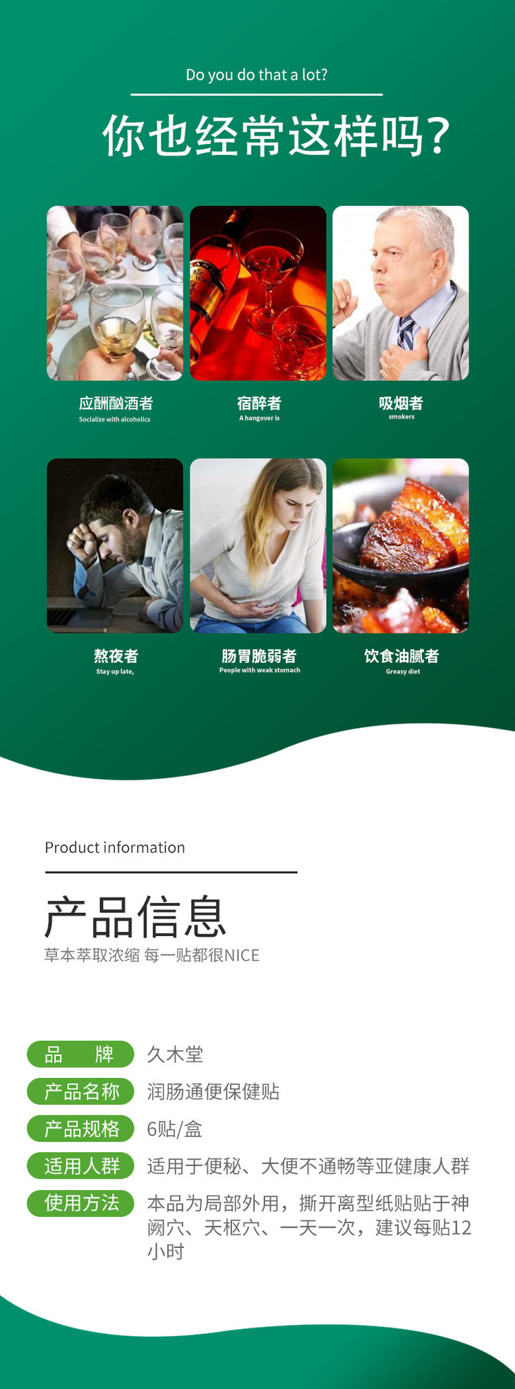 【买2发3,买3发5】润肠通便贴,清排宿便辅助消化,滋润肠道健脾和味,甄选天然植物成分,6贴/盒