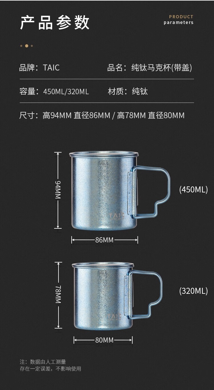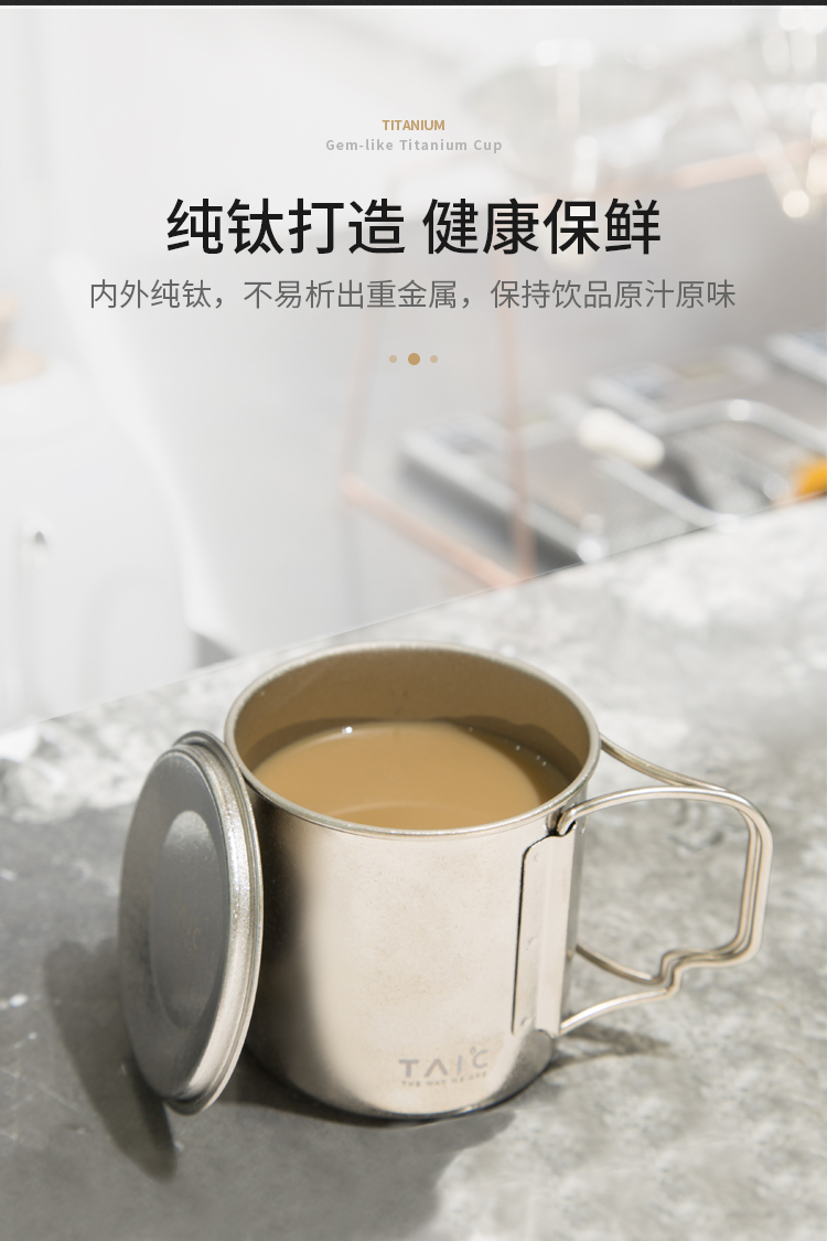【TAIC 太可】纯钛马克杯 带盖咖啡杯子家用轻奢情侣水杯创意折叠办公室