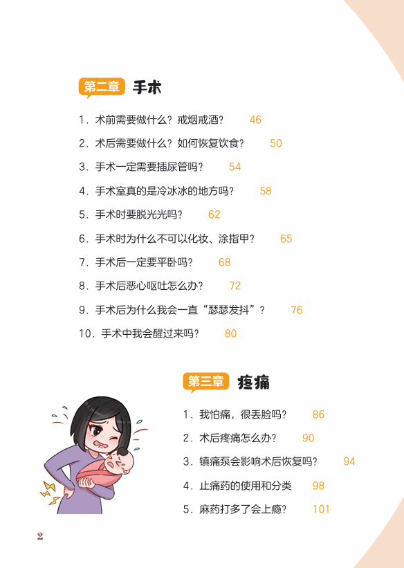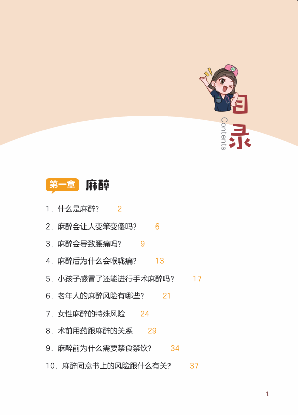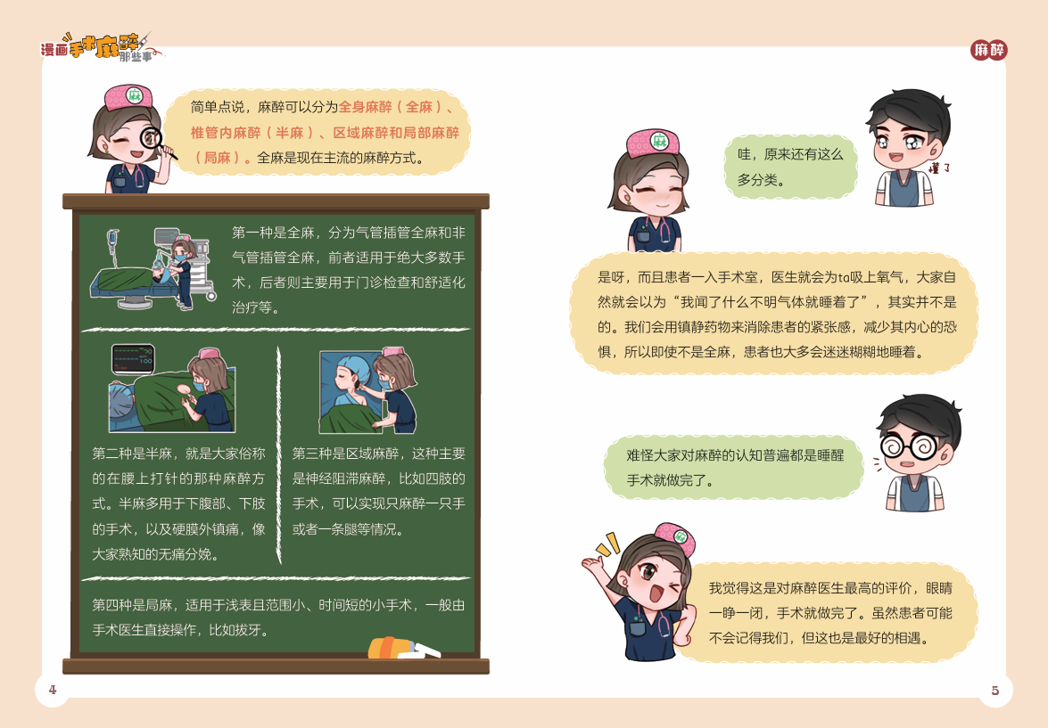 本书是一本通俗易懂的漫画科普书,以医生老师和学生的对话形式,解答了关于麻醉、手术、疼痛、舒适化医疗、急救与复苏等方面的35个小问题。通过生动有趣的漫画插图,让读者轻松了解麻醉手术的相关知识,揭开手术室的神秘面纱。本书内容贴近生活,实用性强,适合学生群体及普通大众阅读,是了解麻醉手术、增加医疗常识的必备读物。让我们一起跟随医生老师的讲解,探索麻醉手术的奥秘,为自己的健康保驾护航!这本书将带领读者走进麻醉手术的世界,以轻松有趣的方式解答疑惑,让读者在享受阅读的同时,收获实用的医疗知识。
