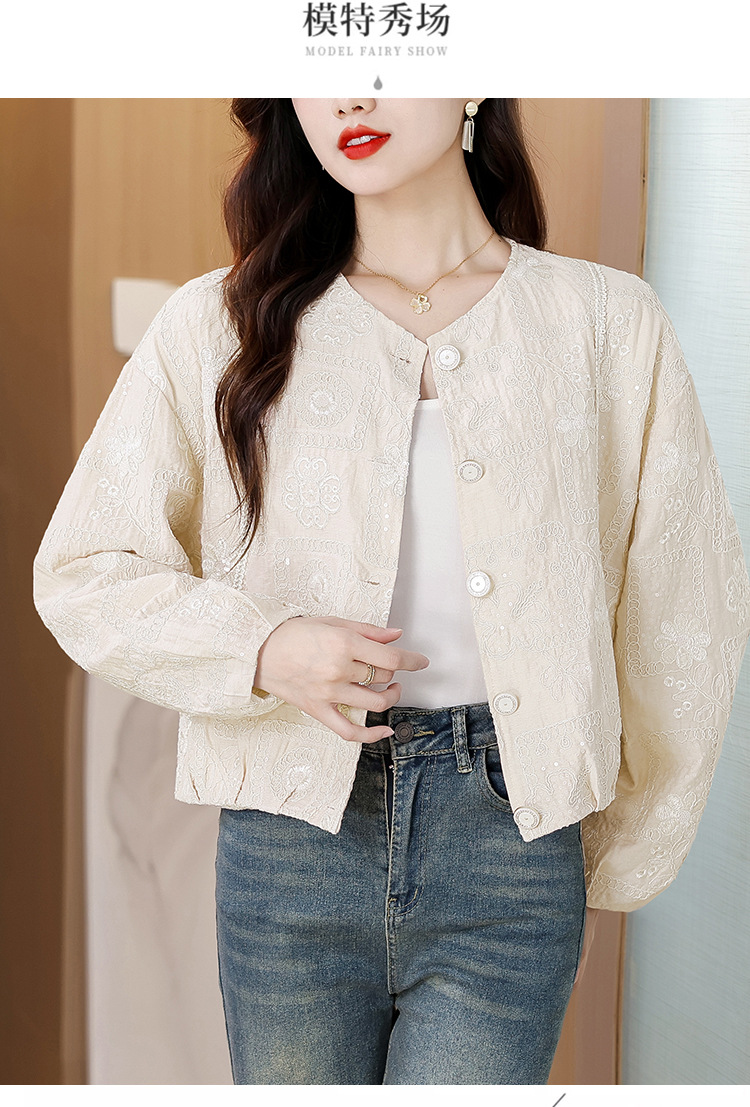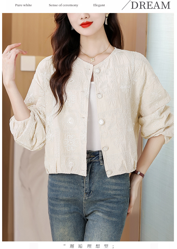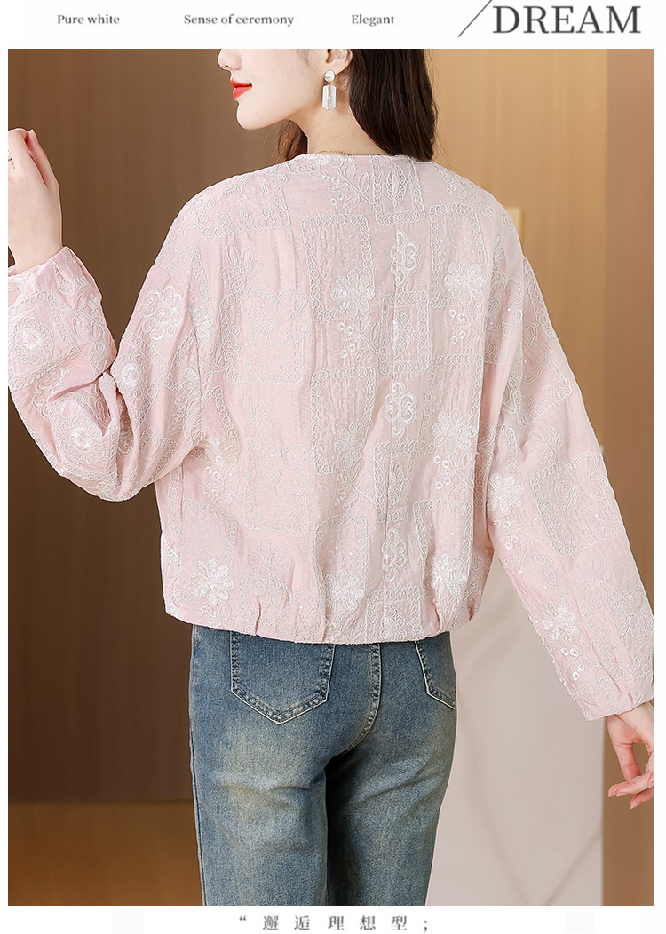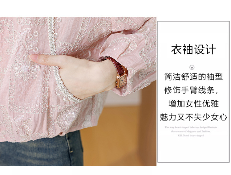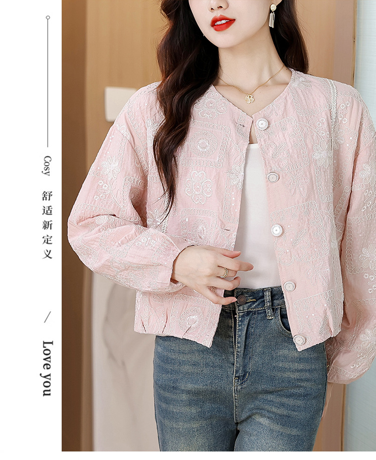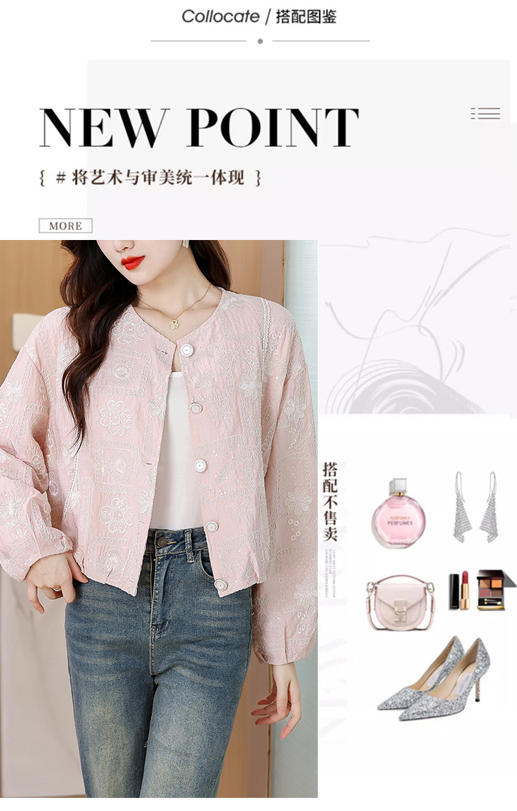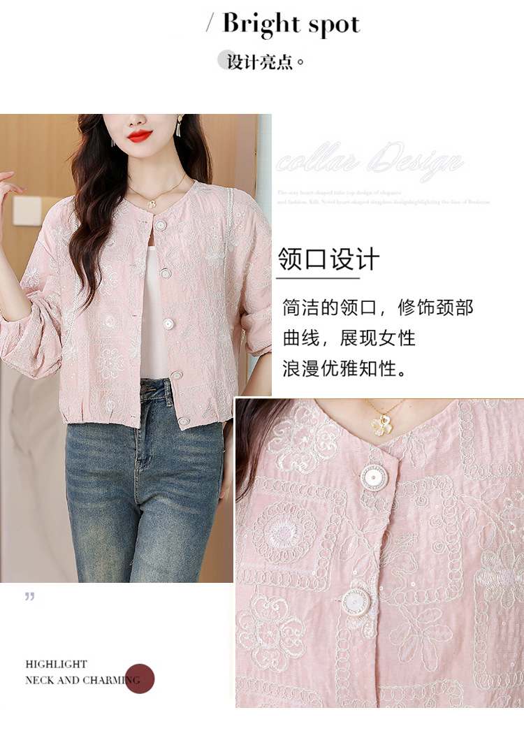 KQL2025年秋新款高级感重工别致提花轻国风绣花亮片圆领短款宽松外套