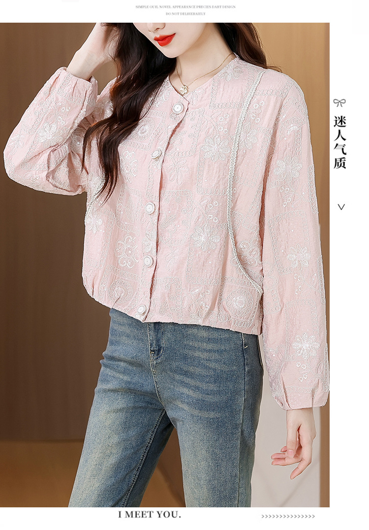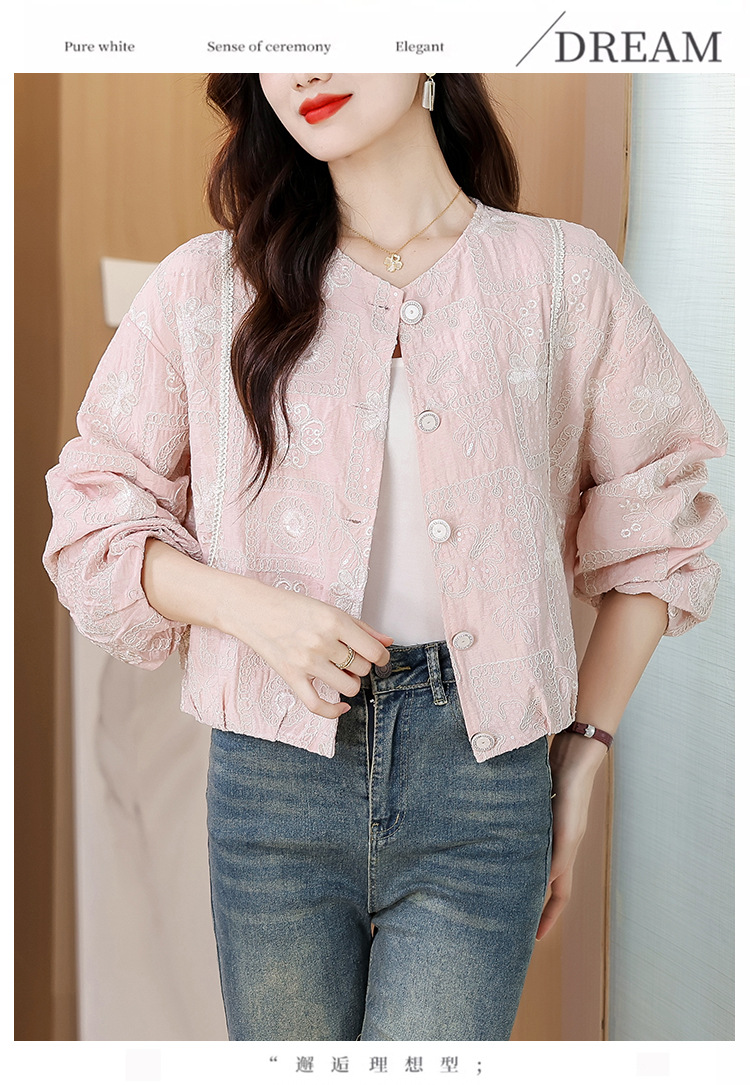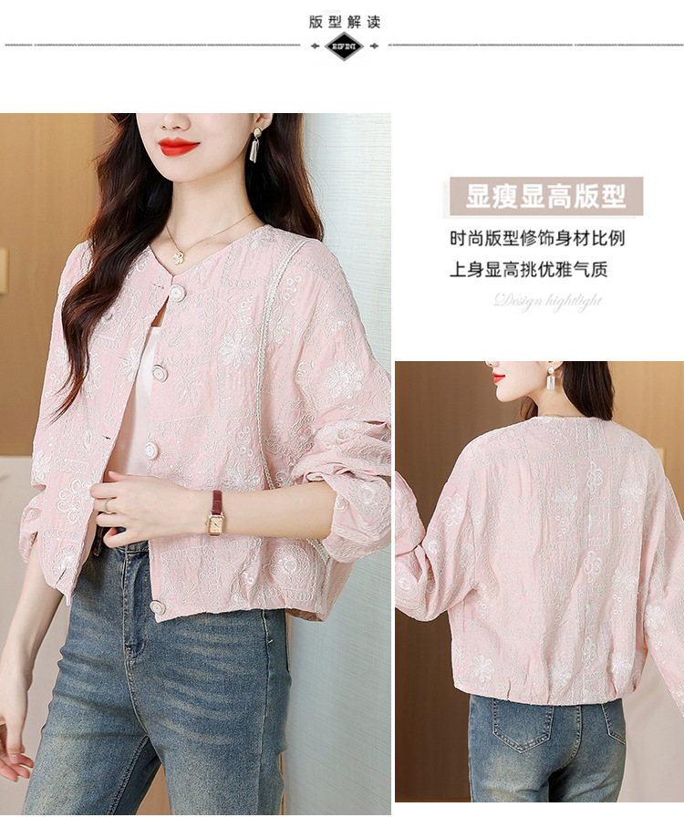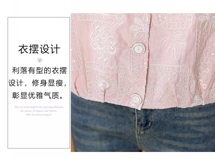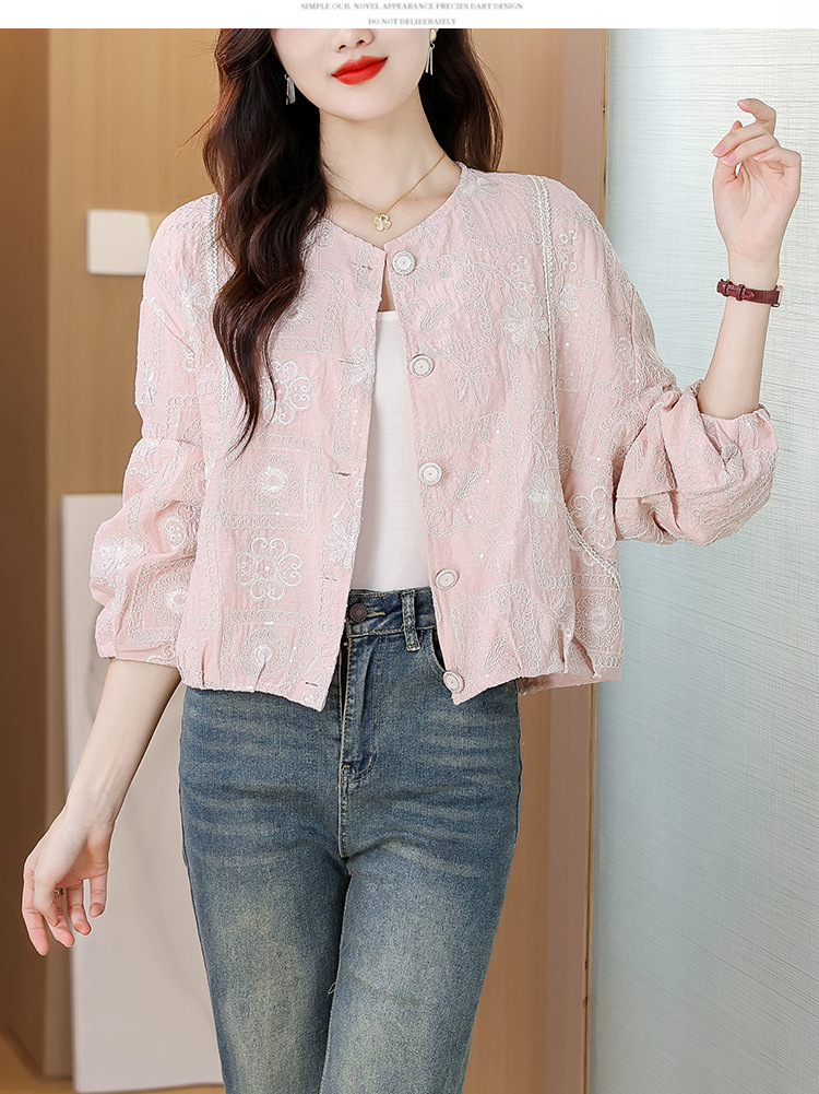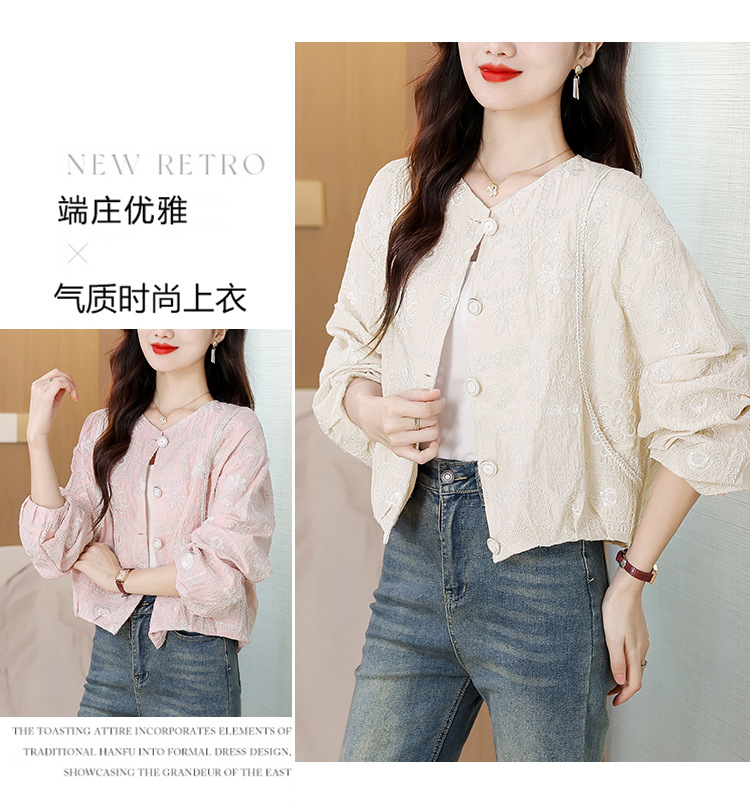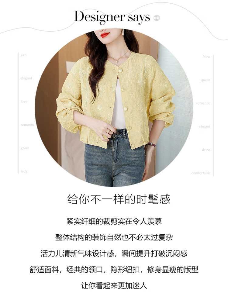 KQL2025年秋新款高级感重工别致提花轻国风绣花亮片圆领短款宽松外套