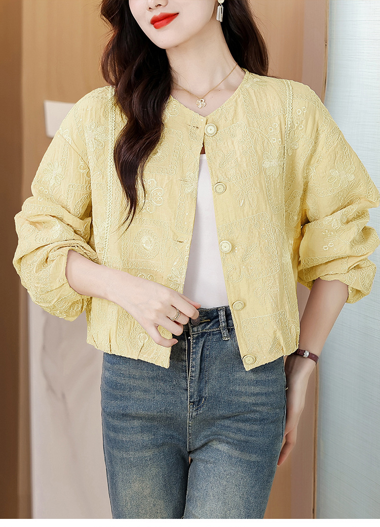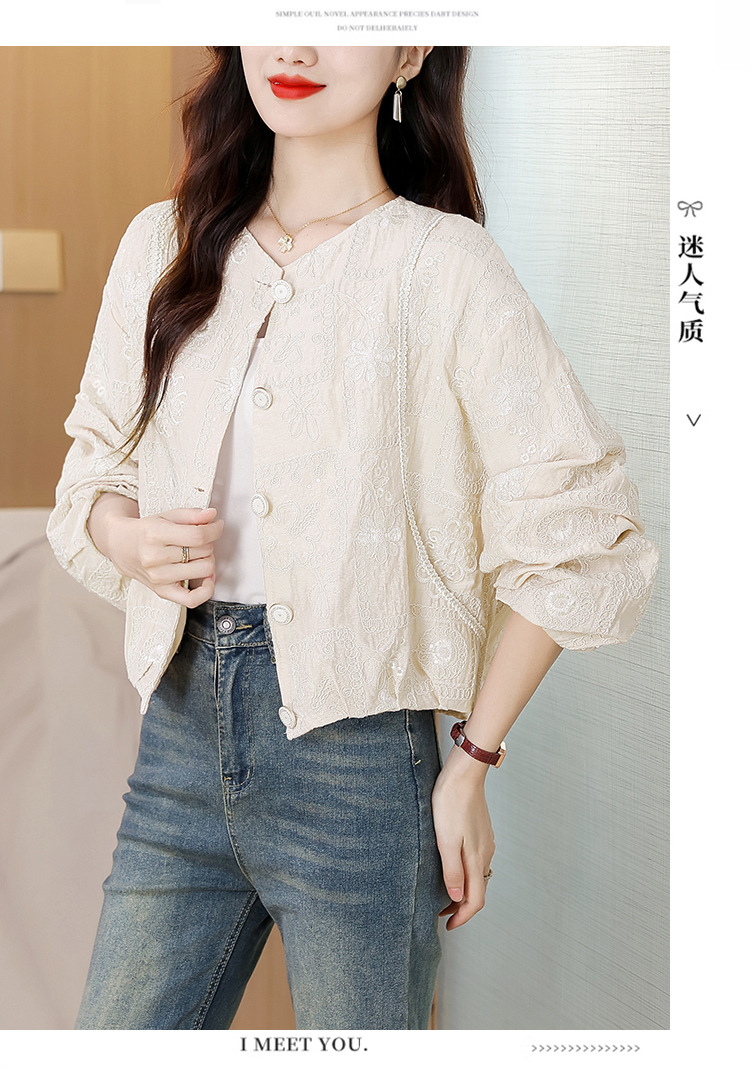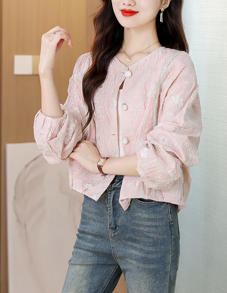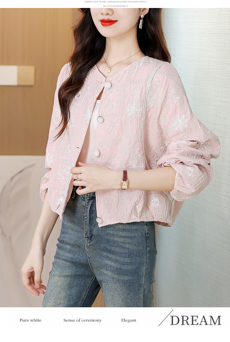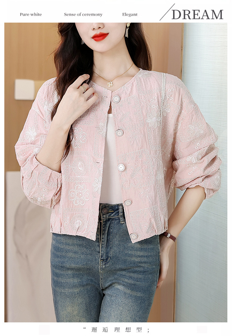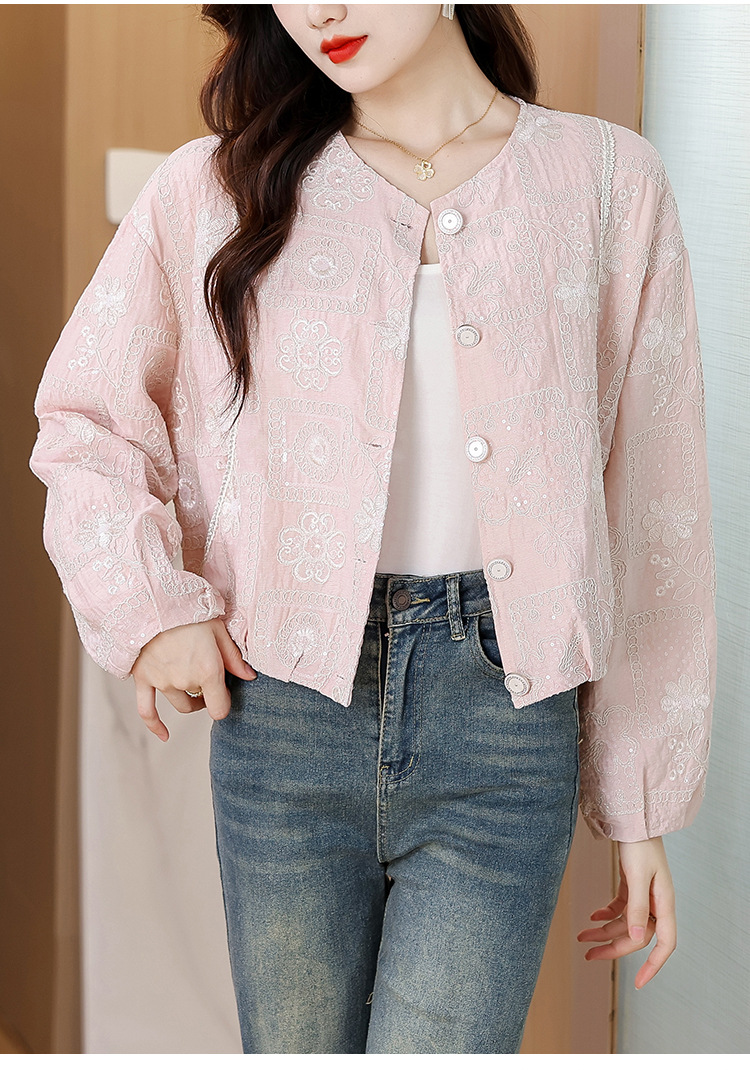 KQL2025年秋新款高级感重工别致提花轻国风绣花亮片圆领短款宽松外套