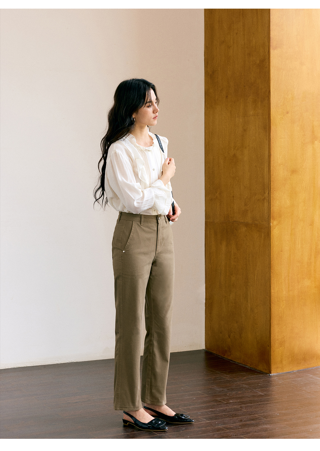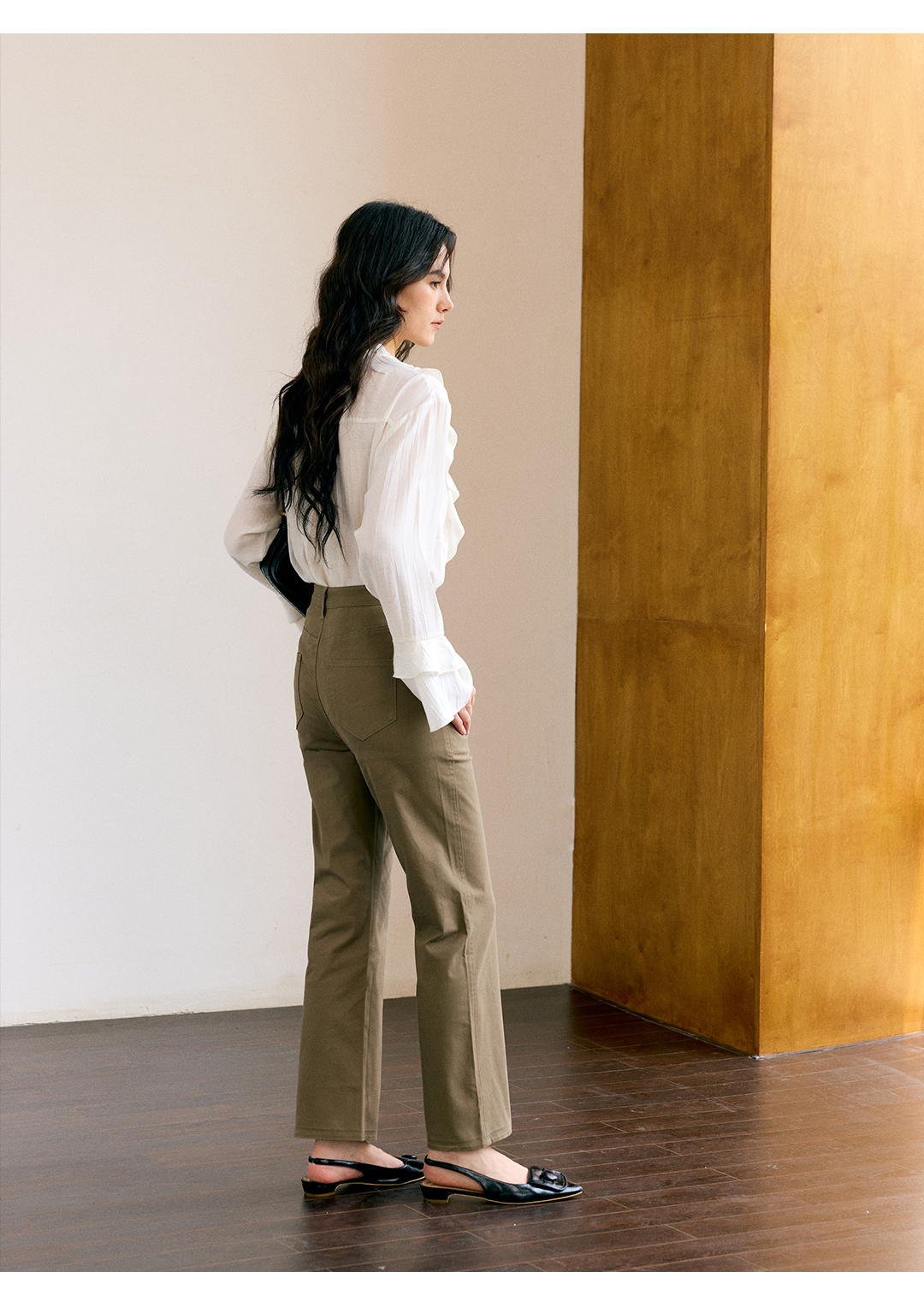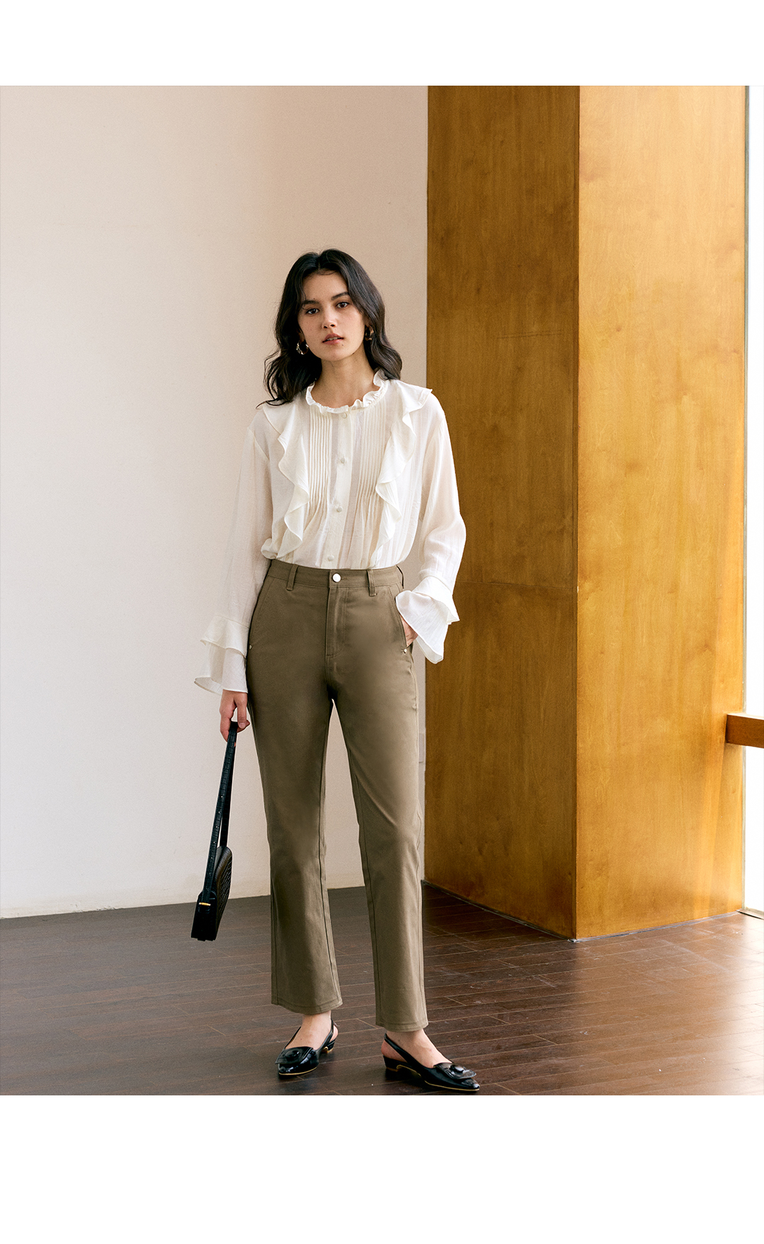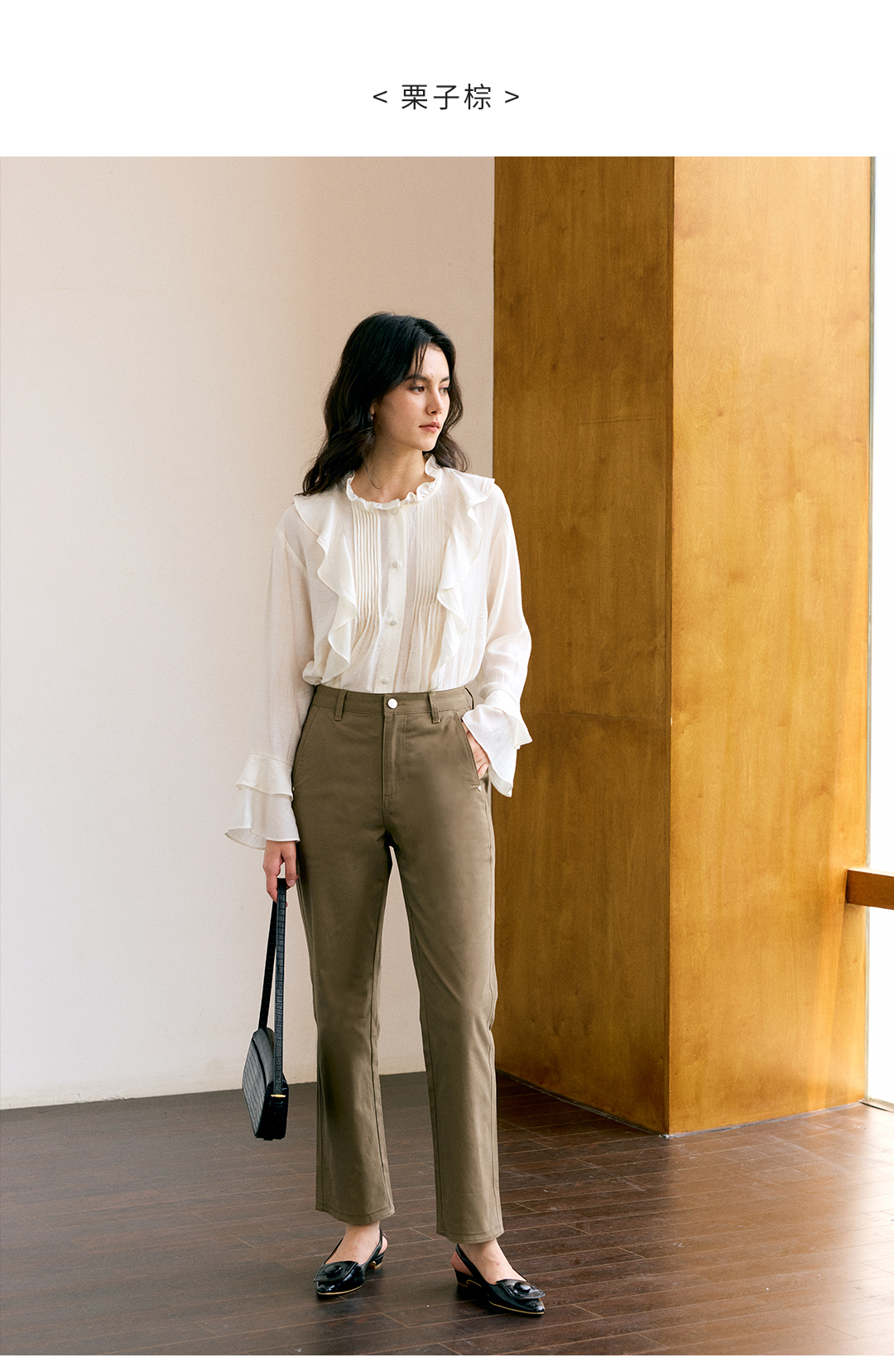 HeyDress叠褶八分阔腿毛呢裤