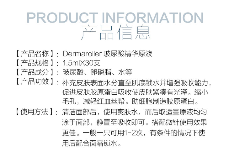 德国Dermaroller玻尿酸精华原液补水保湿抗皱提亮肤色30支