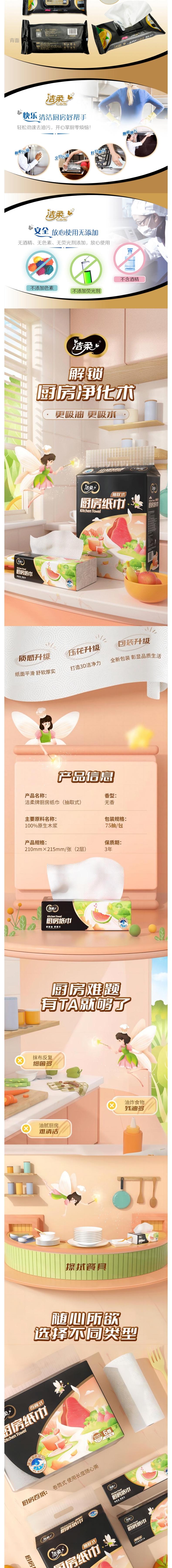 洁柔 厨房抽纸75抽4包+厨房湿巾25片*2包新老随机 JR-091