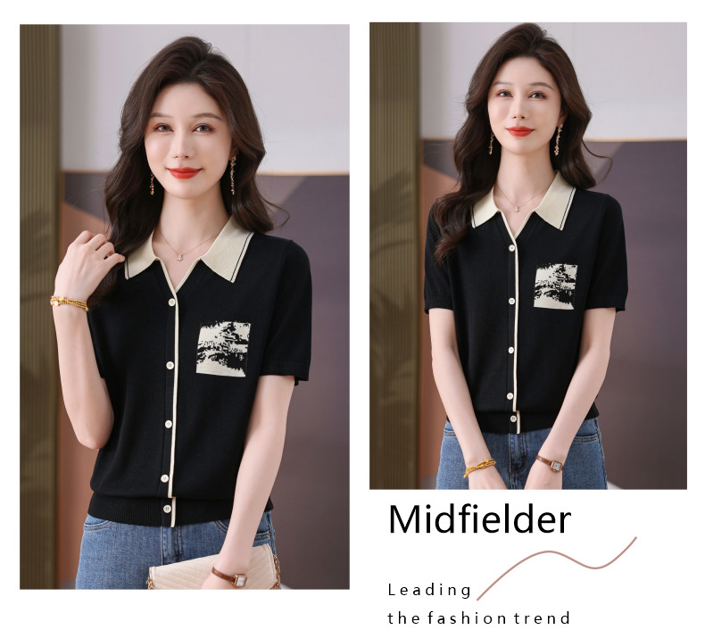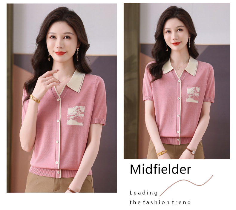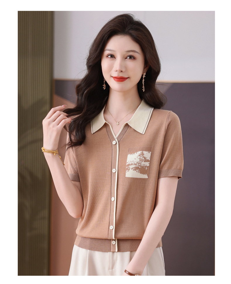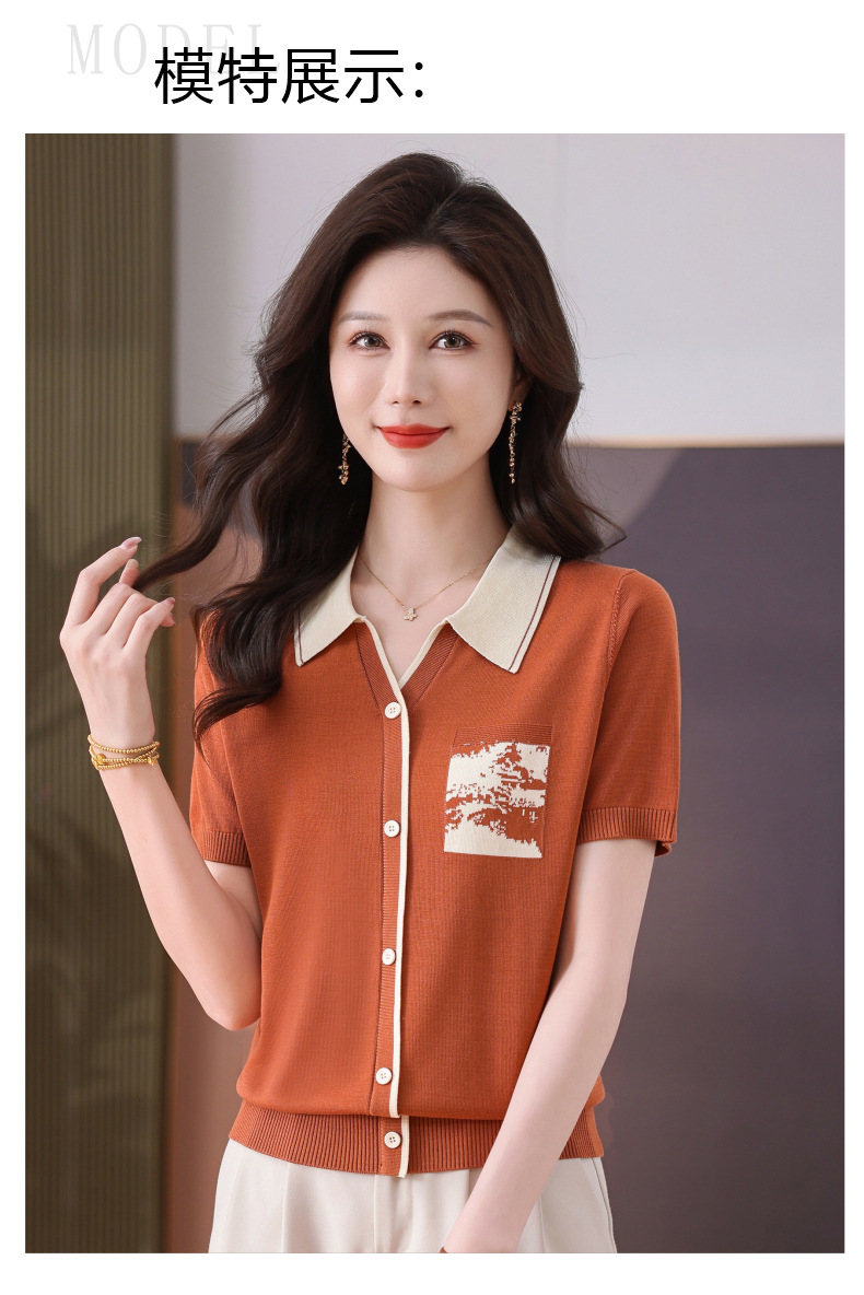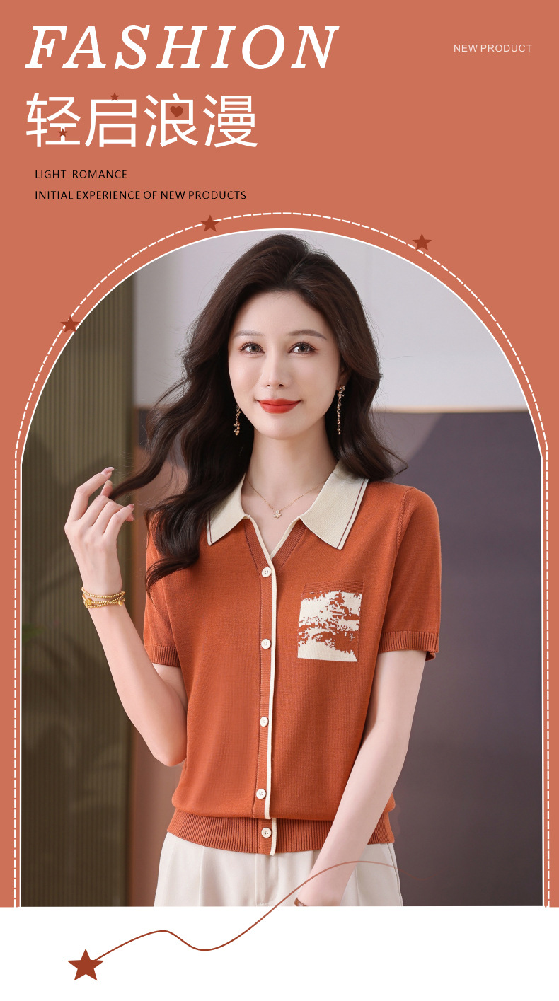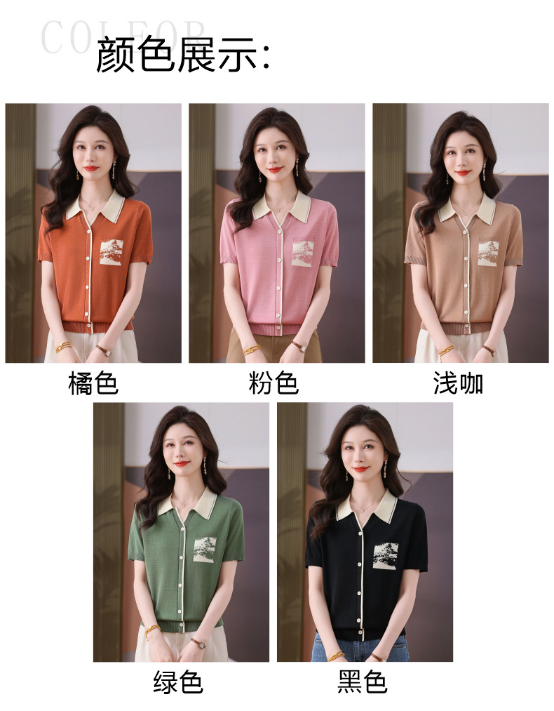 翻领冰丝针织衫,气质减龄polo衫上衣CC-89-791