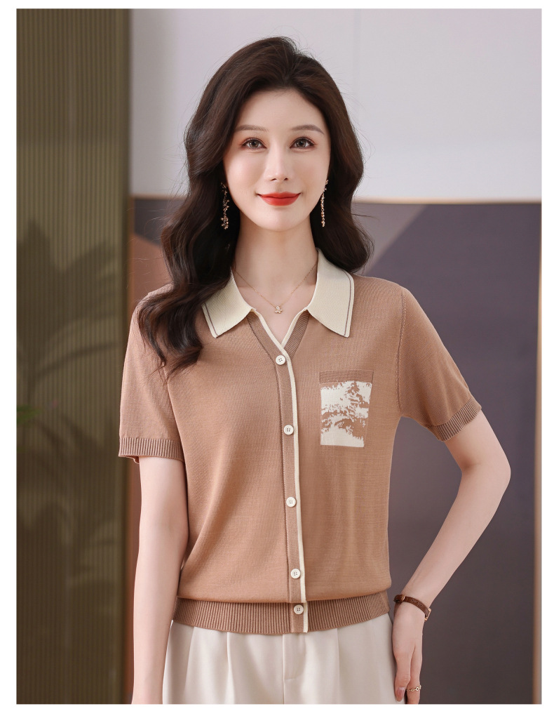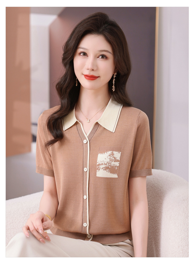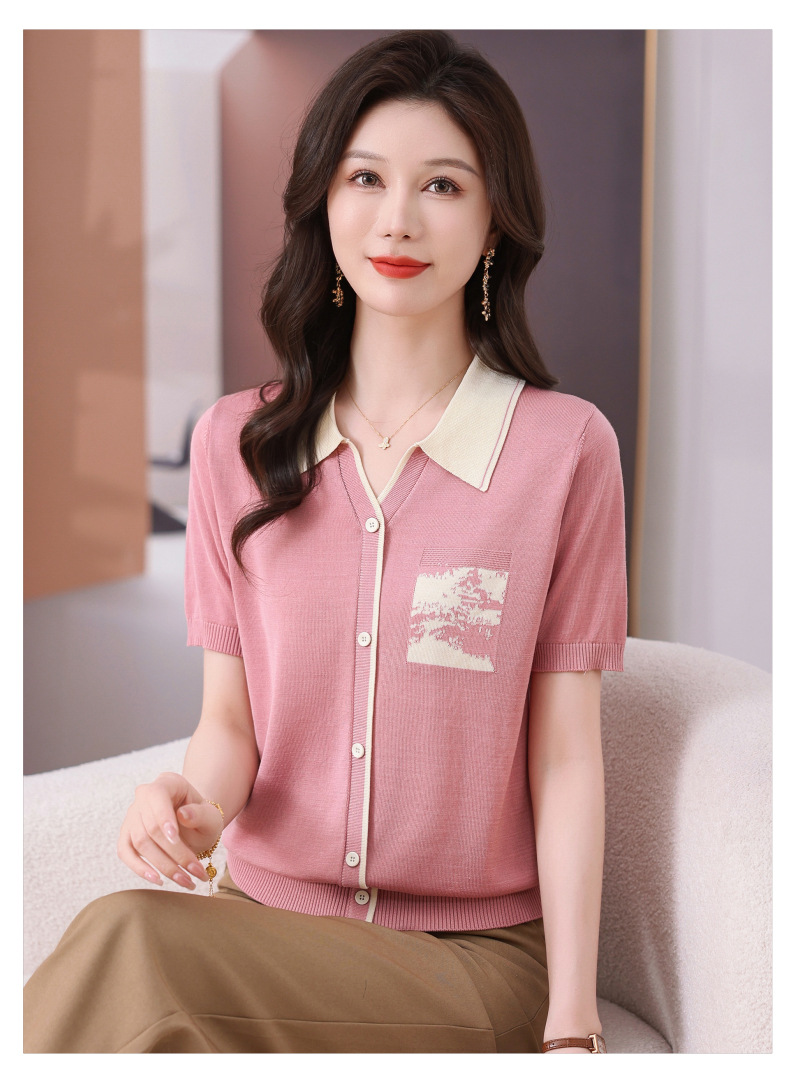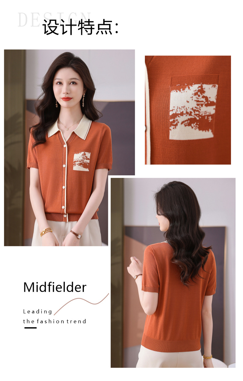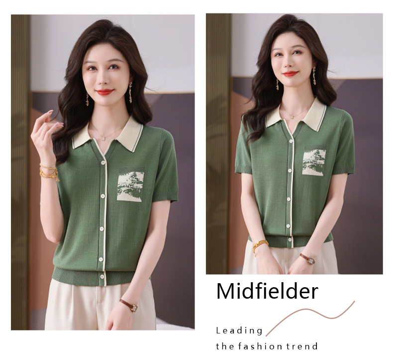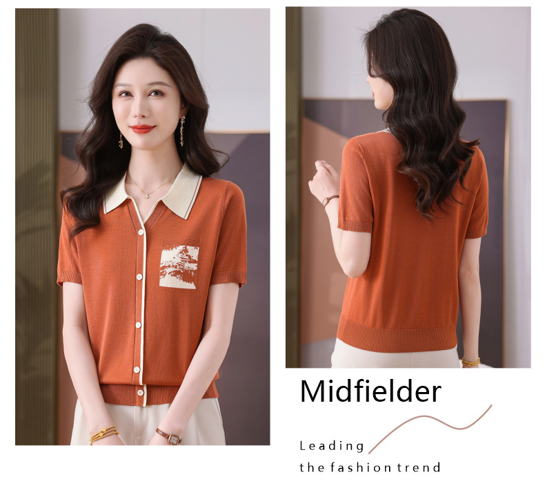 翻领冰丝针织衫,气质减龄polo衫上衣CC-89-791
