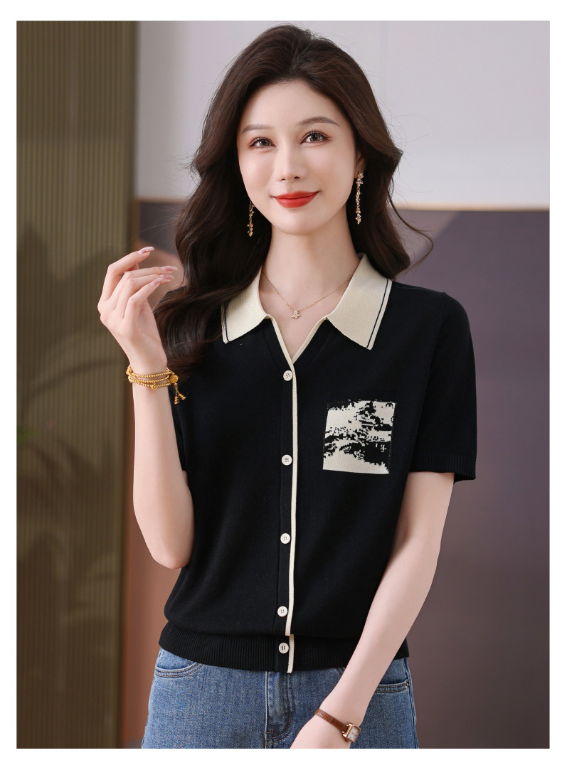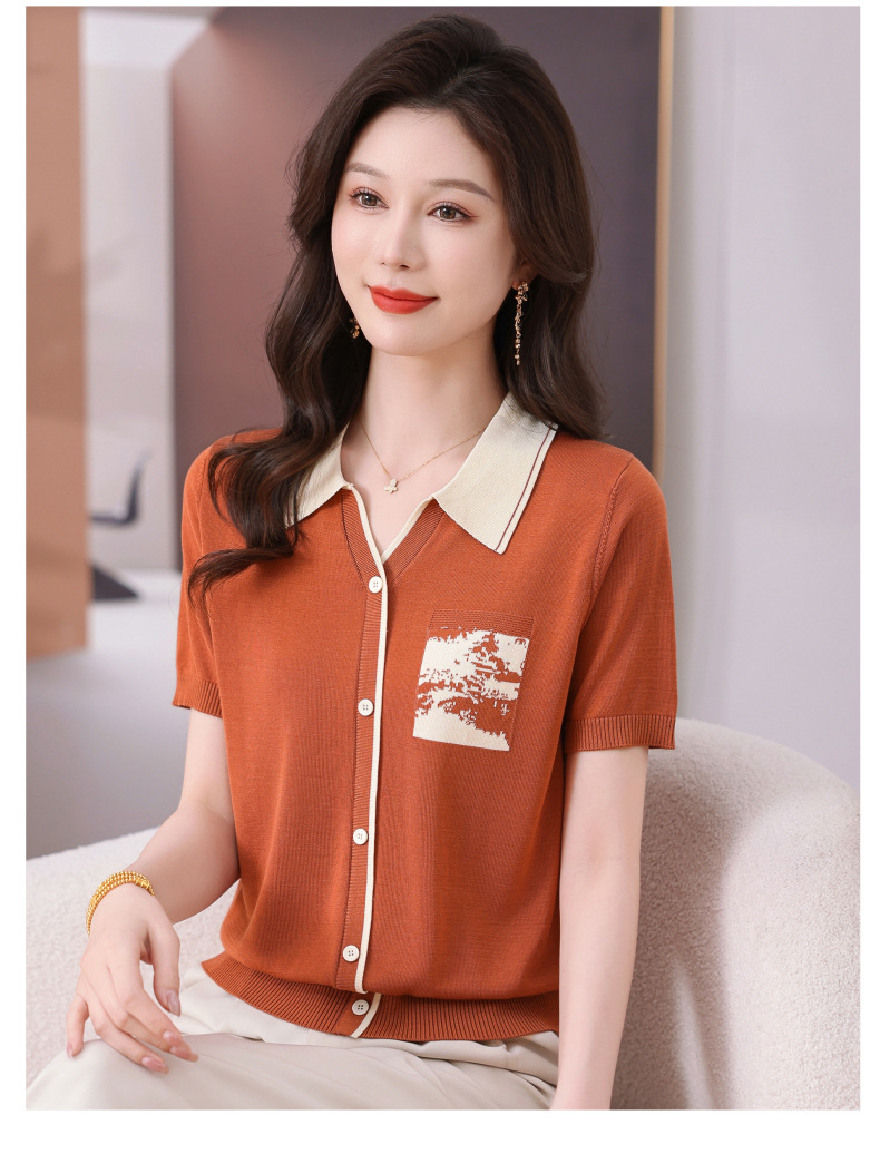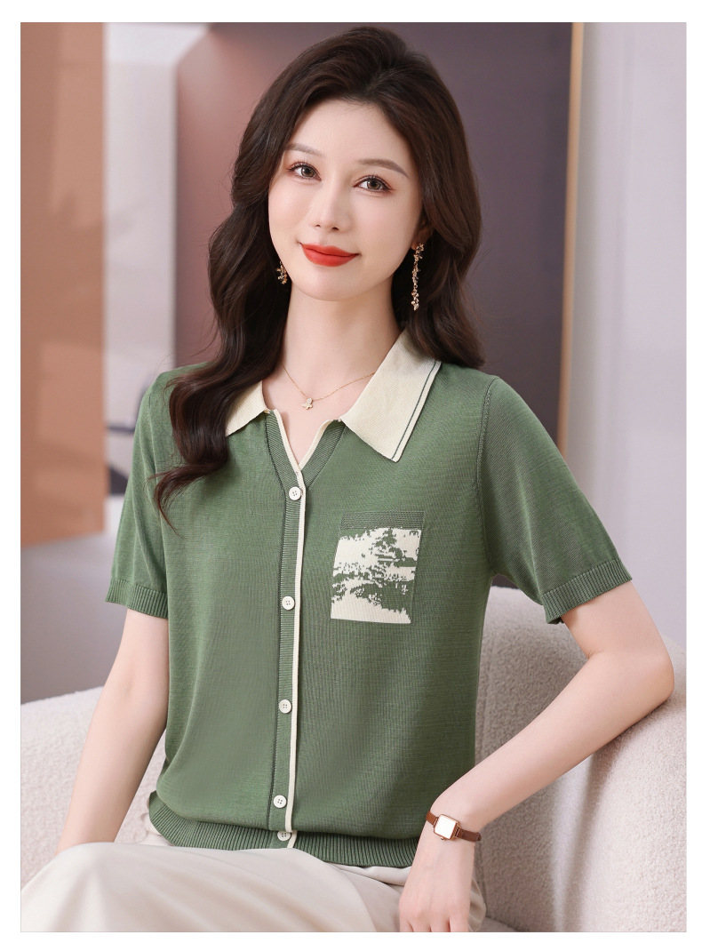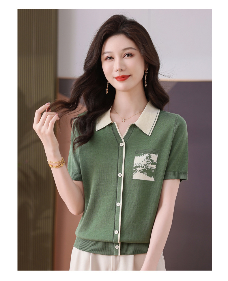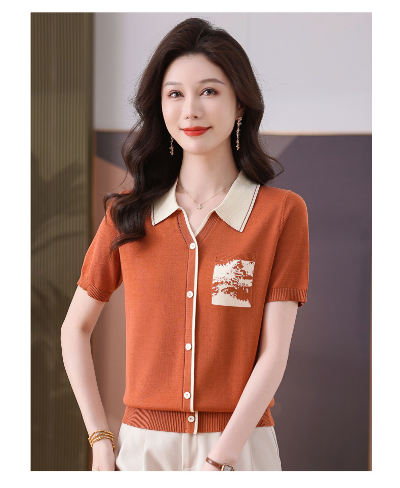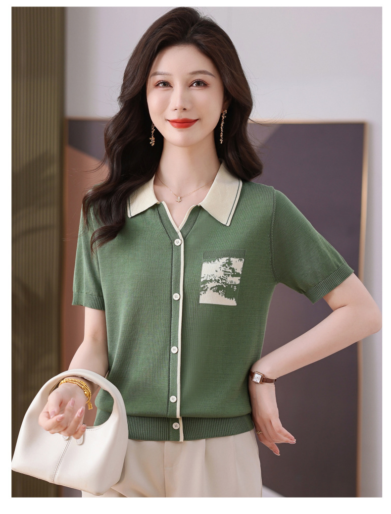 翻领冰丝针织衫,气质减龄polo衫上衣CC-89-791