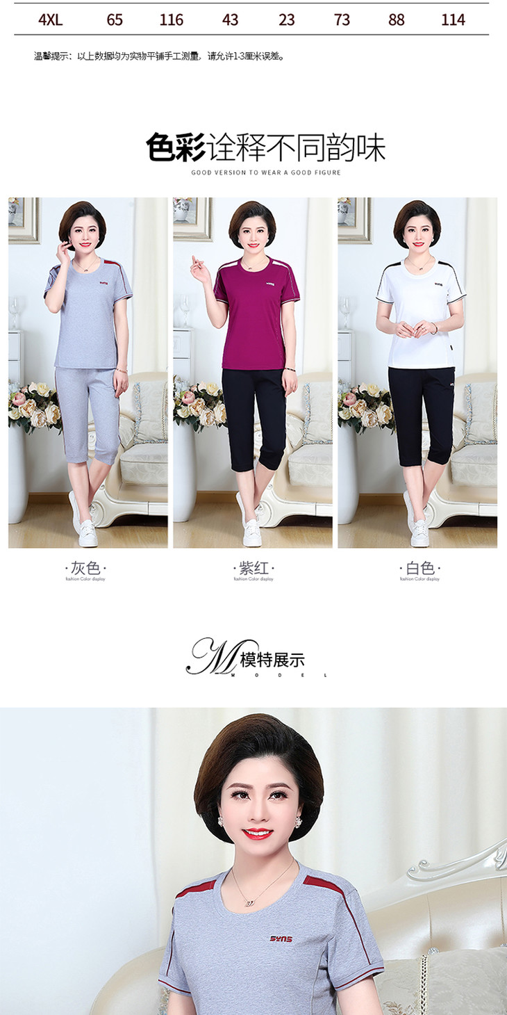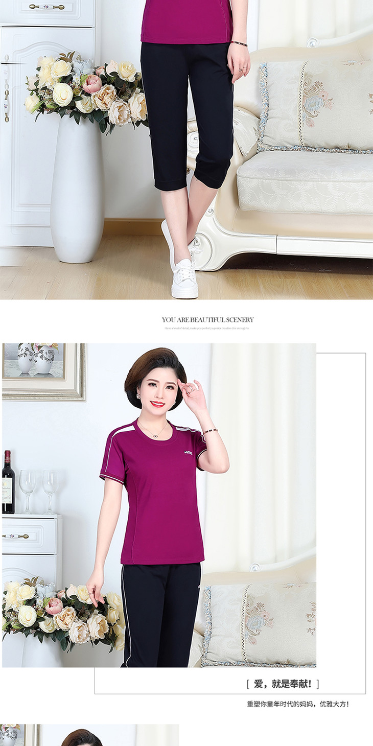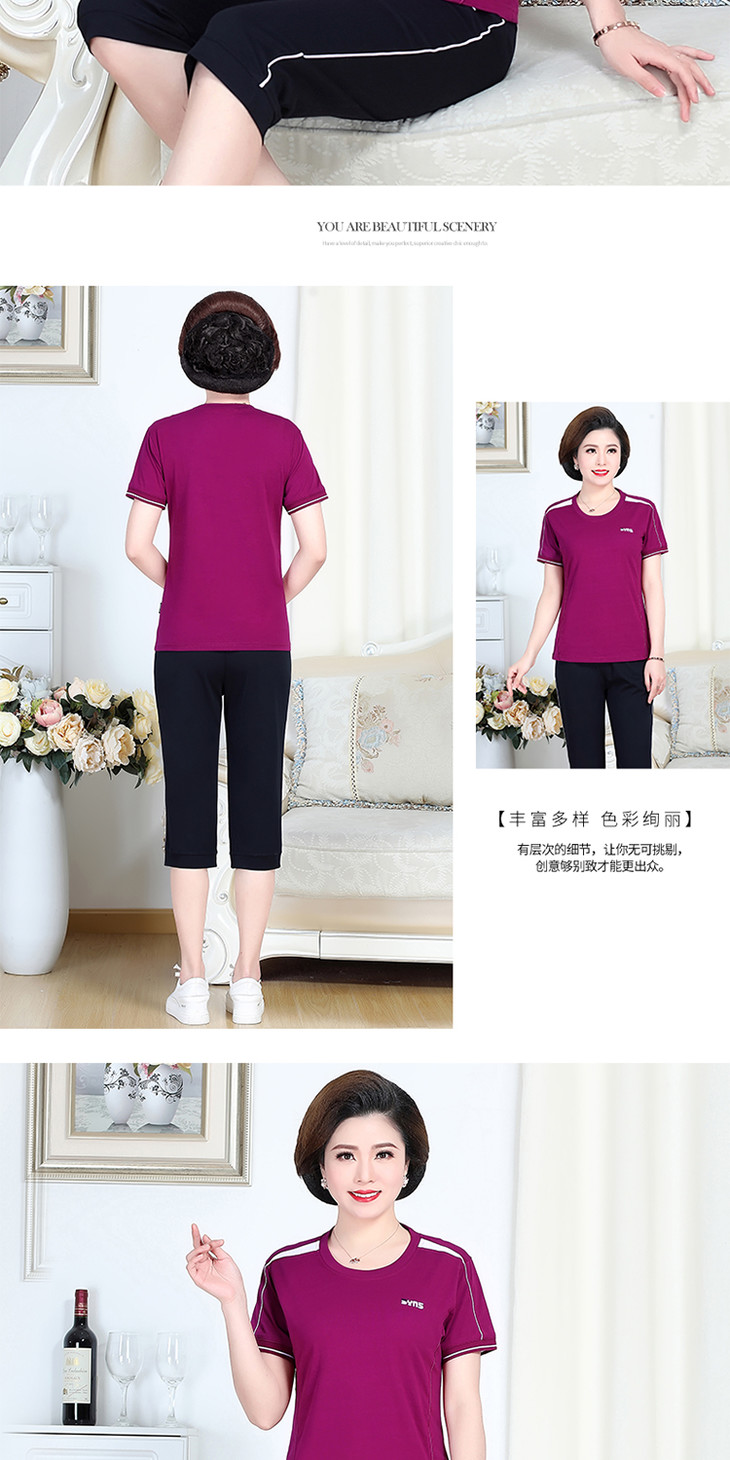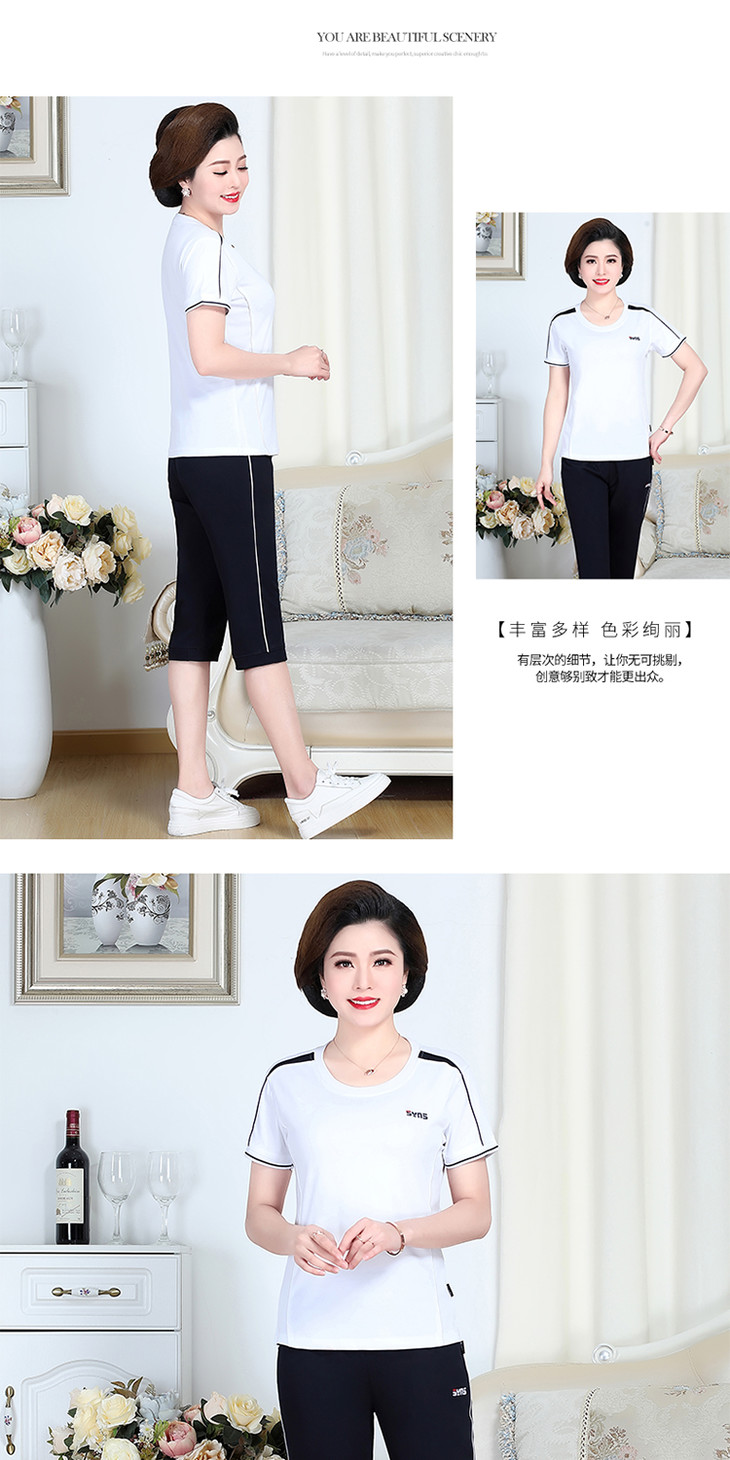 SP-3325-BNF减龄妈妈夏装 短袖t恤女中老年女装运动两件套装