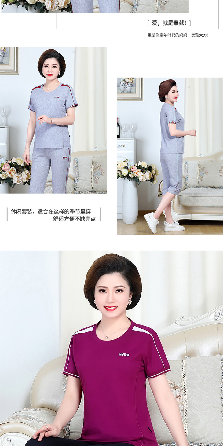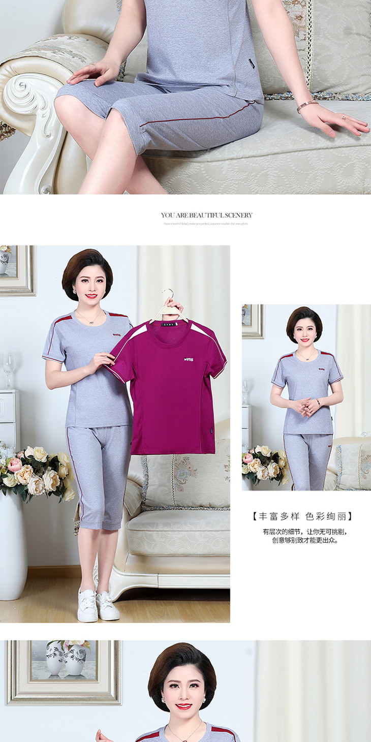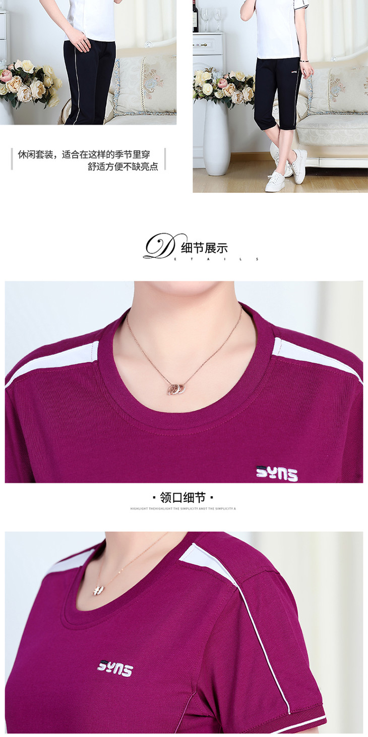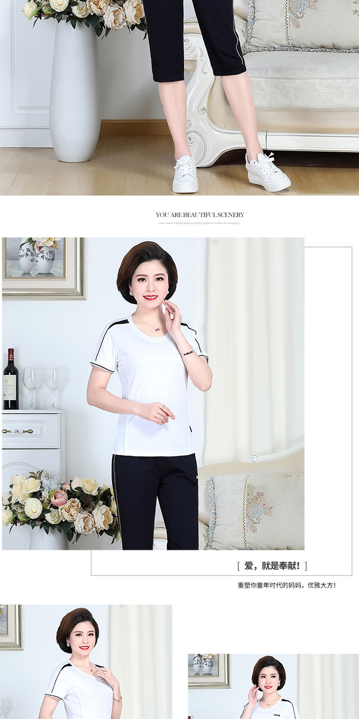 SP-3325-BNF减龄妈妈夏装 短袖t恤女中老年女装运动两件套装