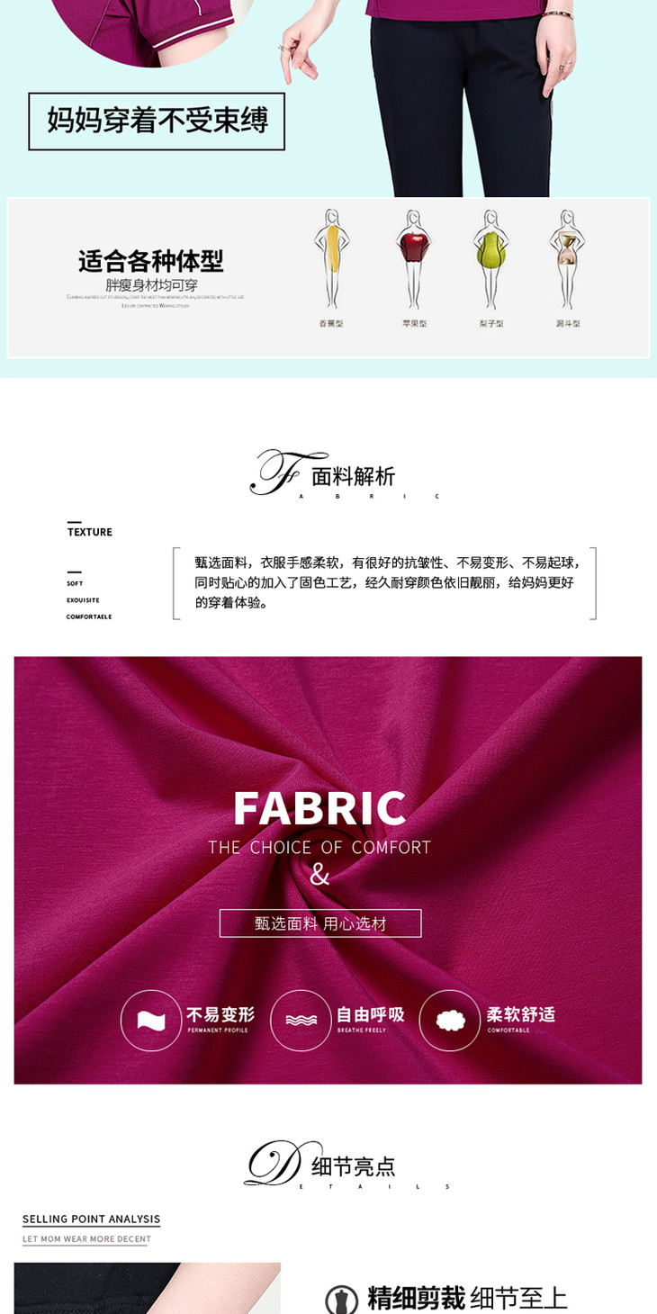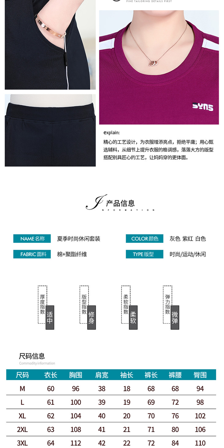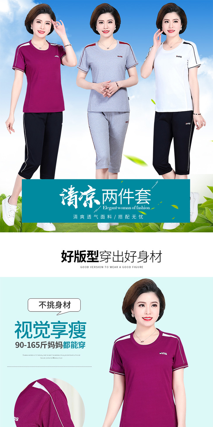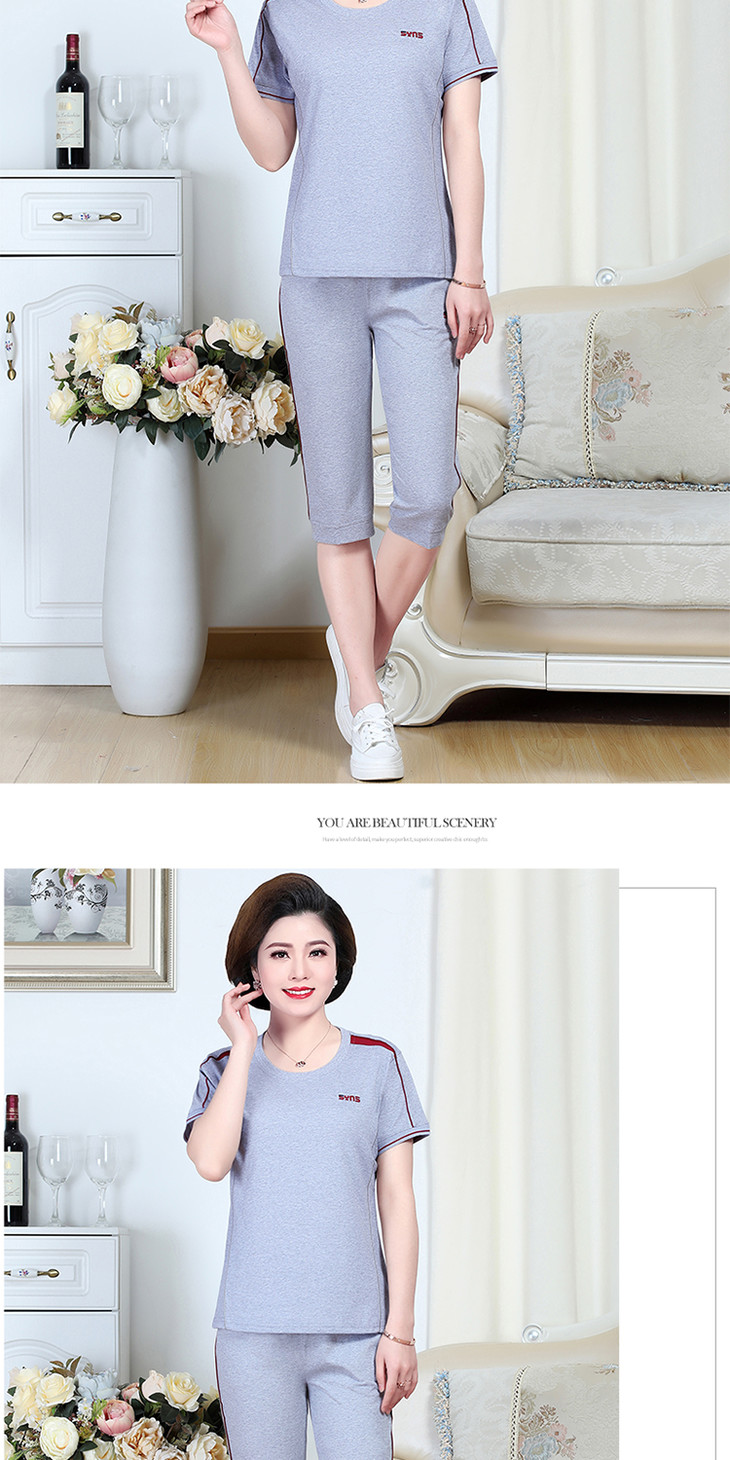 SP-3325-BNF减龄妈妈夏装 短袖t恤女中老年女装运动两件套装