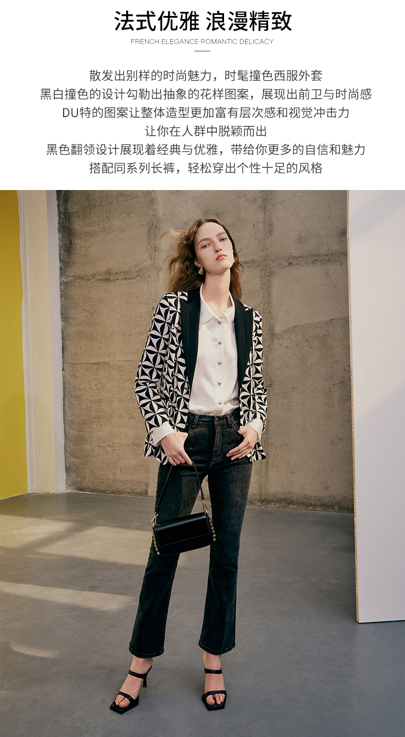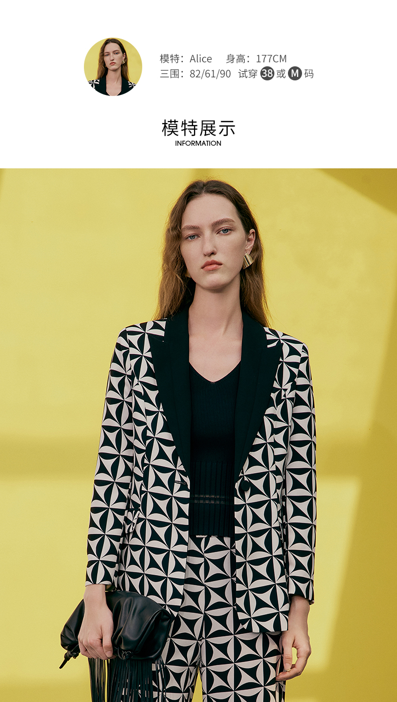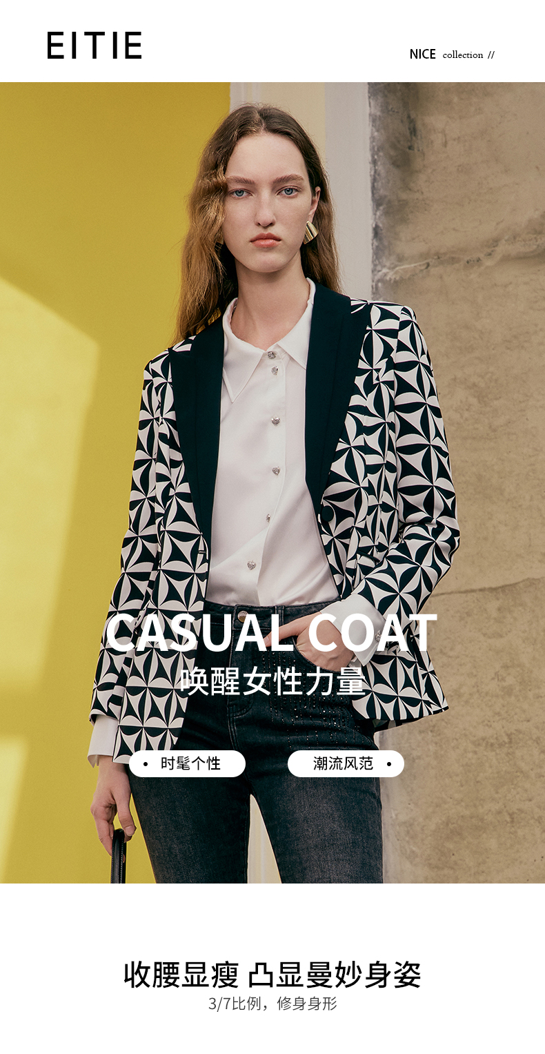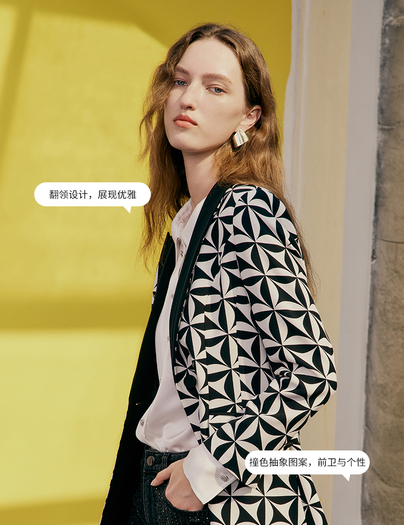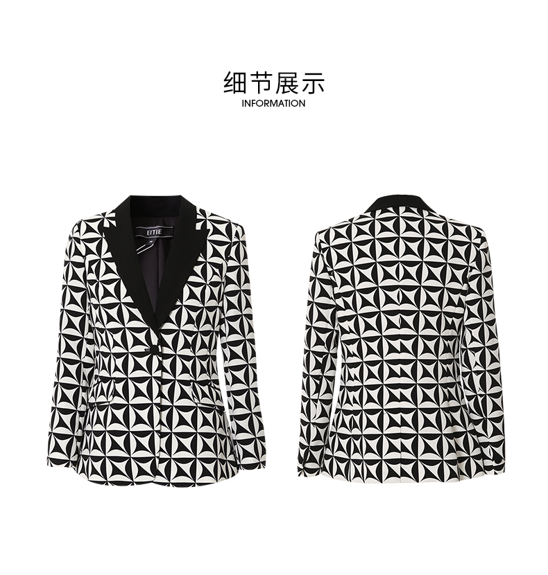 EITIE爱特爱春季新款撞色几何图形印花外套7303007