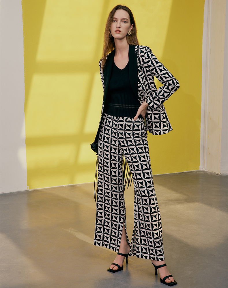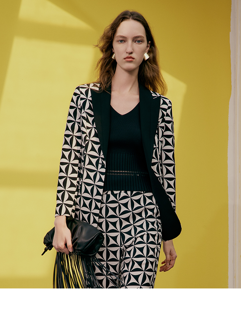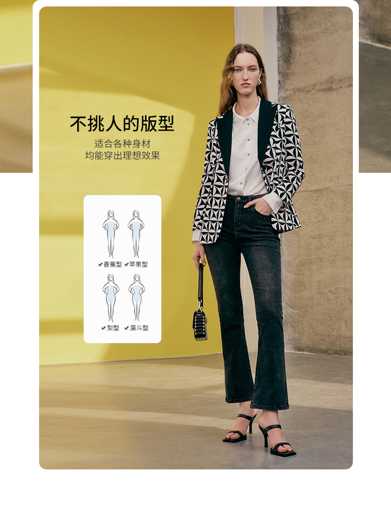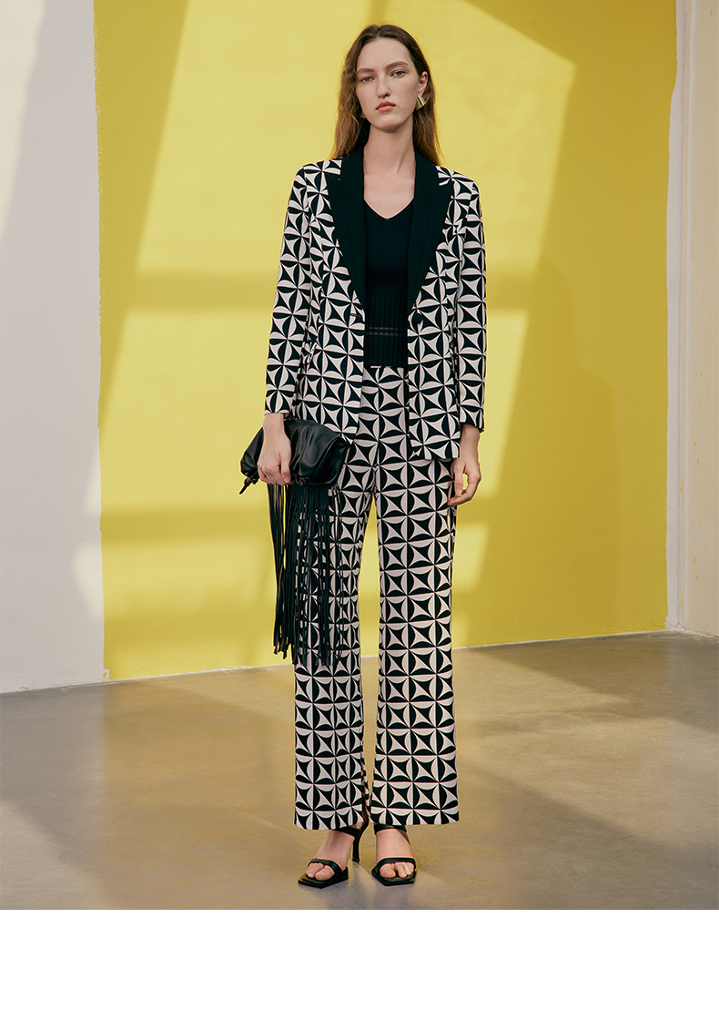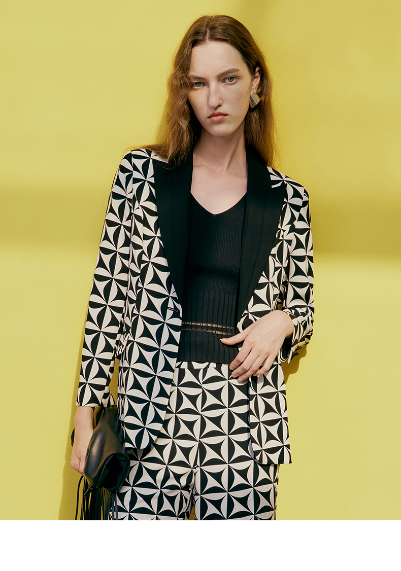 EITIE爱特爱春季新款撞色几何图形印花外套7303007