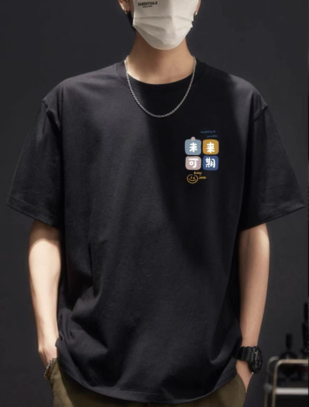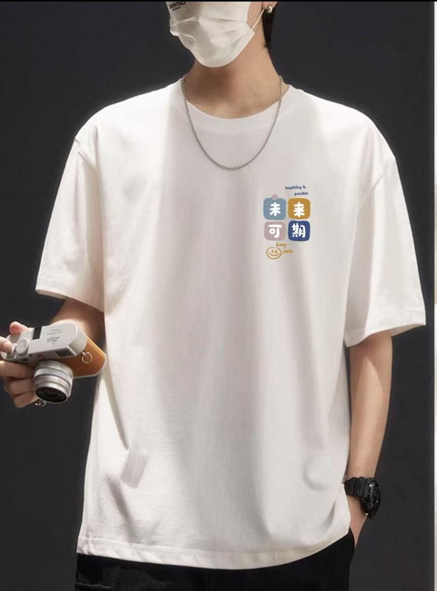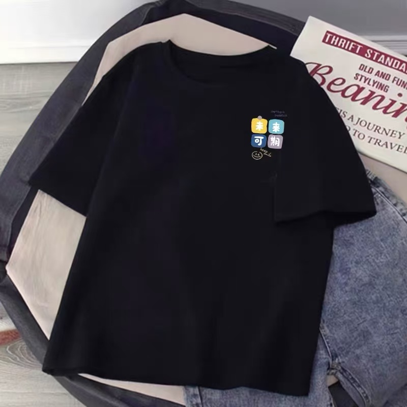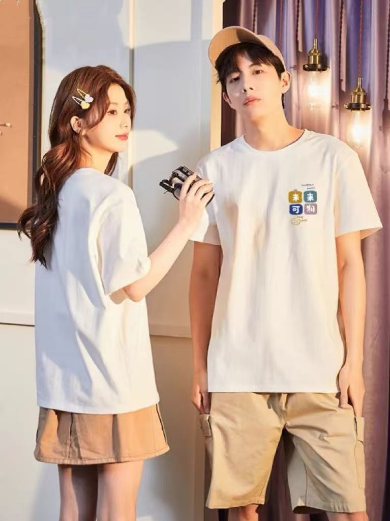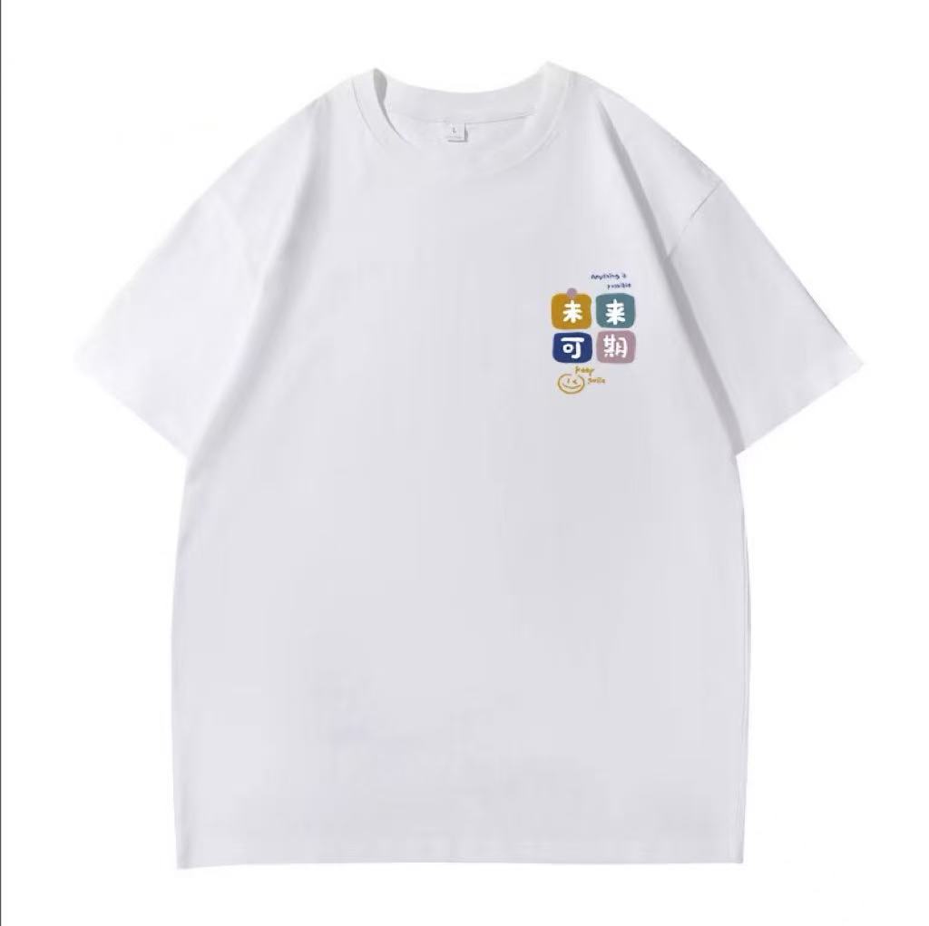 工厂直促价【100%棉】情侣(未来可期-侧标)柯式印花短袖T恤-喜出