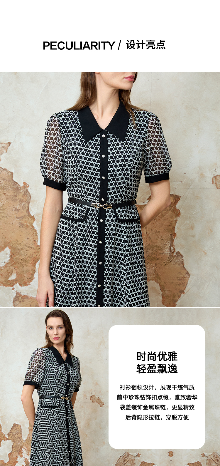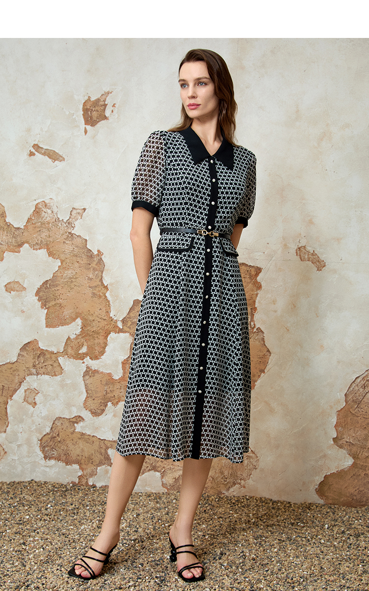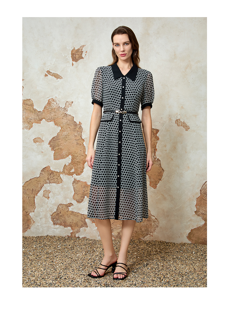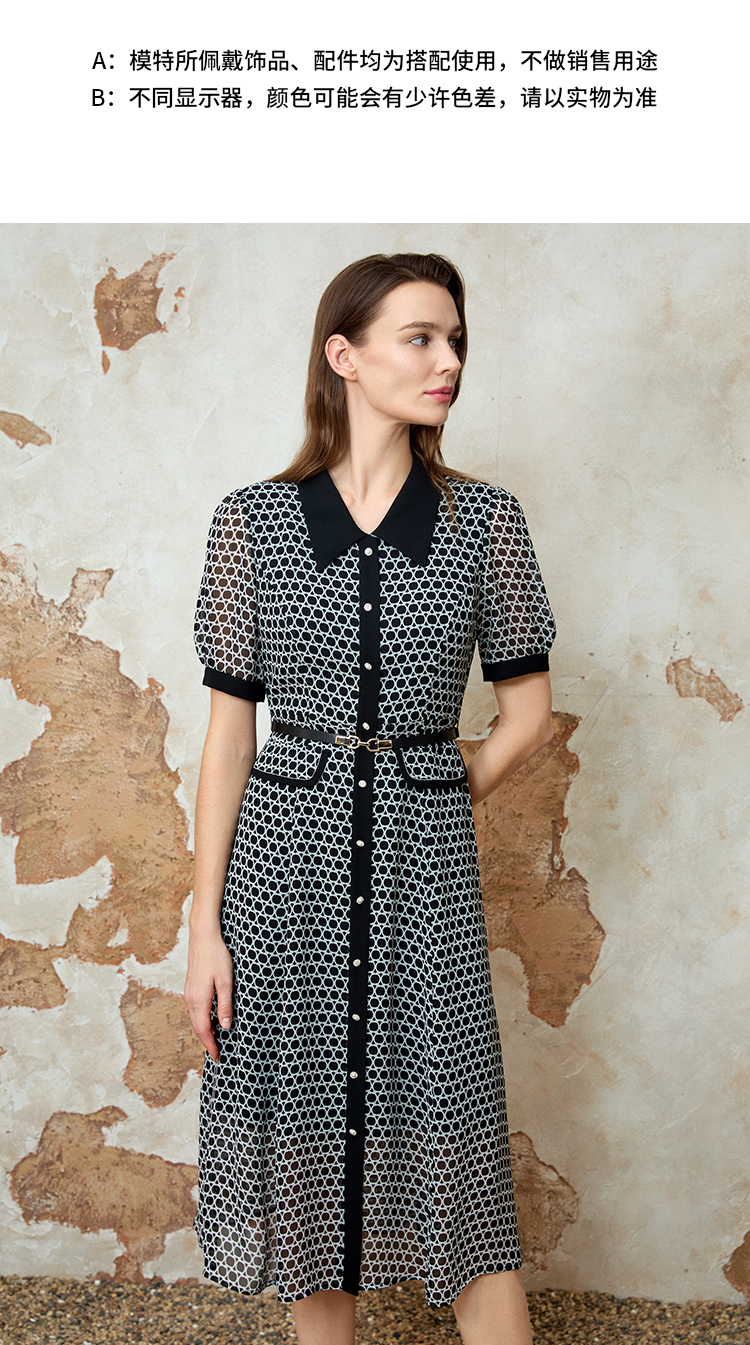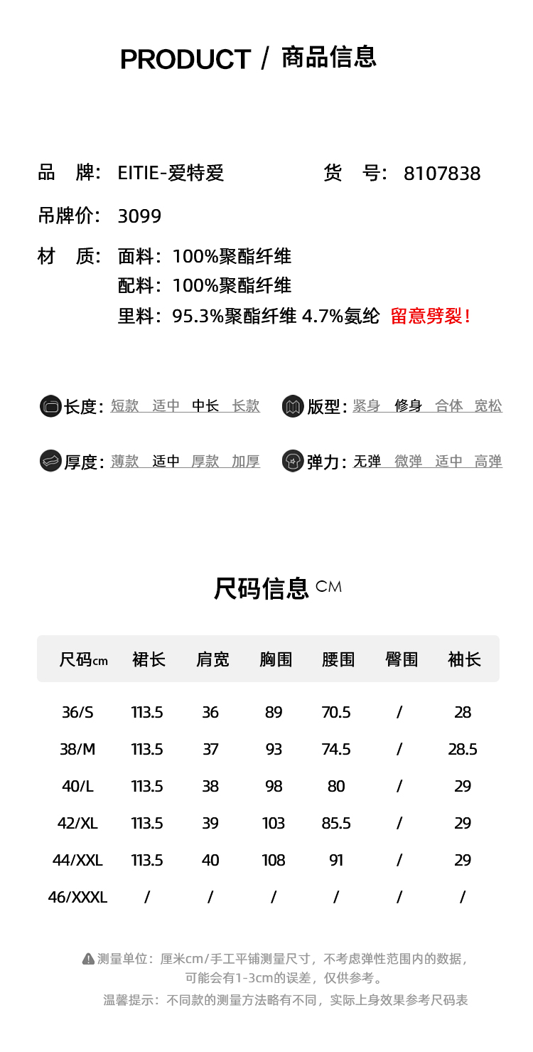 EITIE爱特爱法式优雅气质时尚通勤收腰连衣裙春季新款8107838