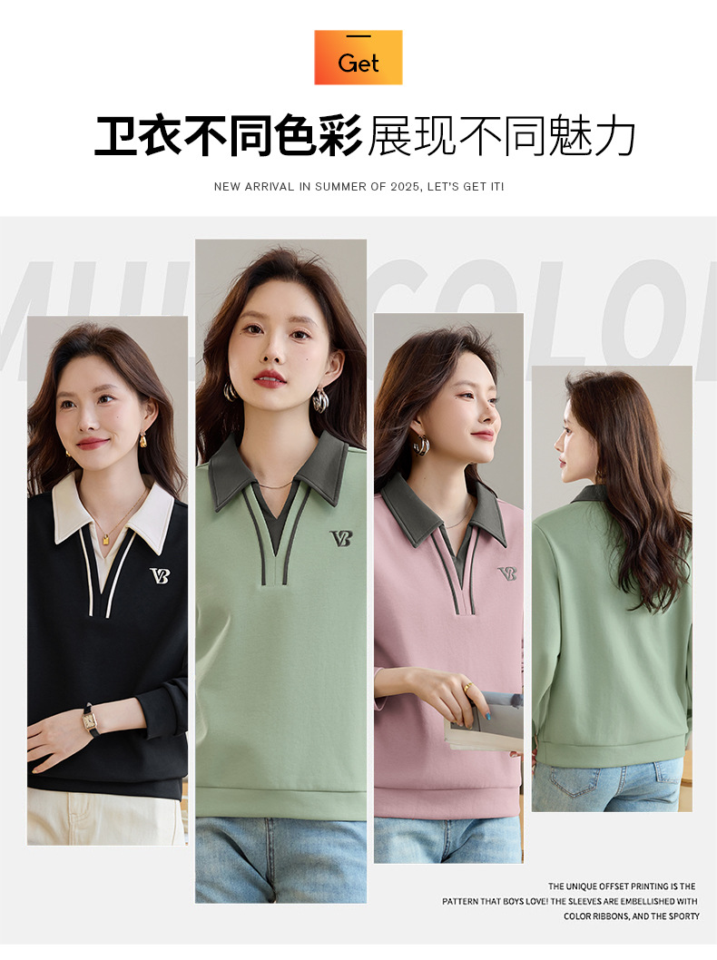 雀说假两件卫衣女新款爆款洋气女装正肩显瘦翻领薄外套AL30018