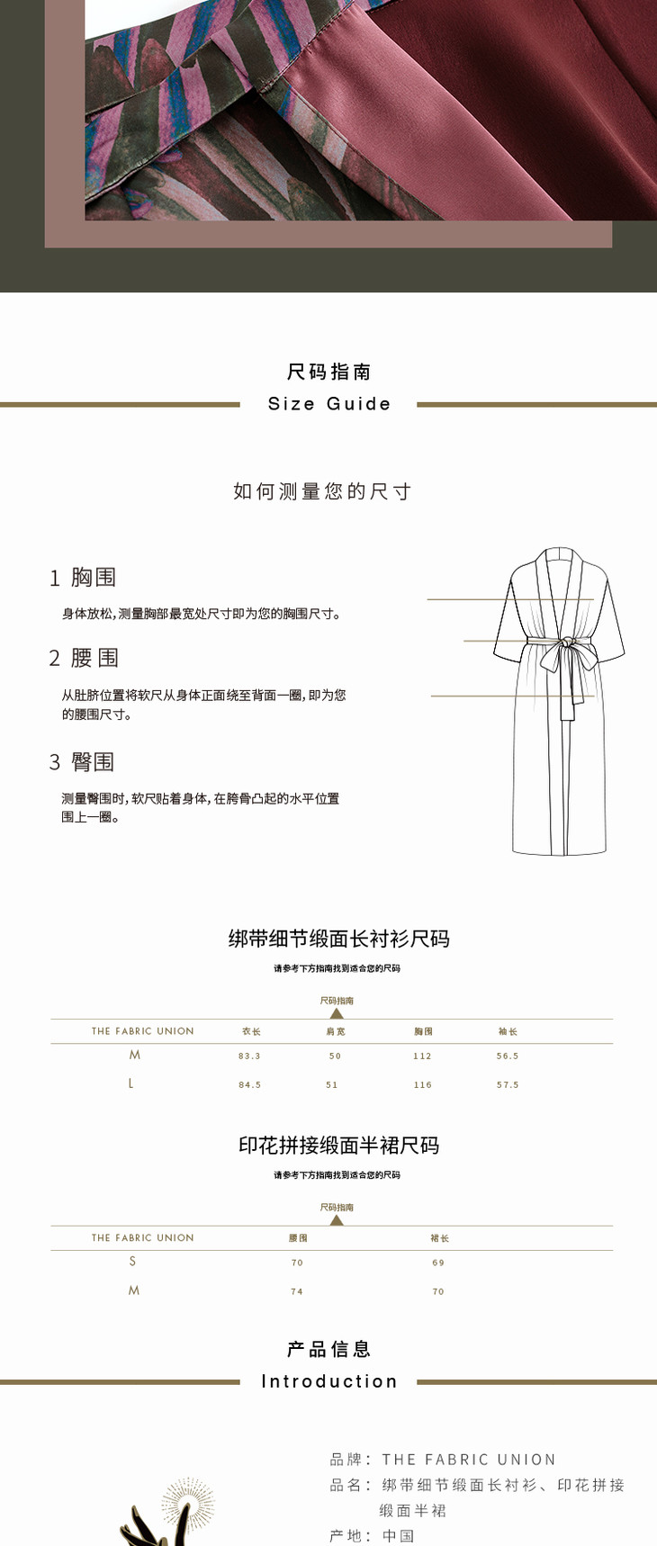 THE FABRIC UNION 印花中性缎面衬衫 & 印花缎面系带假日裹裙