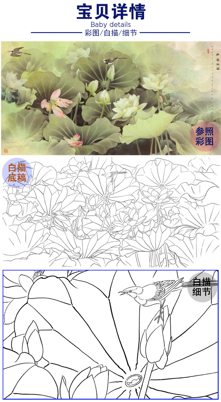 横幅工笔花鸟白描底稿-邹传安-荷花-A028
