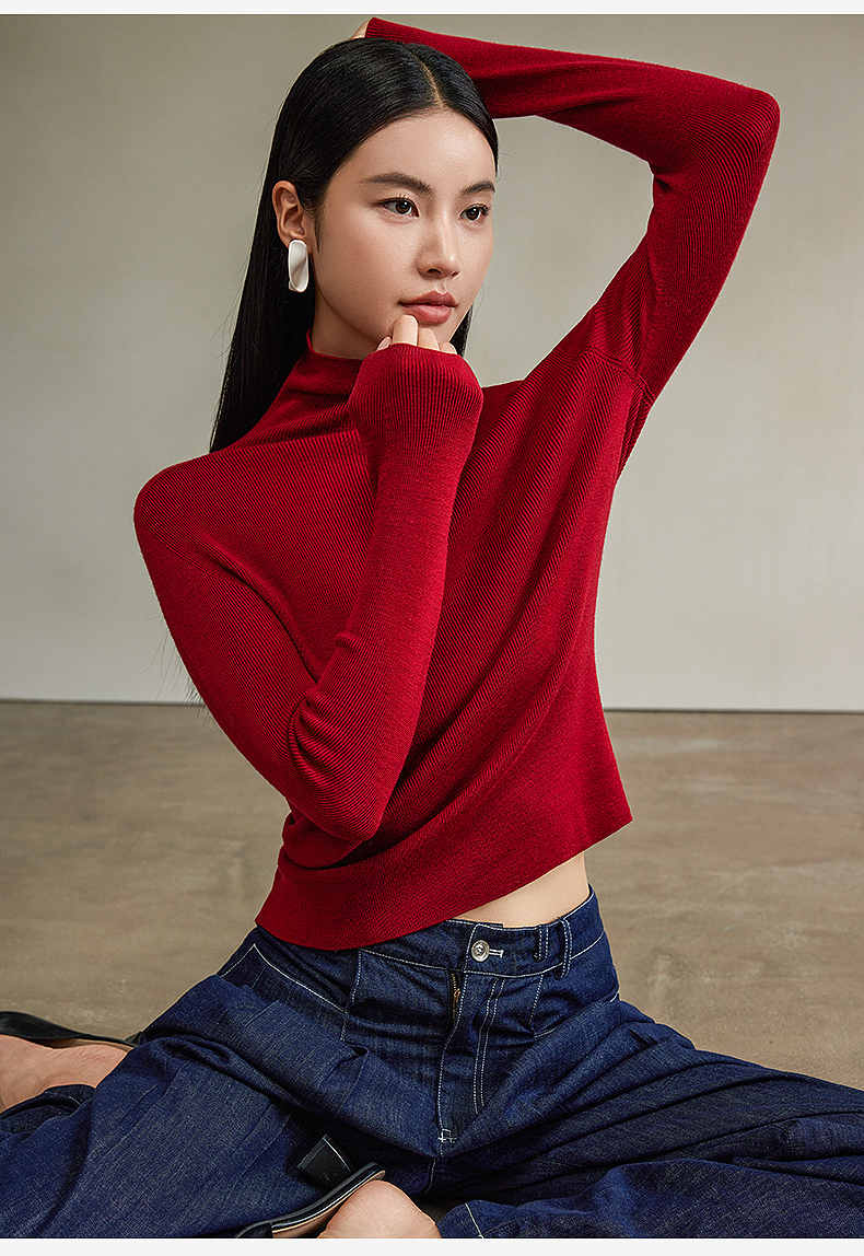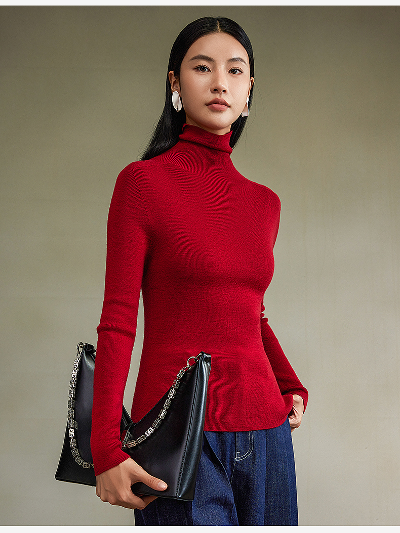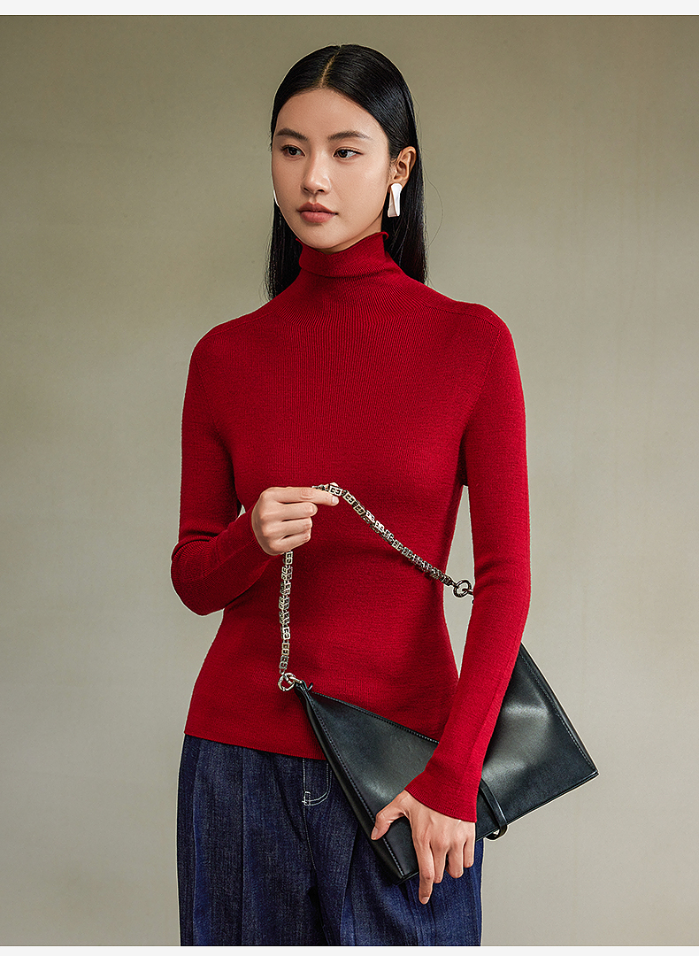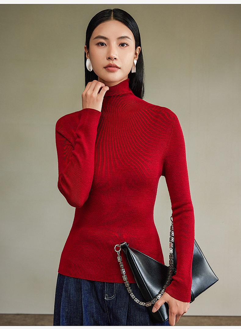 西嘉【秋季新品】可机洗精纺羊毛高领无缝针织衫(MY2403066)