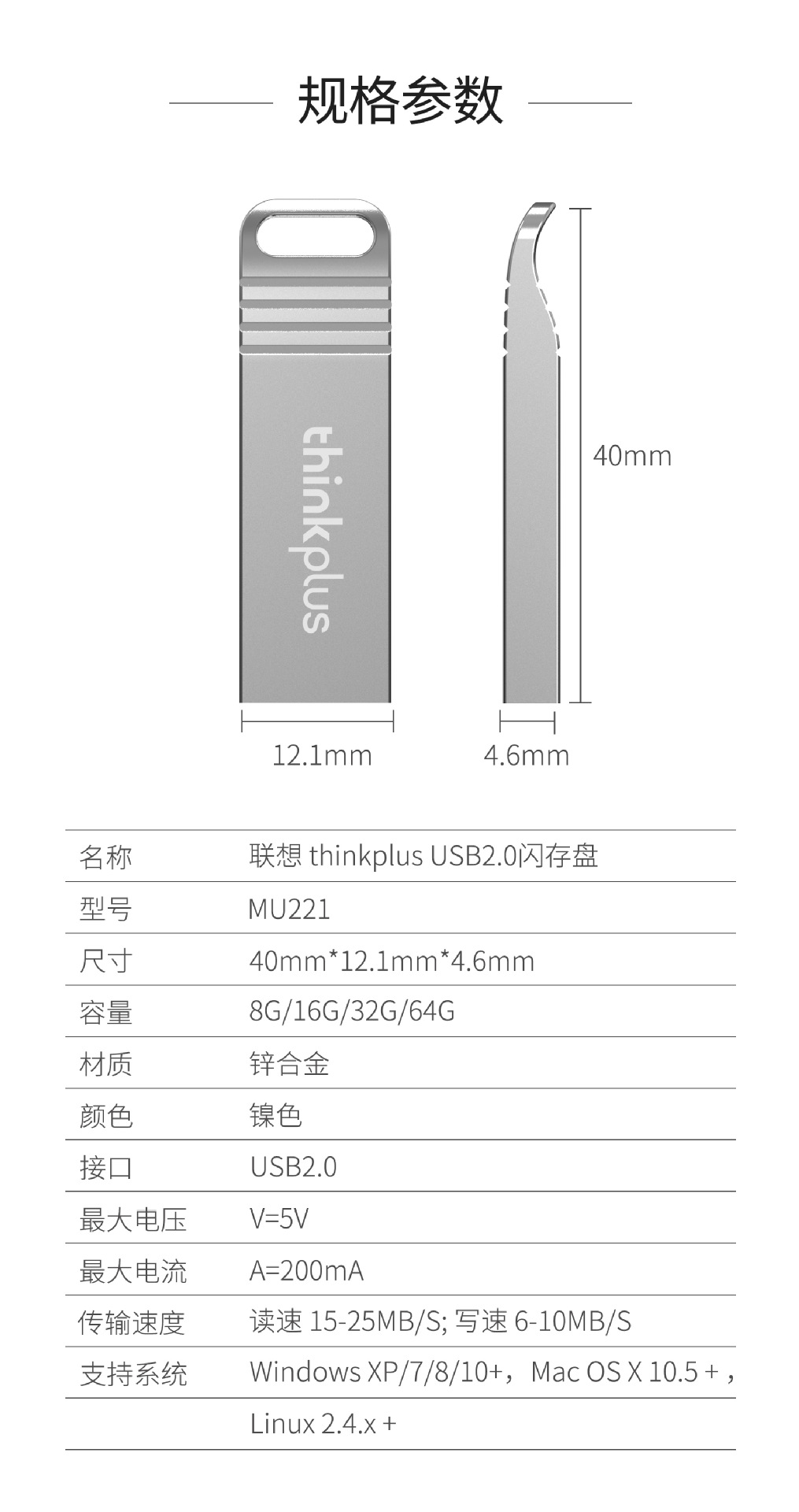【品质更好,颜值更高,金属小巧防水~】联想ThinkplusU盘 MU221婚庆高速64G 礼品优盘 防水 防震 防尘 高颜值 高品质-QQ