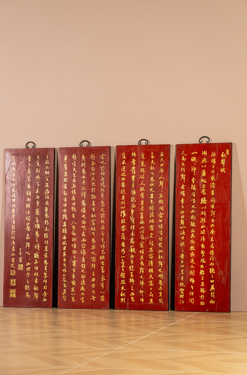 清 黄花梨百宝嵌花鸟诗文笔筒