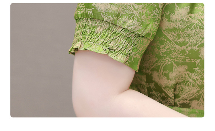 QYMJJ-FXP067-Y 时尚印花连衣裙女2024年夏季新款短袖系带收腰中长款妈妈半裙子 商品图3