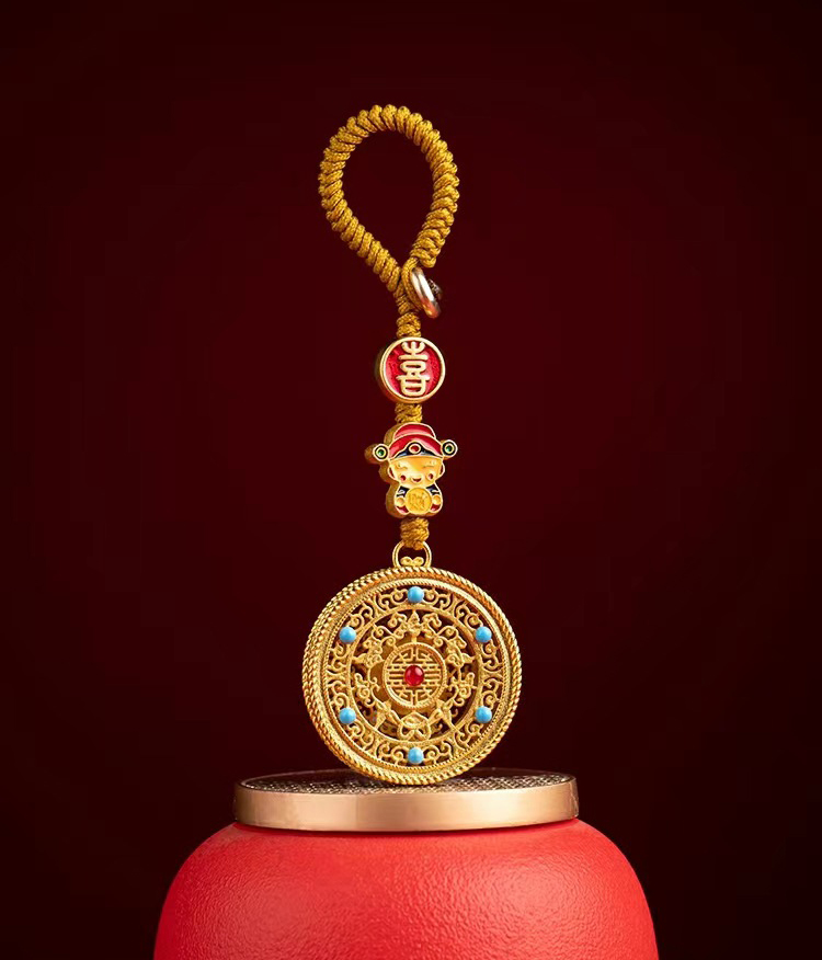 太清沙金多财钥匙扣财神爷五福圆满平安喜乐古风汽车钥匙挂件