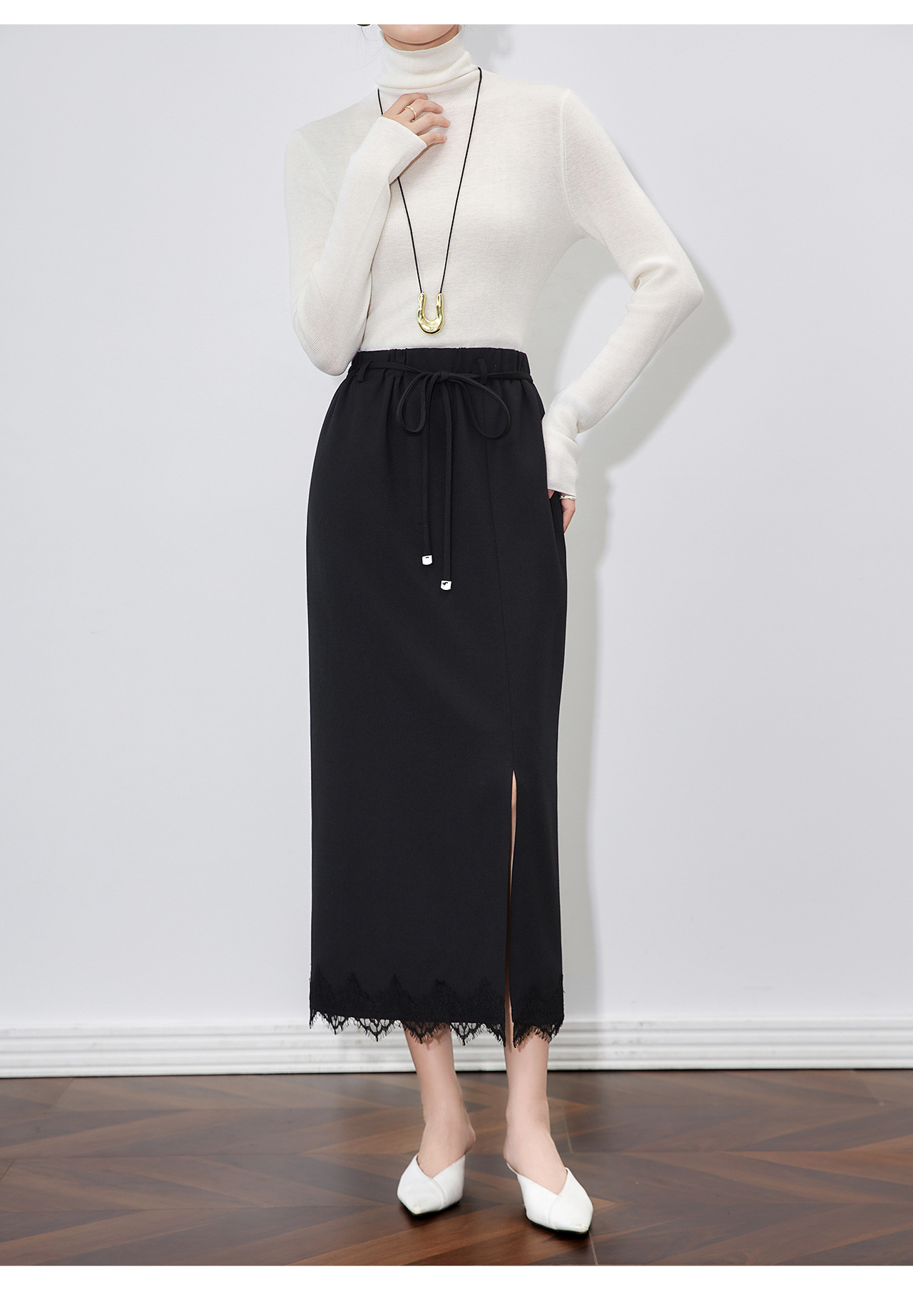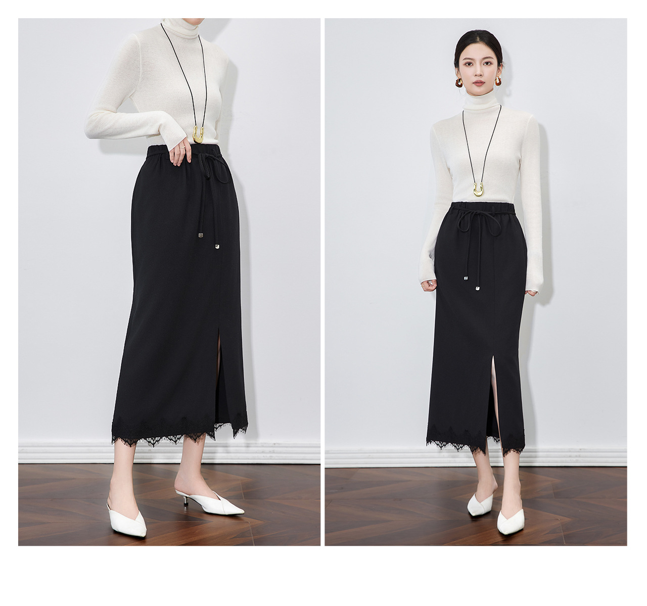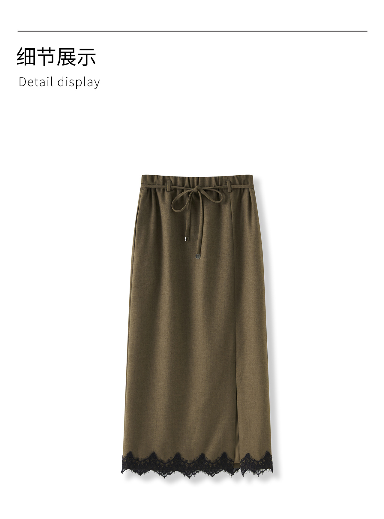 「高货wl」全新升级【铂金会员257/天猫349/差价92】(20741)洛诗琳优雅蕾丝花边拼接半身裙2025秋季侧开叉显瘦直筒裙