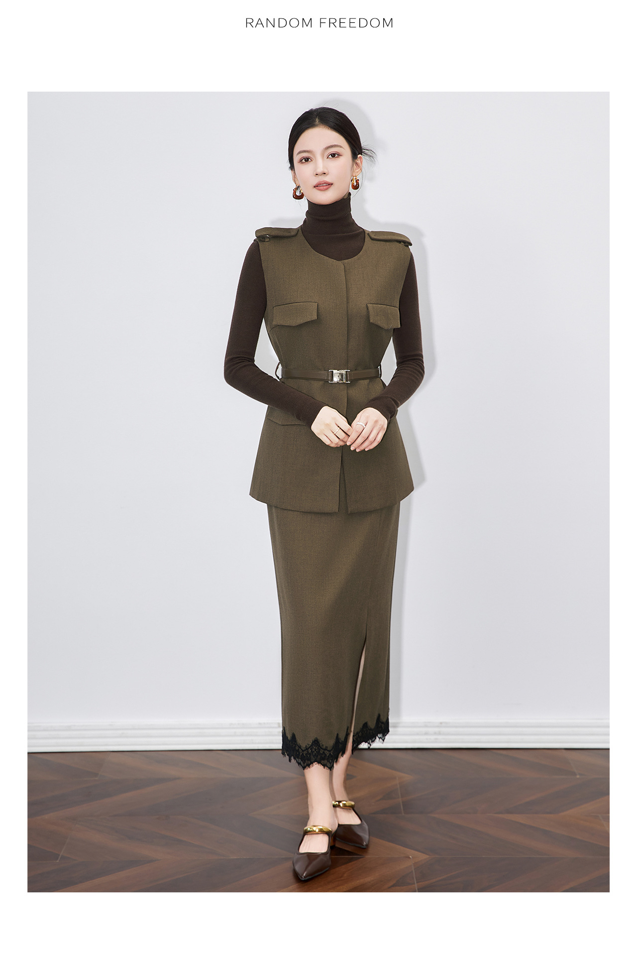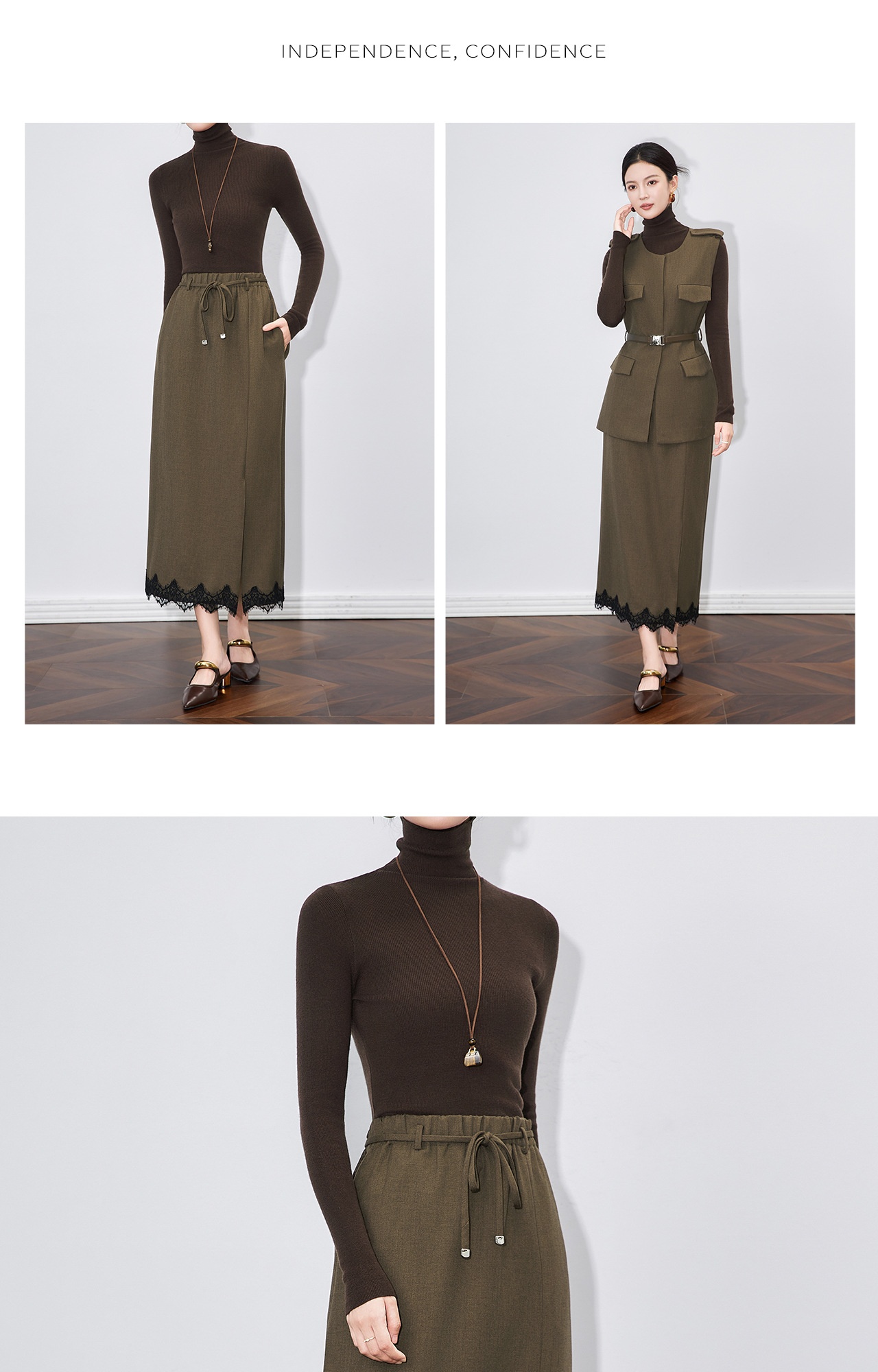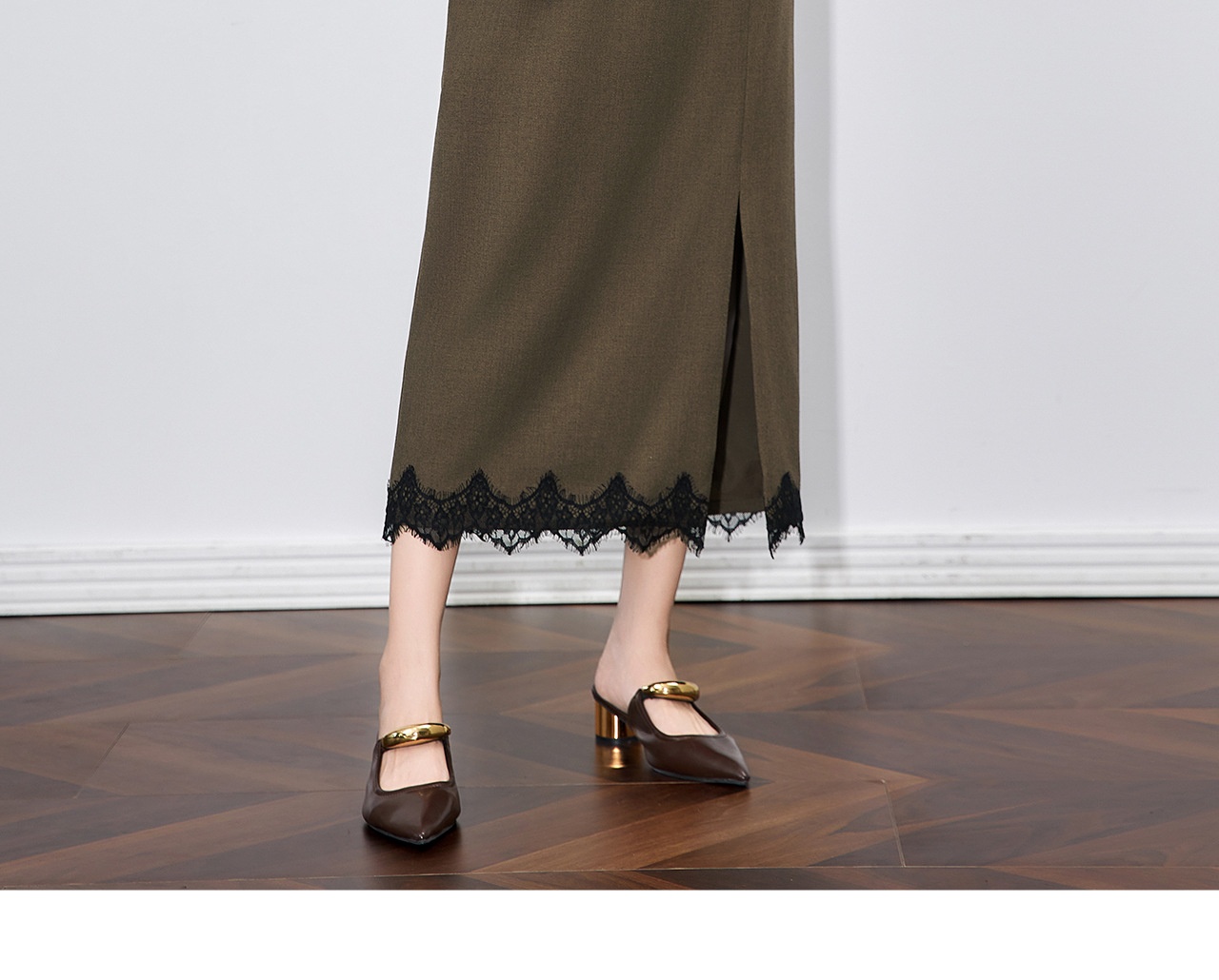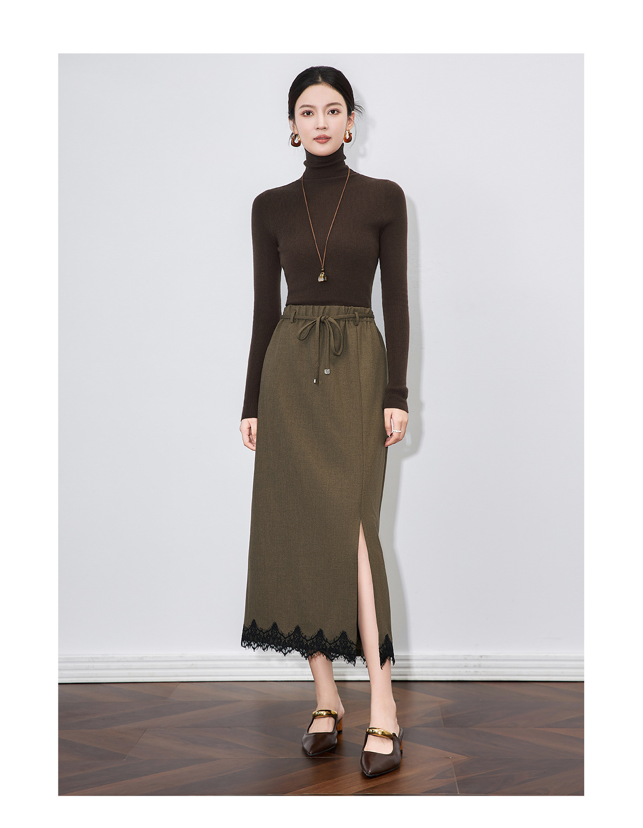 「高货wl」全新升级【铂金会员257/天猫349/差价92】(20741)洛诗琳优雅蕾丝花边拼接半身裙2025秋季侧开叉显瘦直筒裙