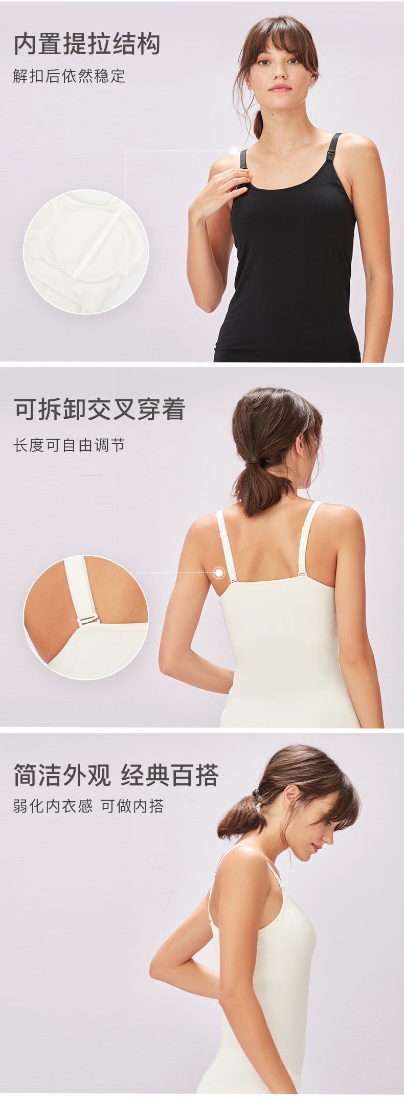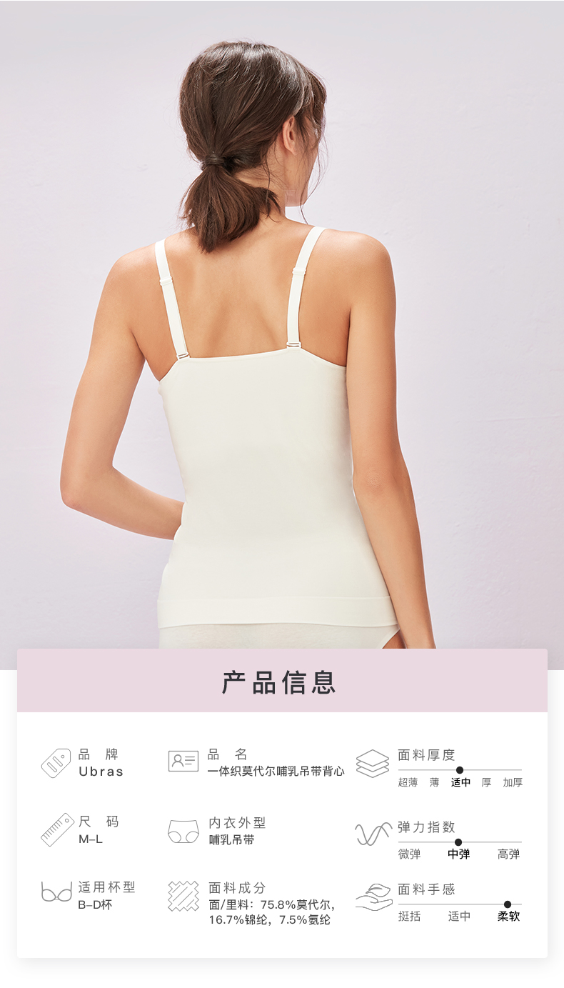 Ubras一体织莫代尔哺乳吊带背心可内搭舒适可拆卸肩带百搭女