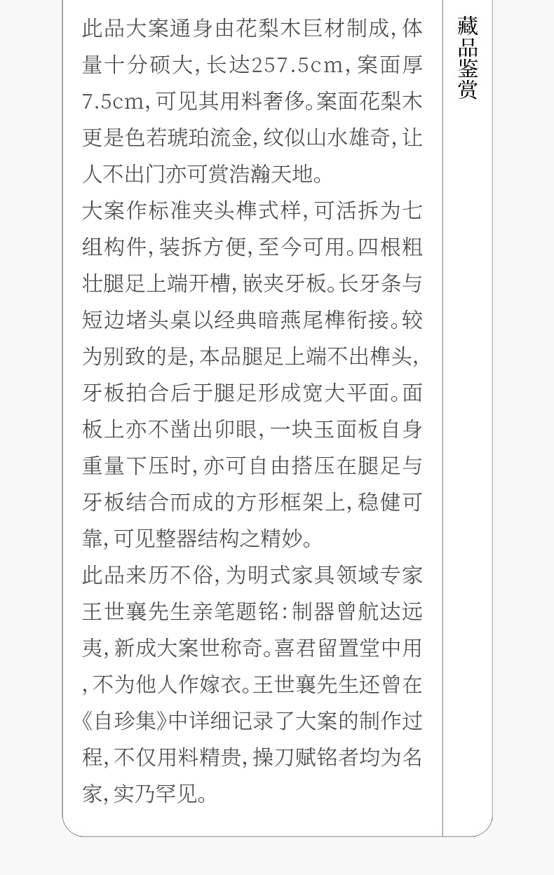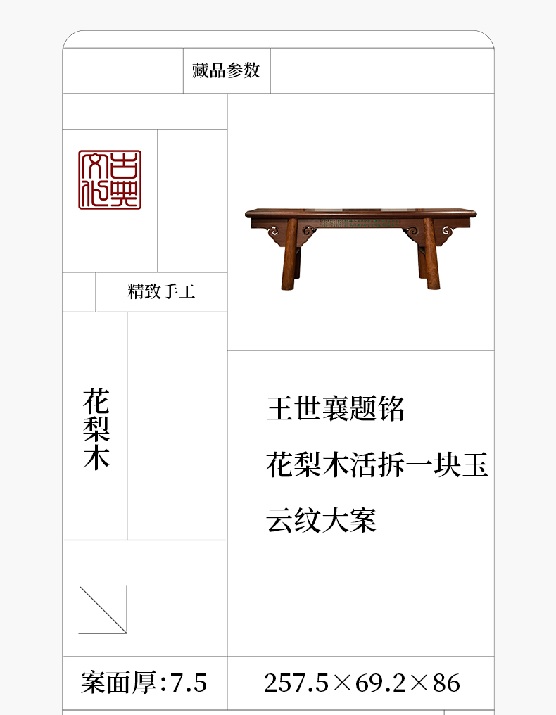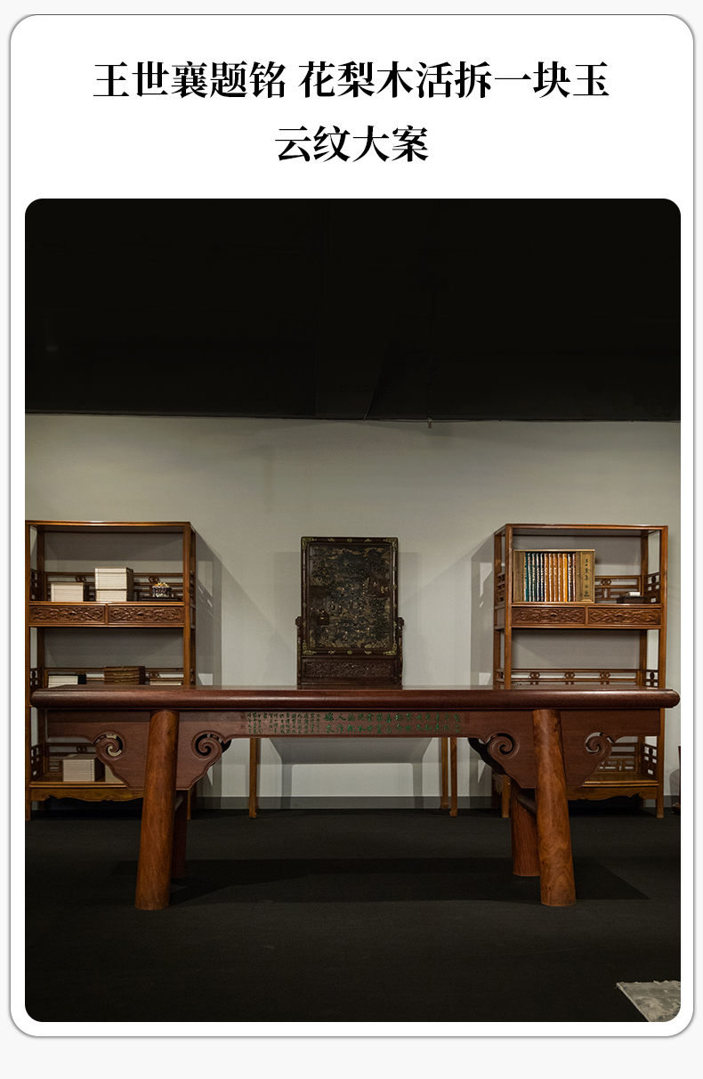 王世襄题铭 花梨木活拆一块玉云纹大案