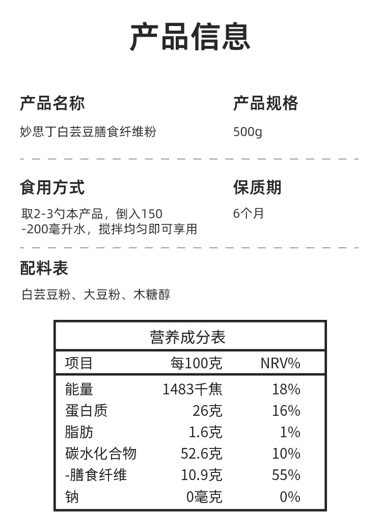 妙思丁 白芸豆膳食纤维粉500g/罐