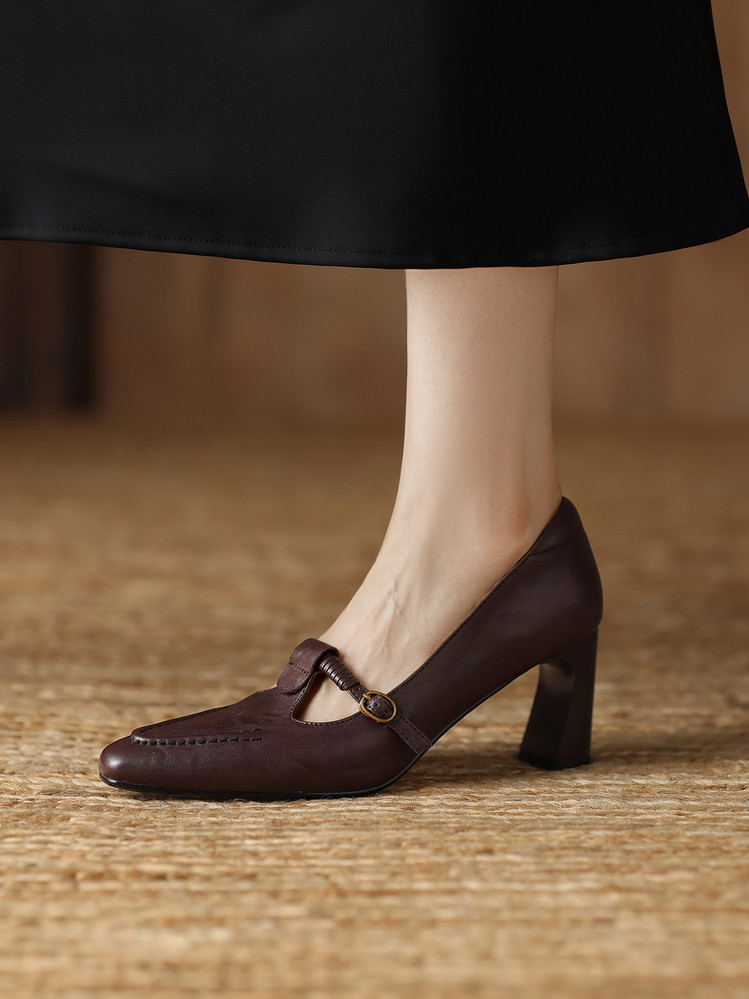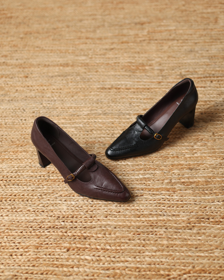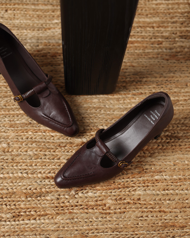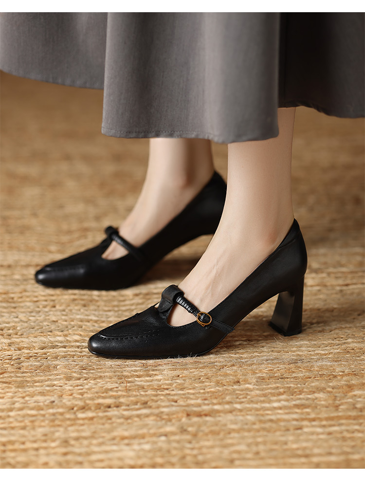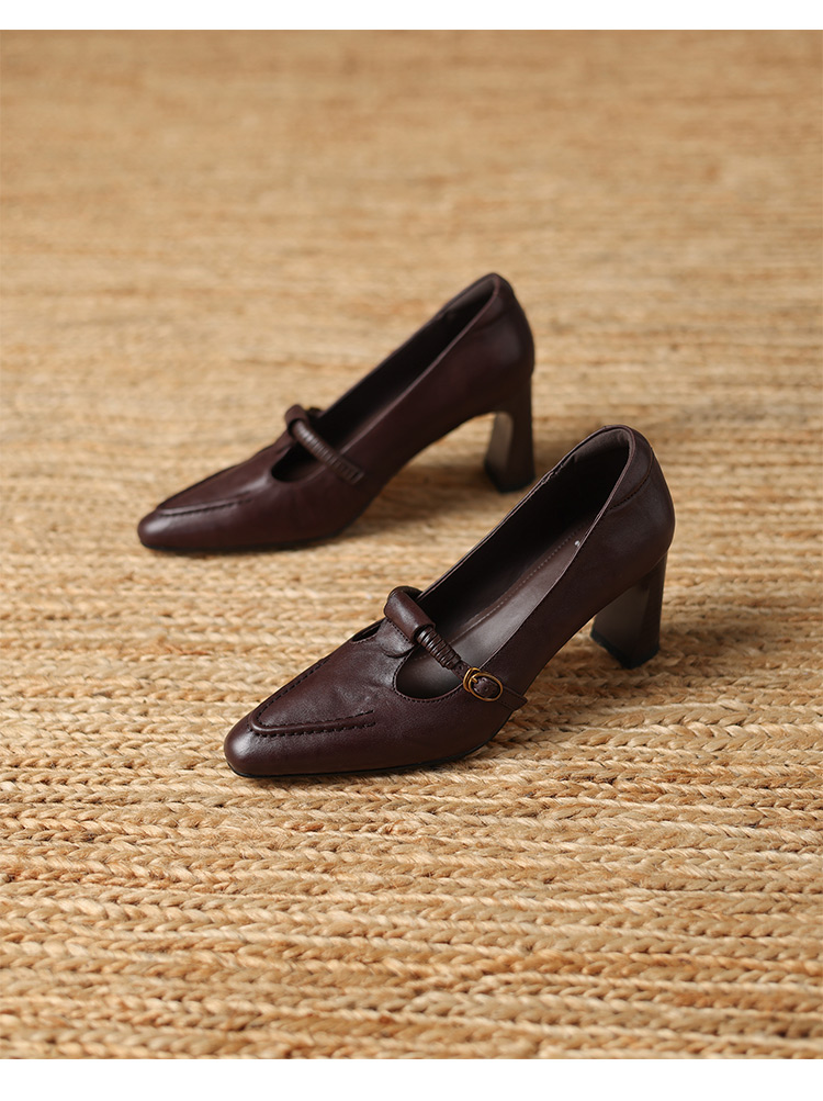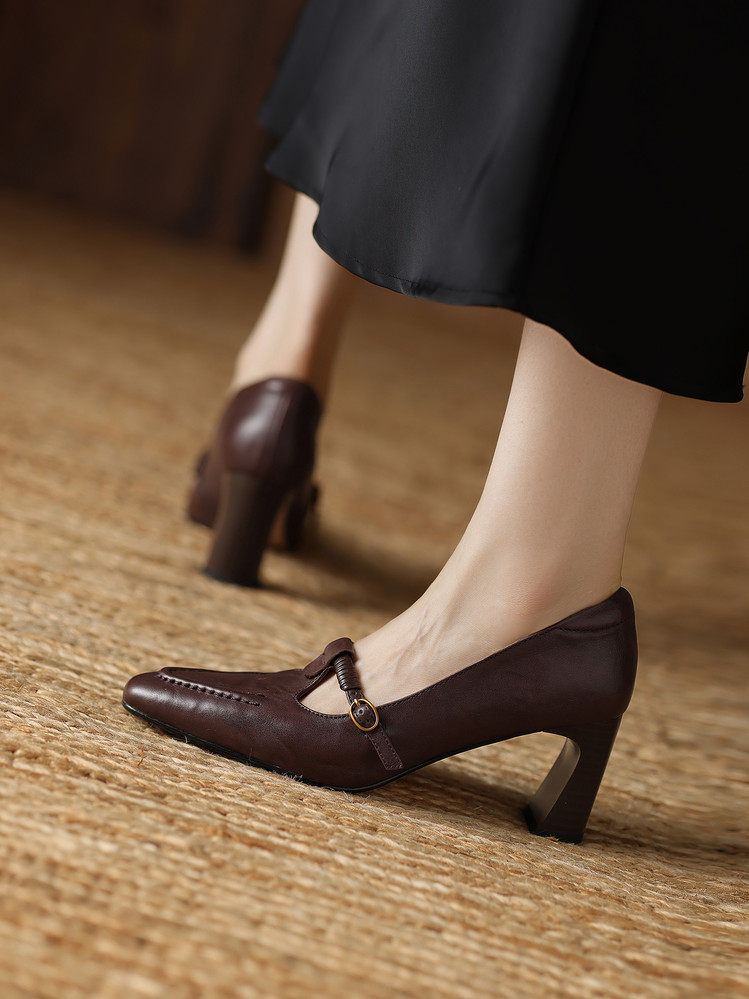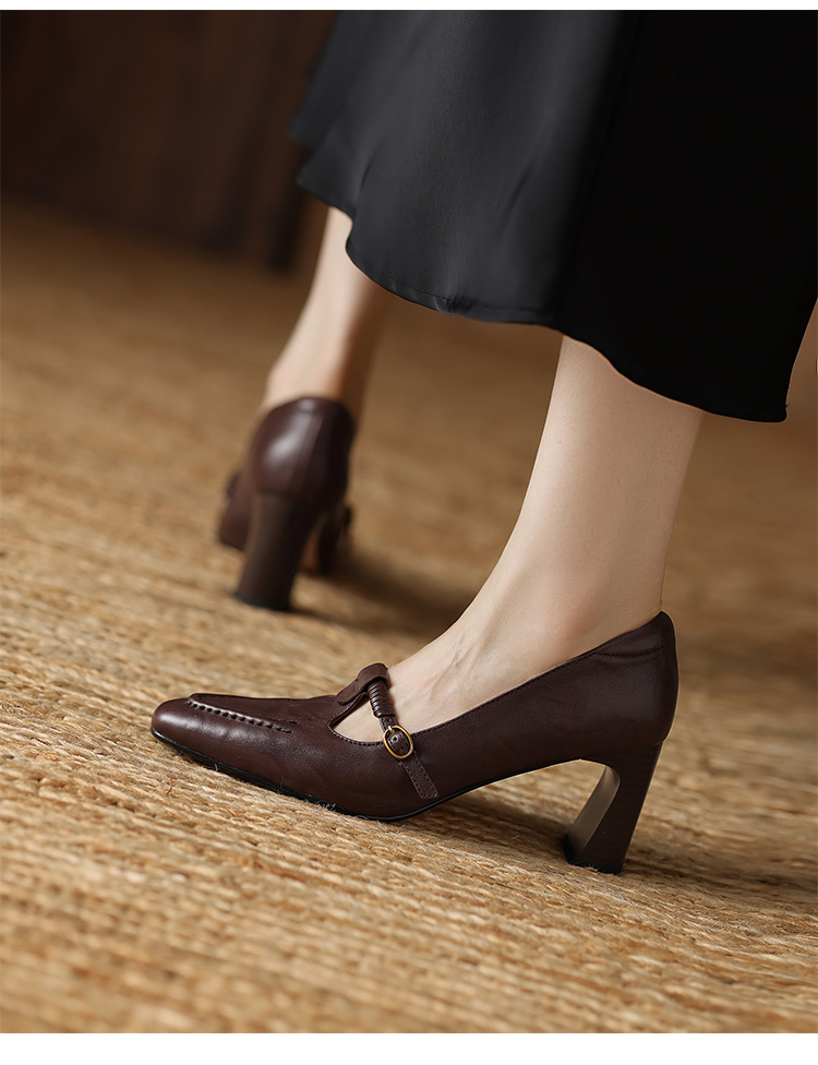 【预售5天】时尚百搭圆头丁字带高粗跟浅口单鞋女新款秋季小皮鞋黑棕色QQJFG&JZ-1922F