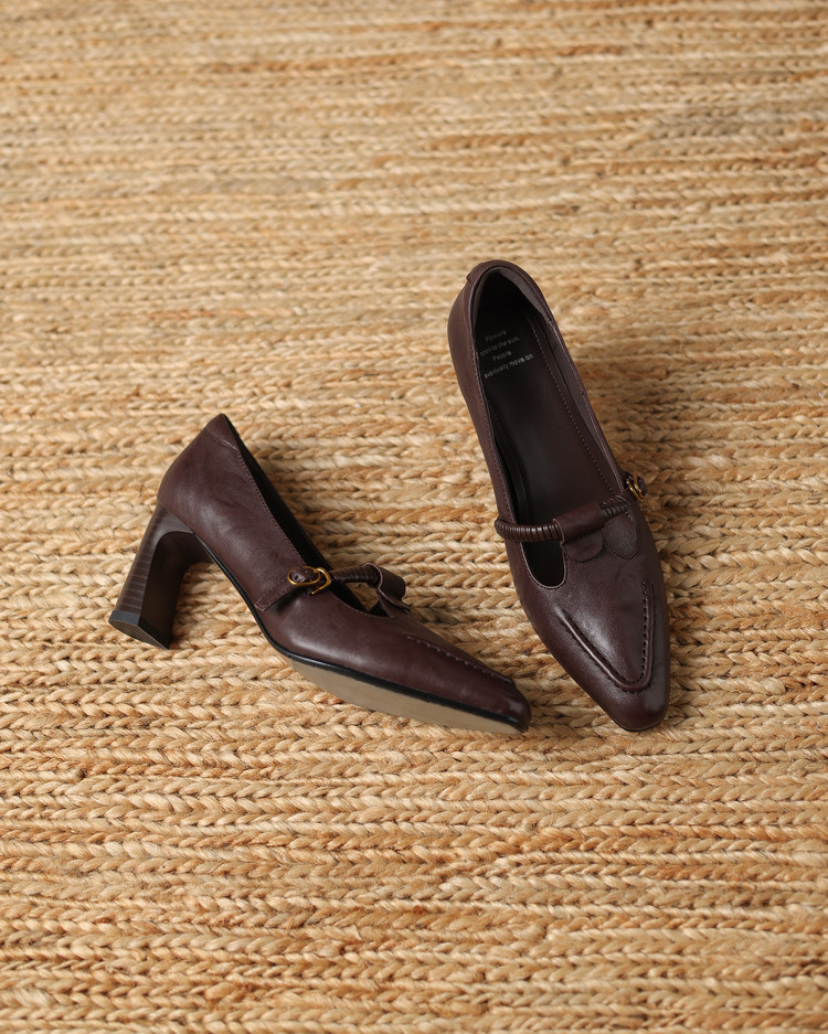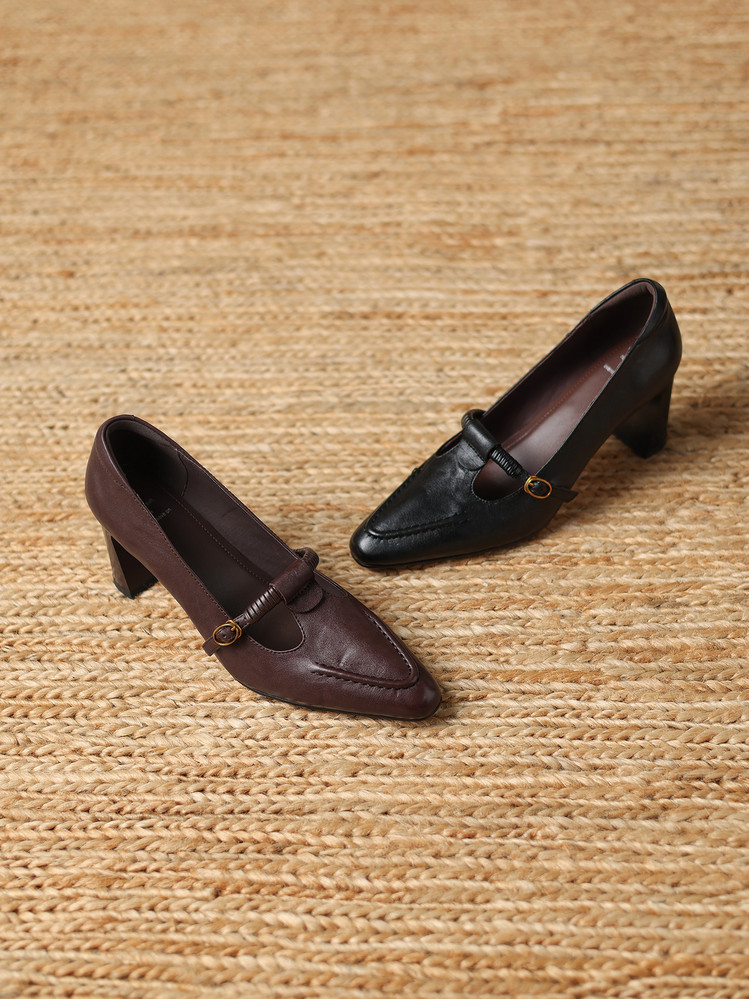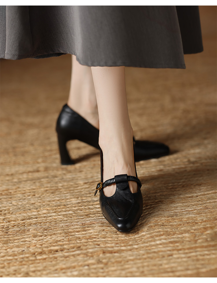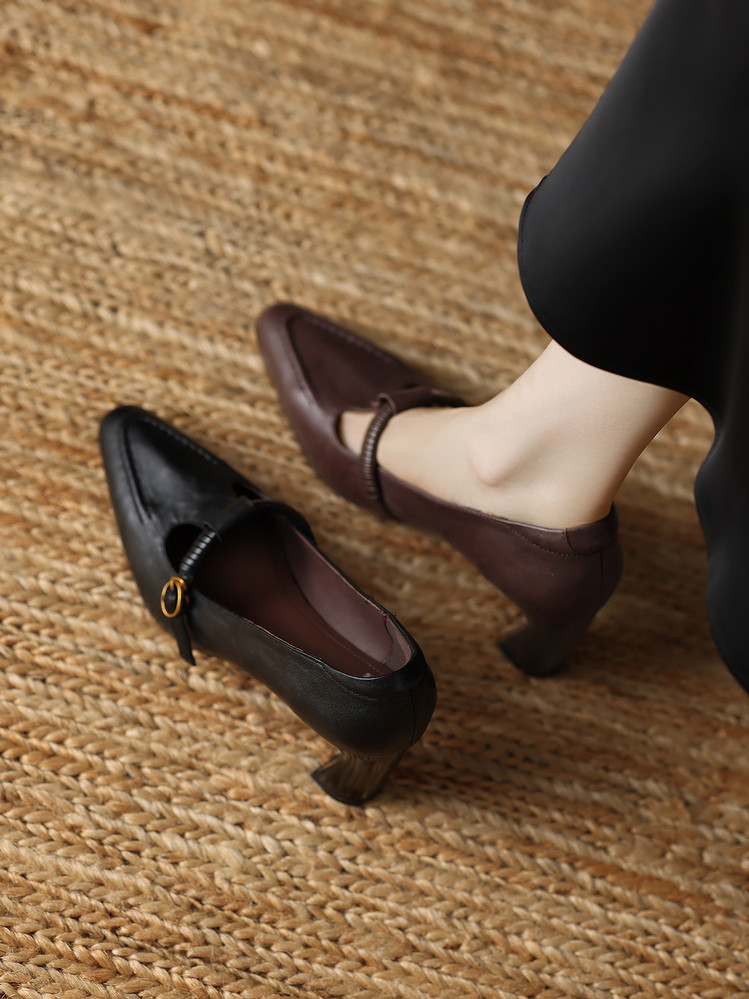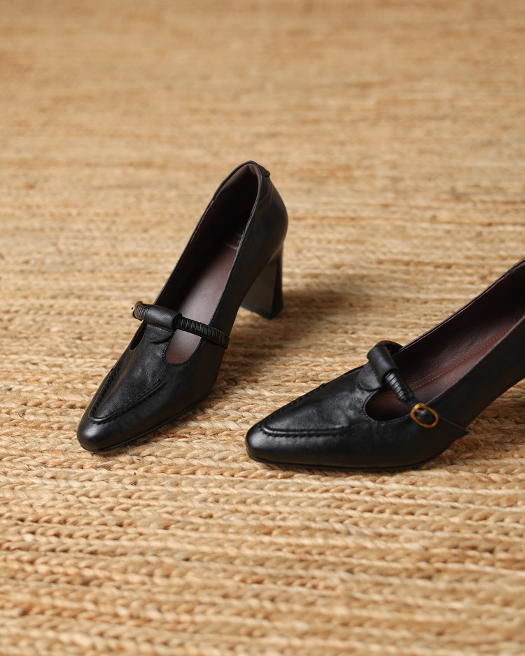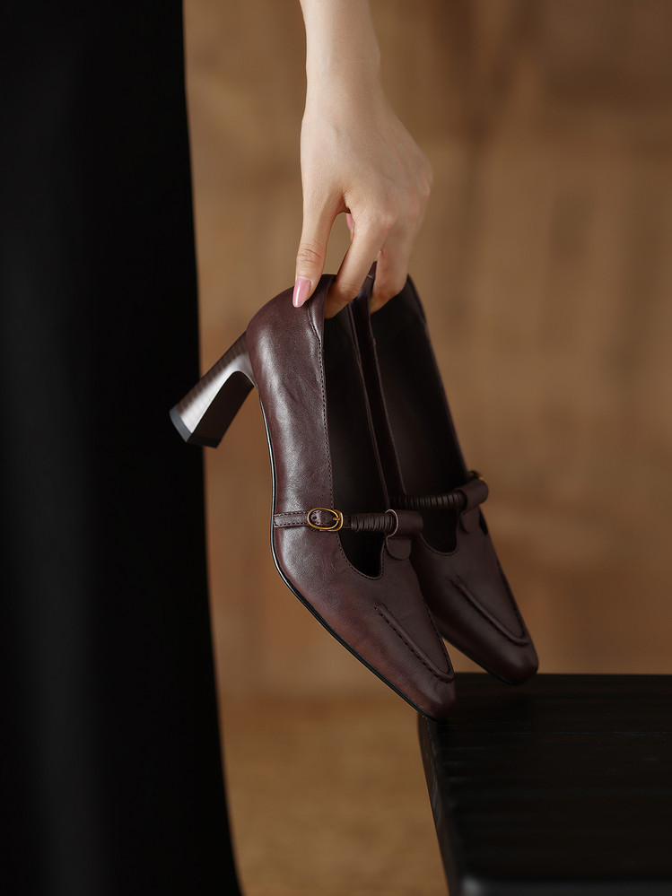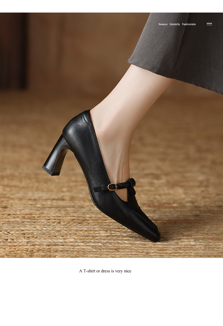【预售5天】时尚百搭圆头丁字带高粗跟浅口单鞋女新款秋季小皮鞋黑棕色QQJFG&JZ-1922F