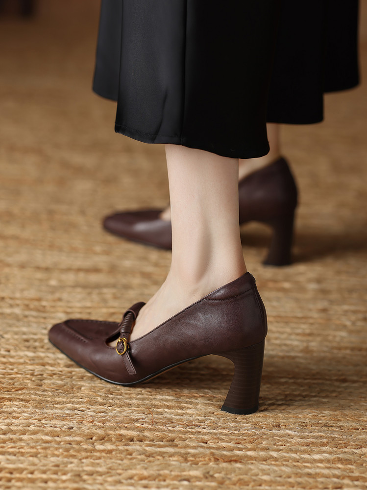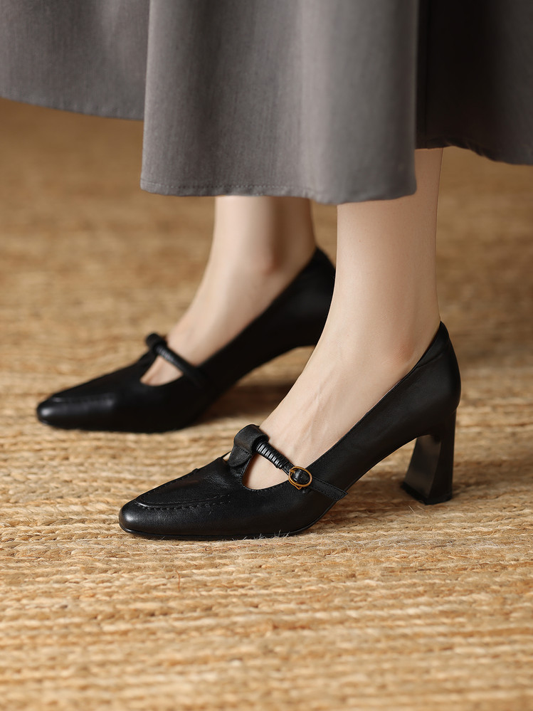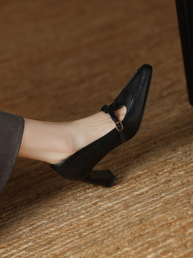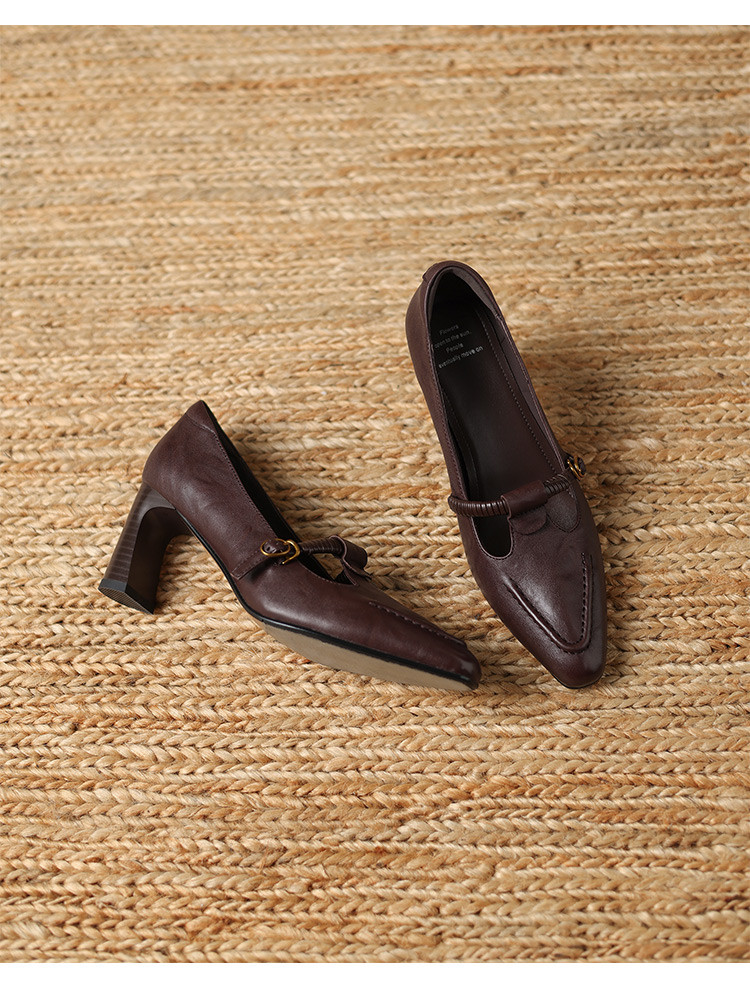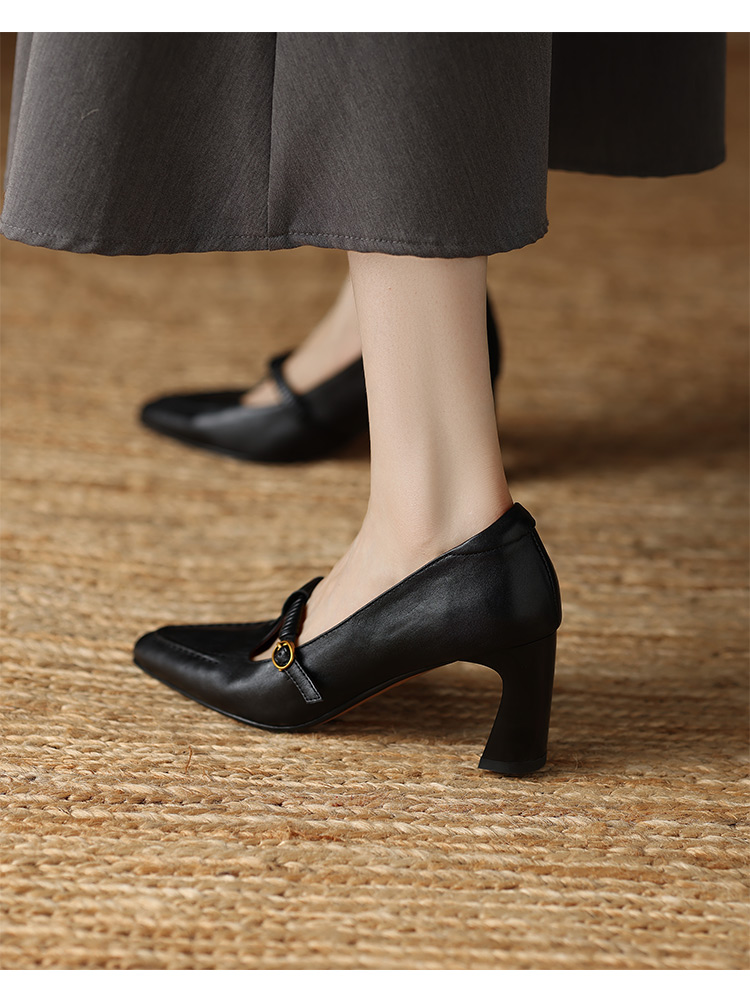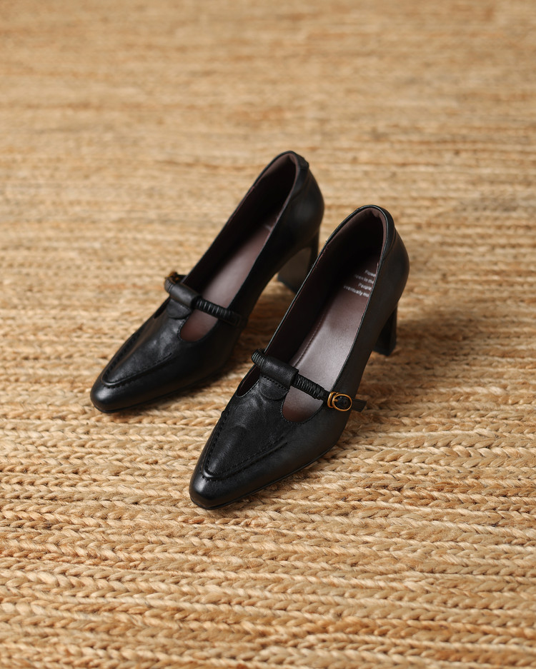【预售5天】时尚百搭圆头丁字带高粗跟浅口单鞋女新款秋季小皮鞋黑棕色QQJFG&JZ-1922F