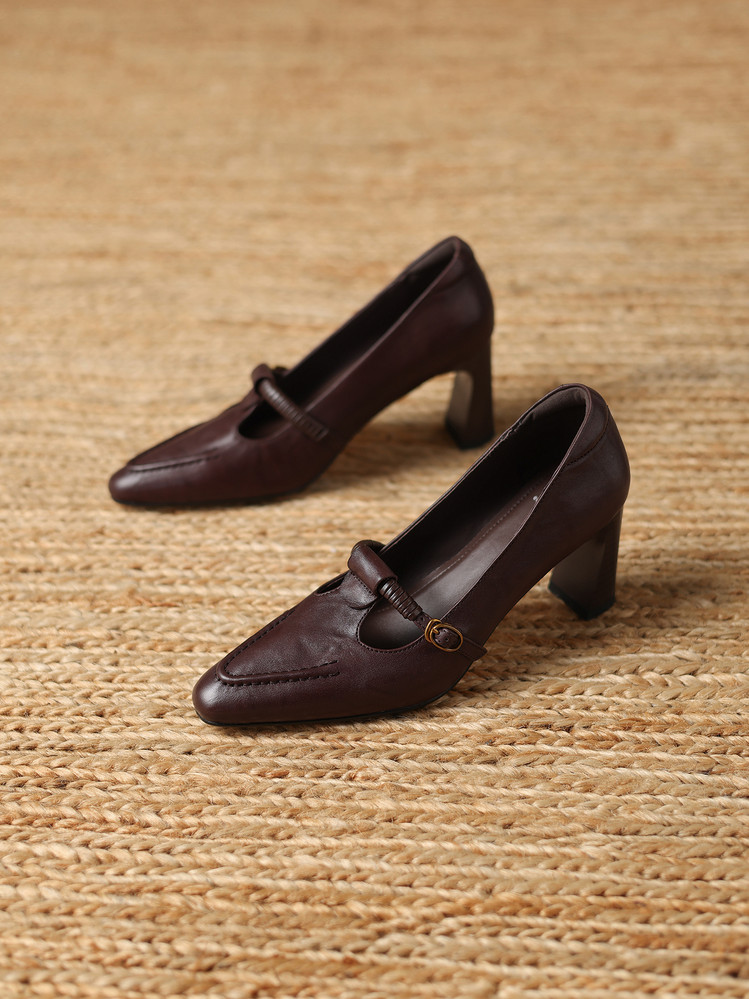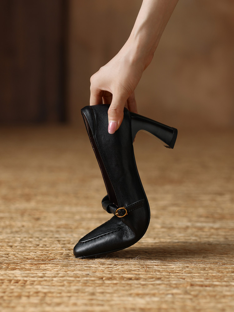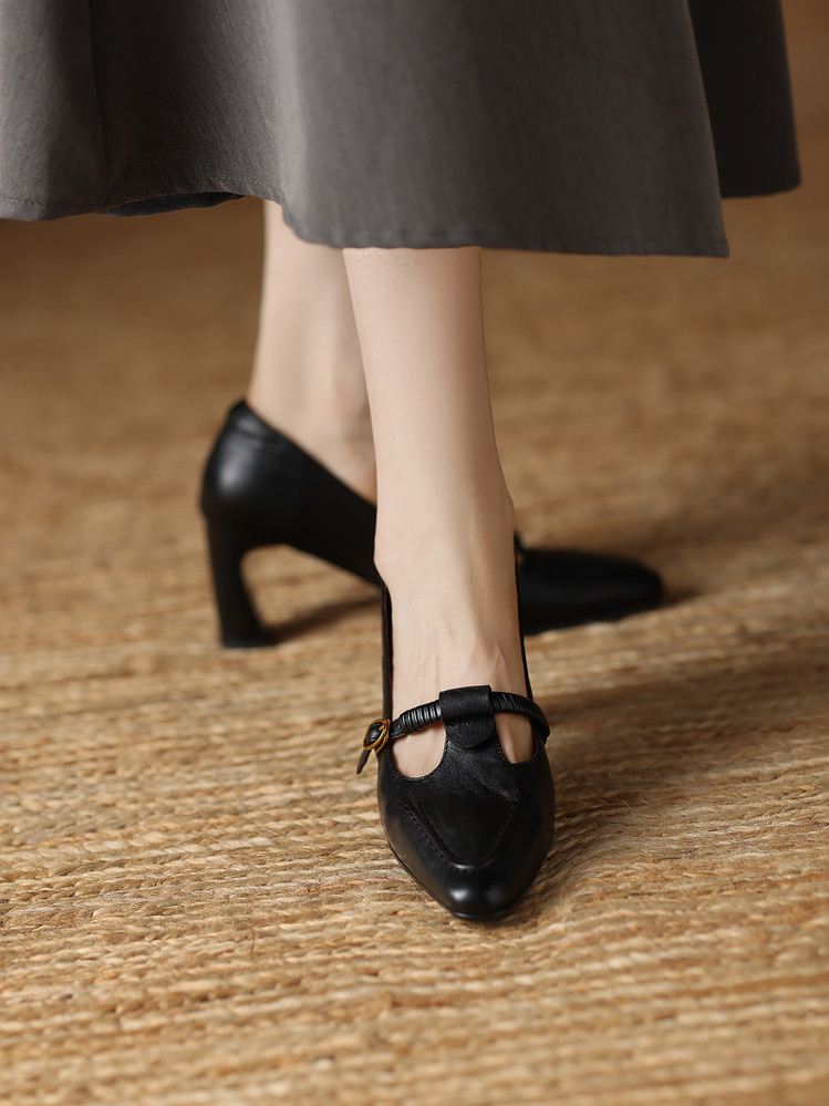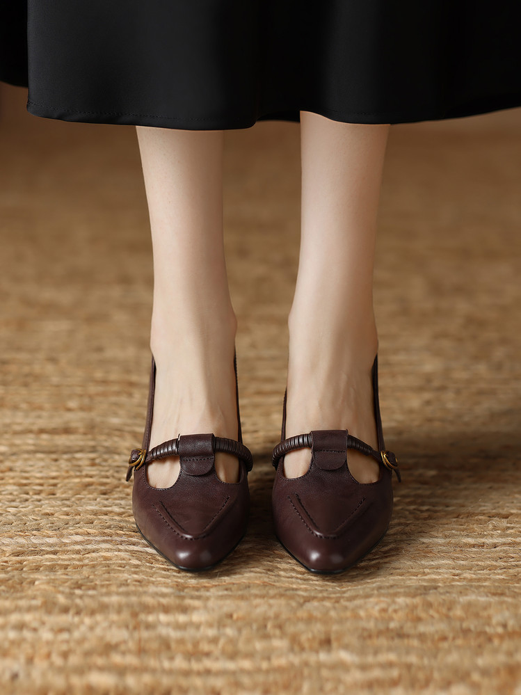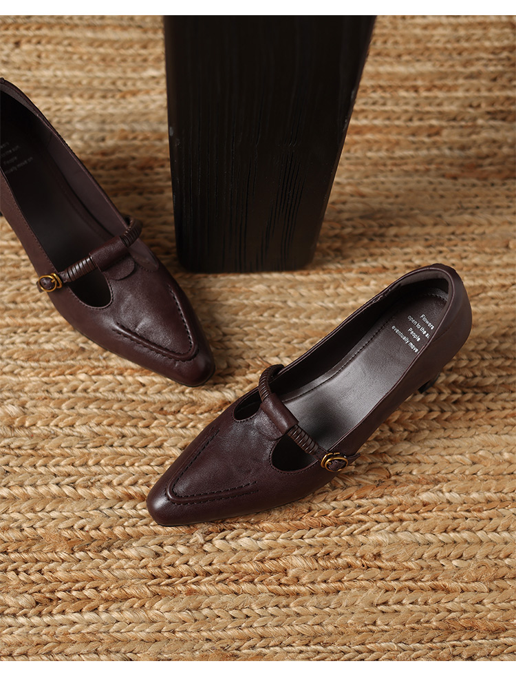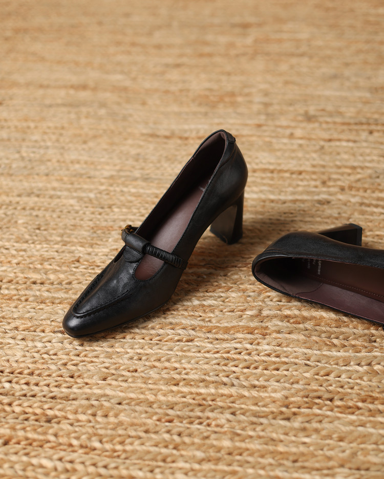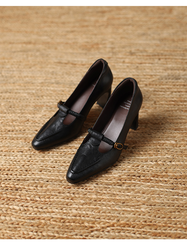 【预售5天】时尚百搭圆头丁字带高粗跟浅口单鞋女新款秋季小皮鞋黑棕色QQJFG&JZ-1922F
