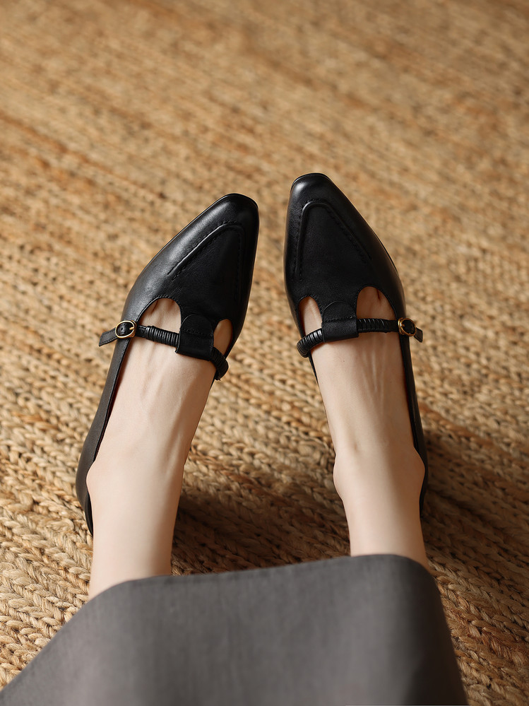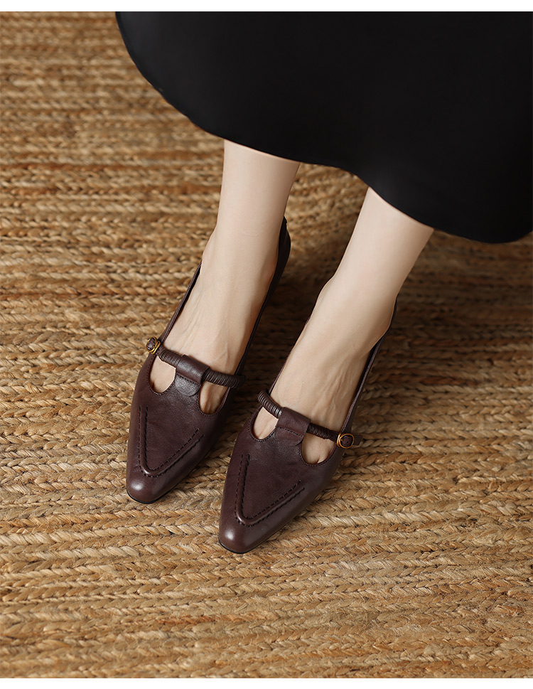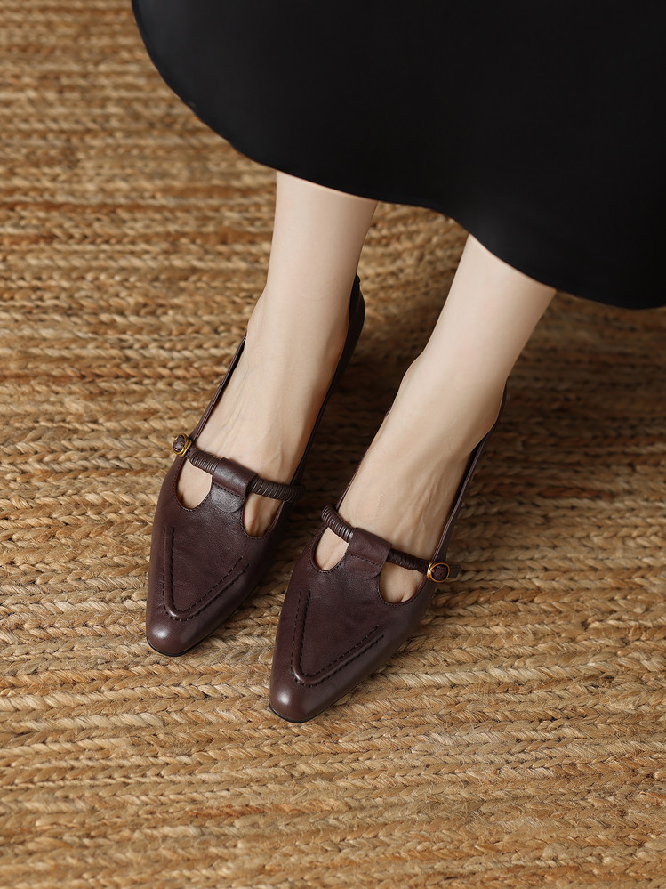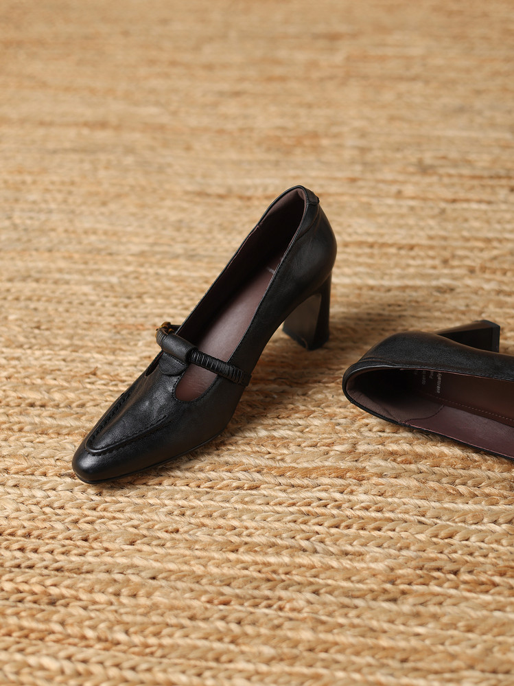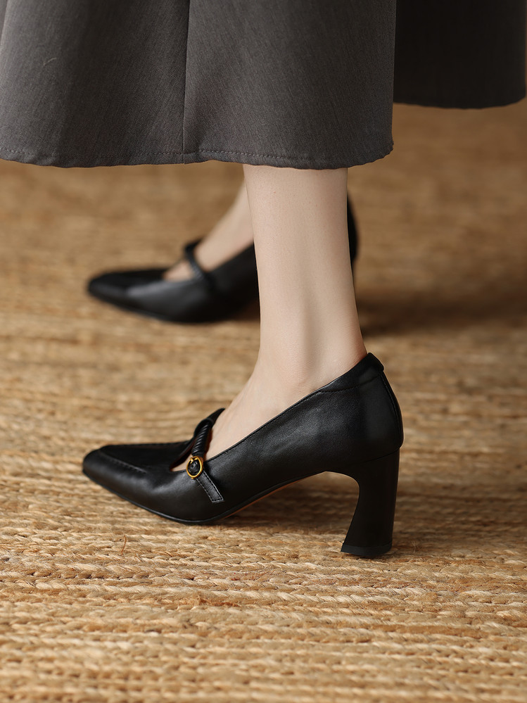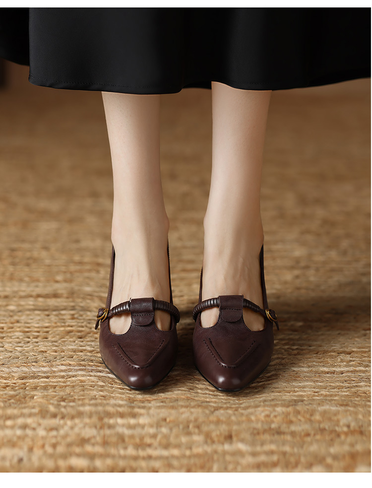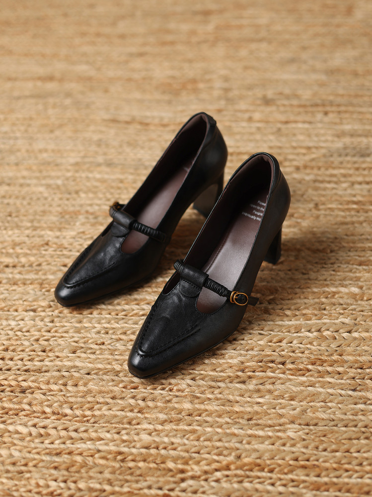 【预售5天】时尚百搭圆头丁字带高粗跟浅口单鞋女新款秋季小皮鞋黑棕色QQJFG&JZ-1922F