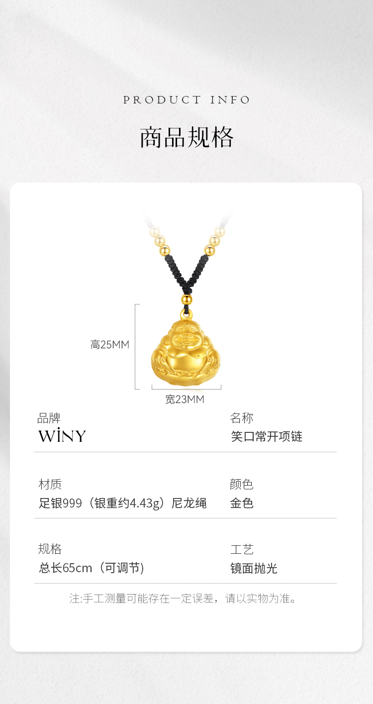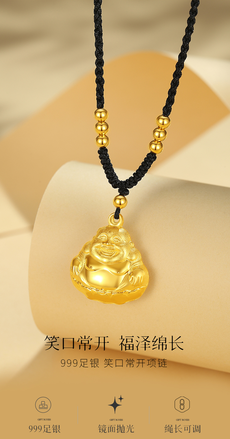 Winy999足银笑口常开项链送女友闺蜜节日生日礼物